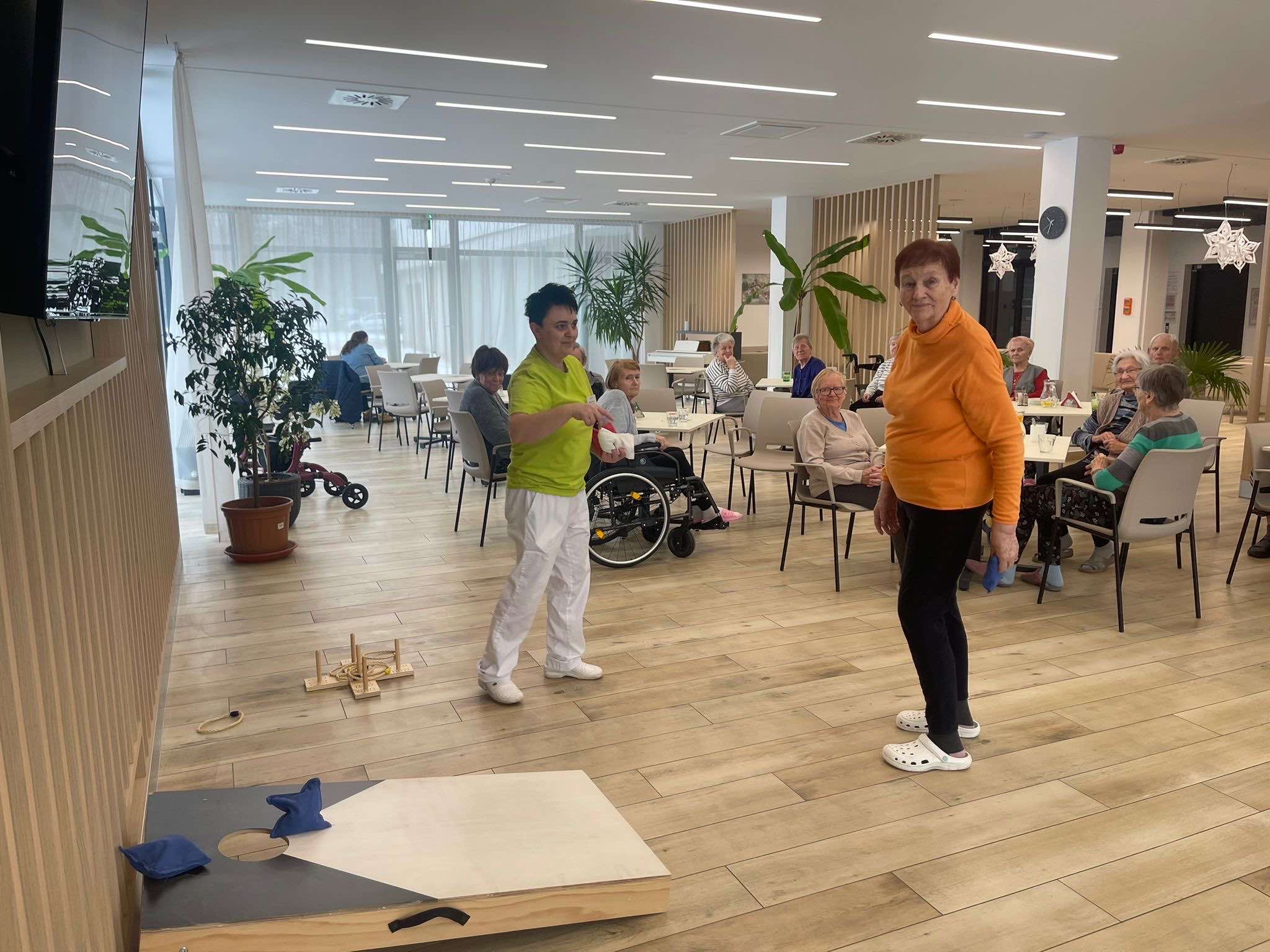 V Senevida Ostrava - Poruba jsme si užili parádní sportovní dopoledne, které bylo plné pohybu, zábavy a dobré nálady. Pro klienty bylo připraveno hned několik stanovišť - slalom, cornhole, házení kroužků, lovení míčků z vody a pexeso na procvičení paměti.