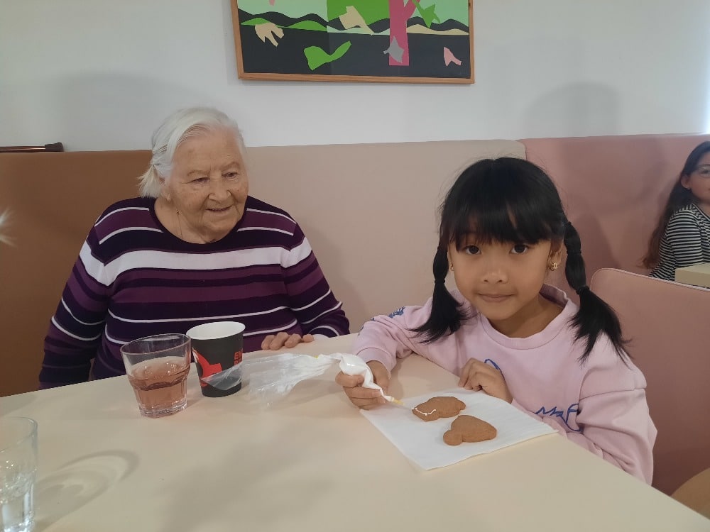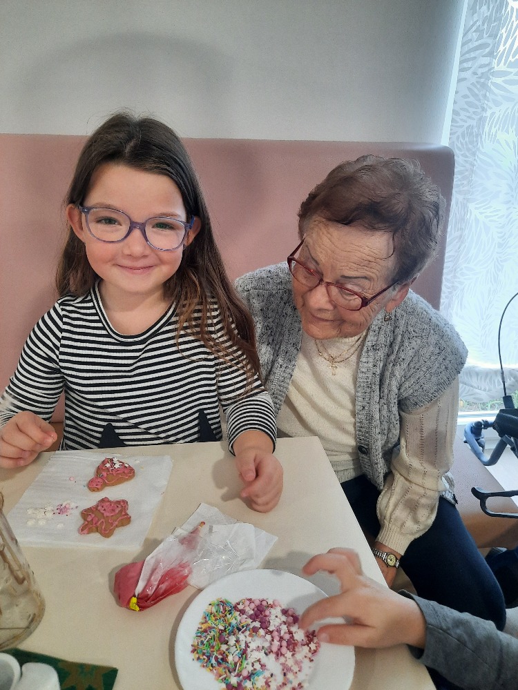 Děti si přinesly vlastní perníčky a společně s klienty je zdobily polevou a sladkými vločkami, kuličkami a barevným pískem.