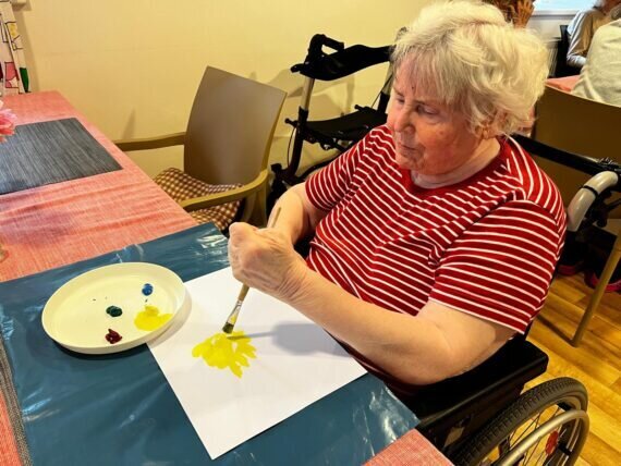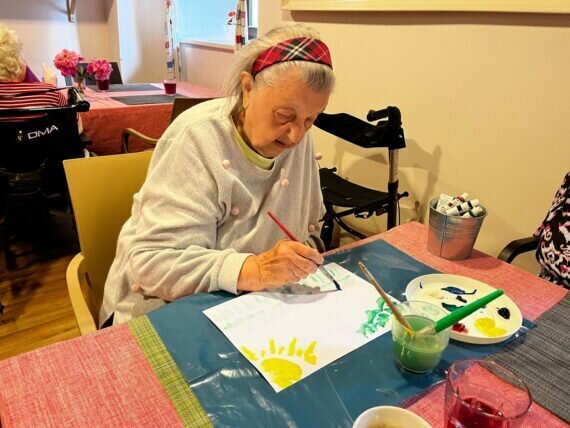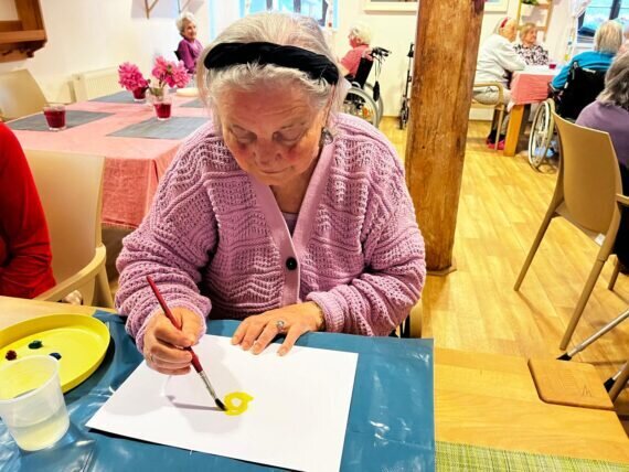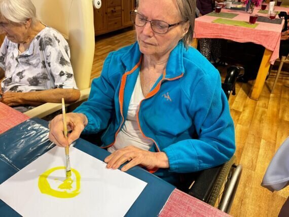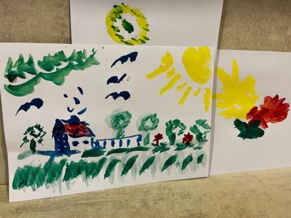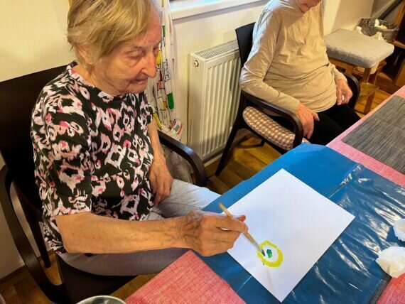 Když v Pyšelech zrovna slunce nesvítí, nevěšíme hlavu a vytvoříme si ho alespoň na papíře. Práce s barvami a štětci klienty v Senevida Pyšely velmi baví.