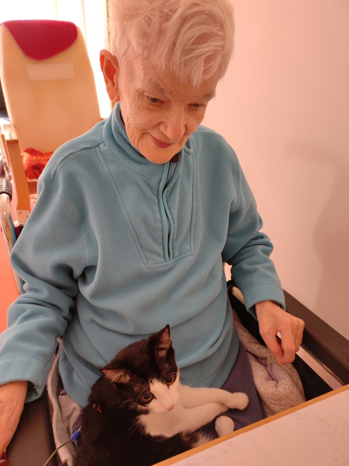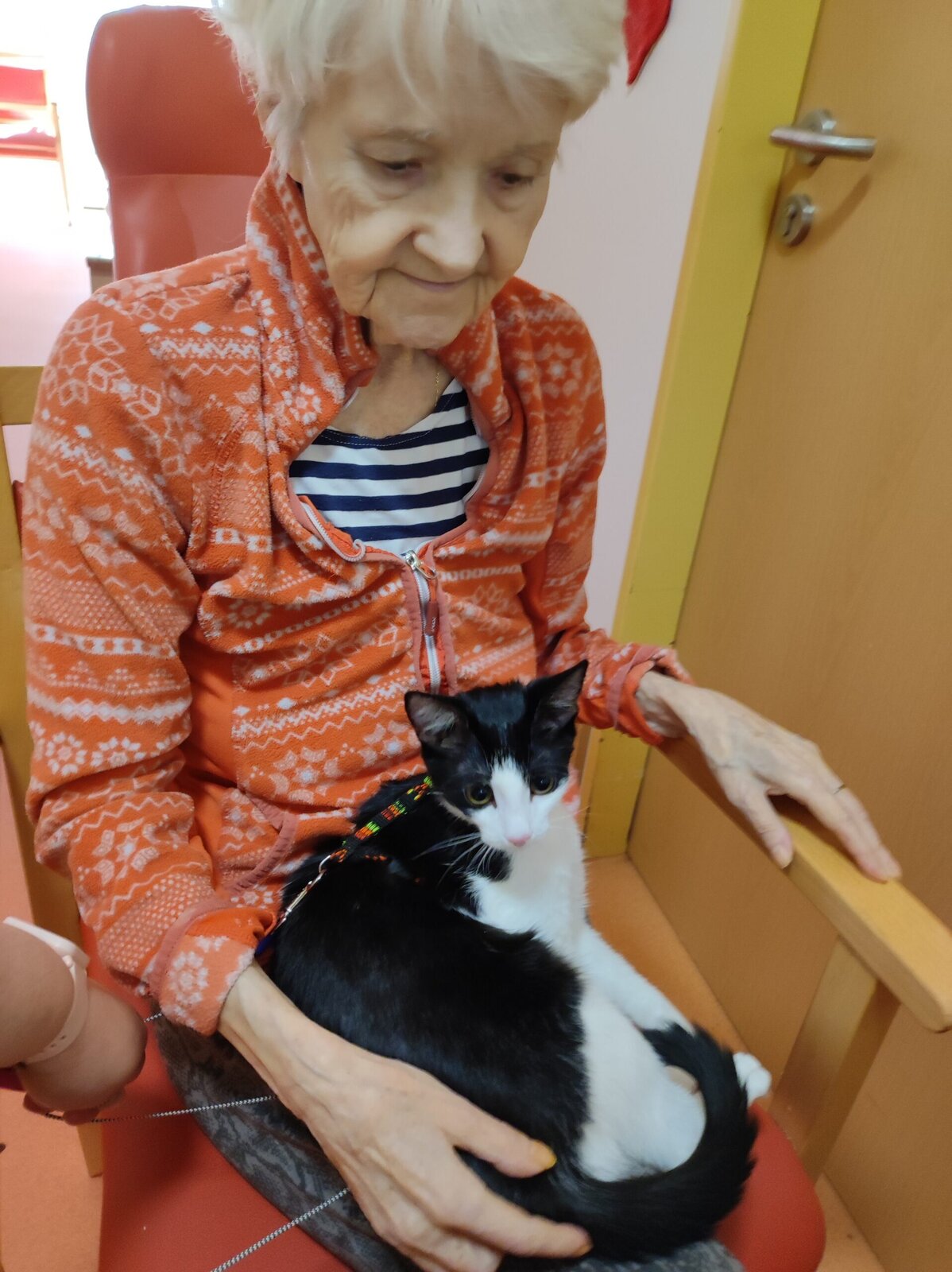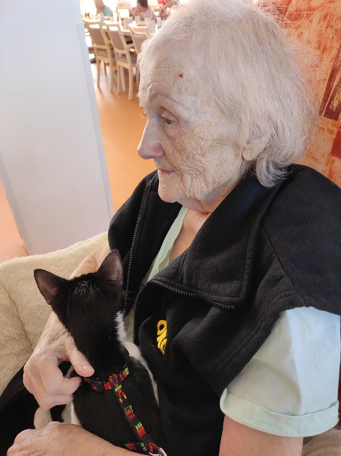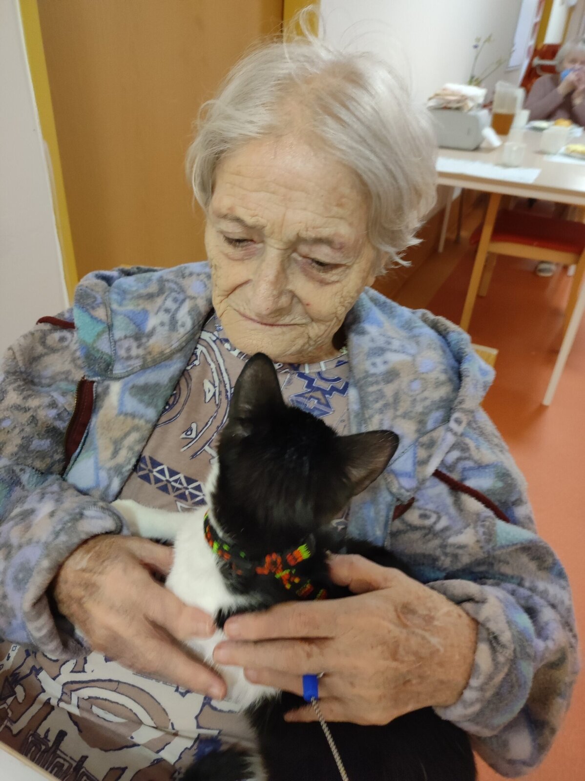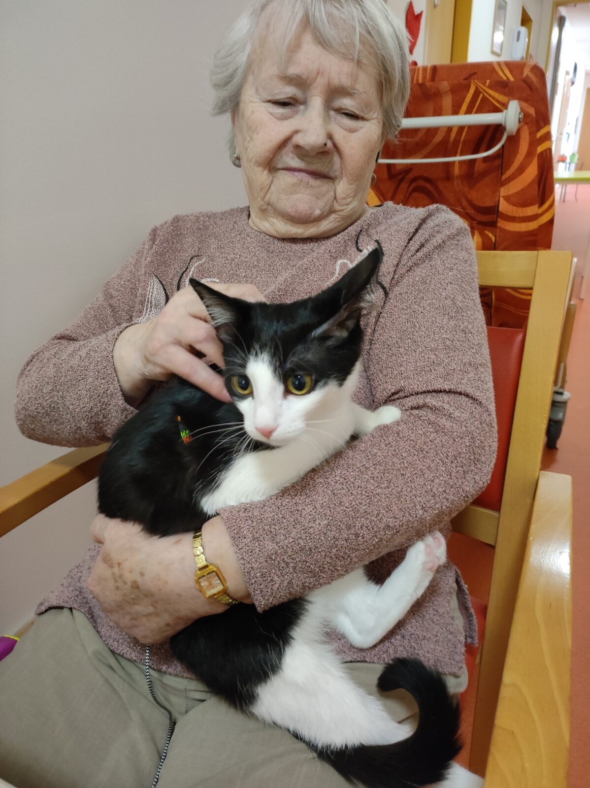 Do našeho zařízení Senevida Zlín přišlo klienty pozdravit malé, roztomilé koťátko. Sotva se černobílé klubíčko vykouklo z přenosky a začalo se protahovat, vzbudilo pozornost. Jeho přítomností i vrněním vykouzlilo úsměvy na tvářích. Často se klienti doptávali, jak se kočička jmenuje. Klienti si o jeho návštěvě ještě dlouhou dobu vykládali. Doufáme, že kočičí slečna Margotka nás brzy navštíví.