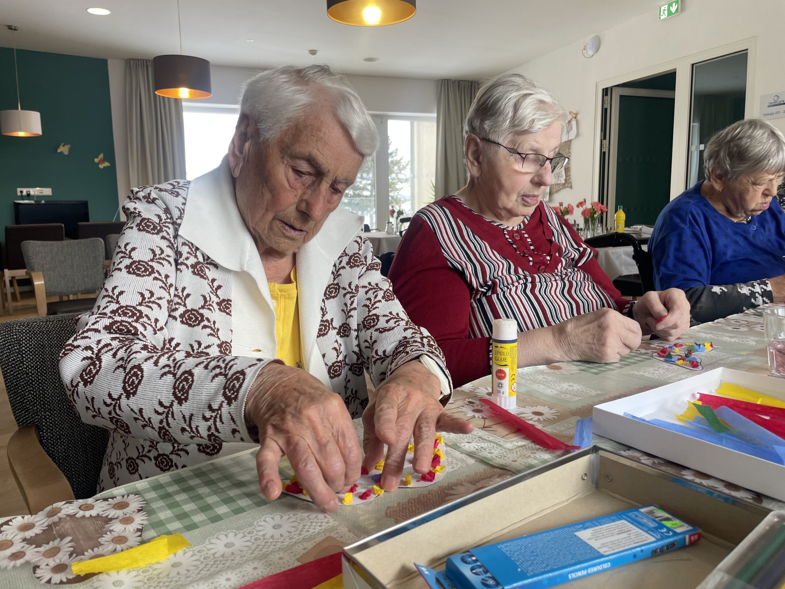 Společně jsme si také vyrobili pestrobarevné škrabošky, při jejichž výrobě se procvičila jemná motorika rukou. Svými výtvory se mohli klienti pochlubit na masopustním klubu.
