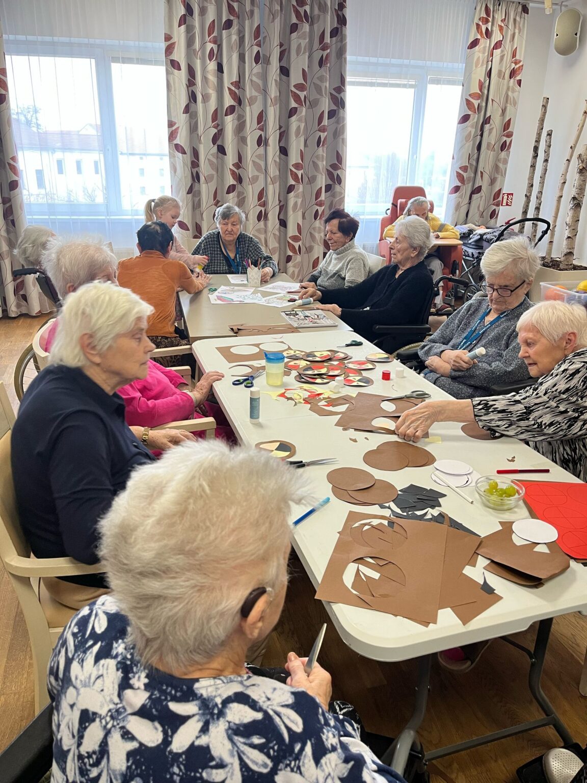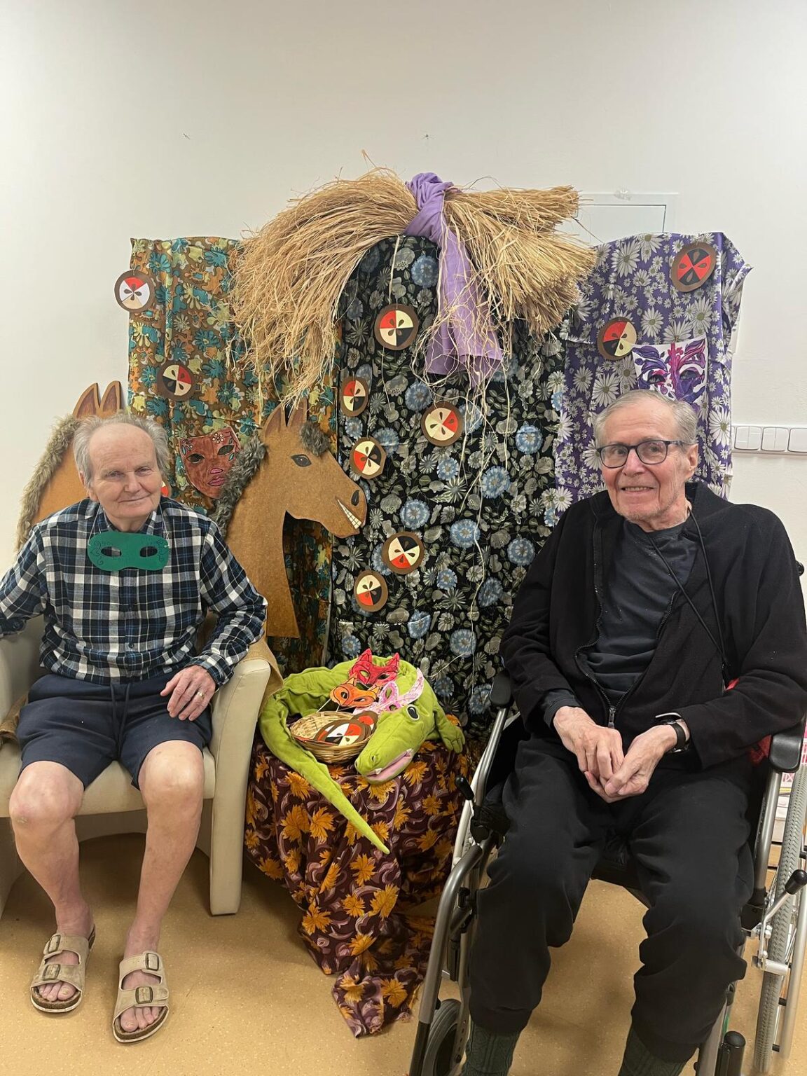 Ve tvořivých aktivitách jsme se pustili do výroby škrabošek a dekorací do fotokoutku, který jsme poté využili při vyvrcholení celého týdne – masopustní narozeninové oslavě. Ta byla opravdu velkolepá! Atmosféru nám zpříjemnil náš oblíbený pan harmonikář, jehož písně vždy rozveselí nejednoho z nás. Nechybělo ani překvapení v podobě masopustního průvodu zaměstnanců, kteří se proměnili v pestré masky a přinesli tak ještě více radosti.