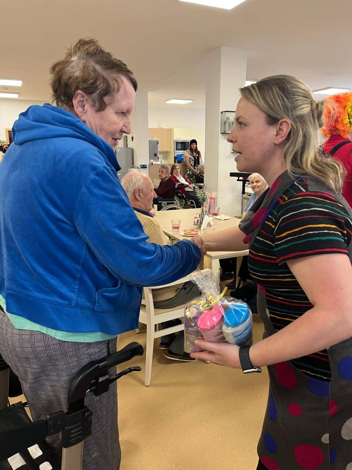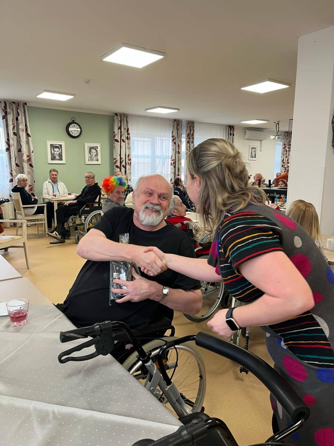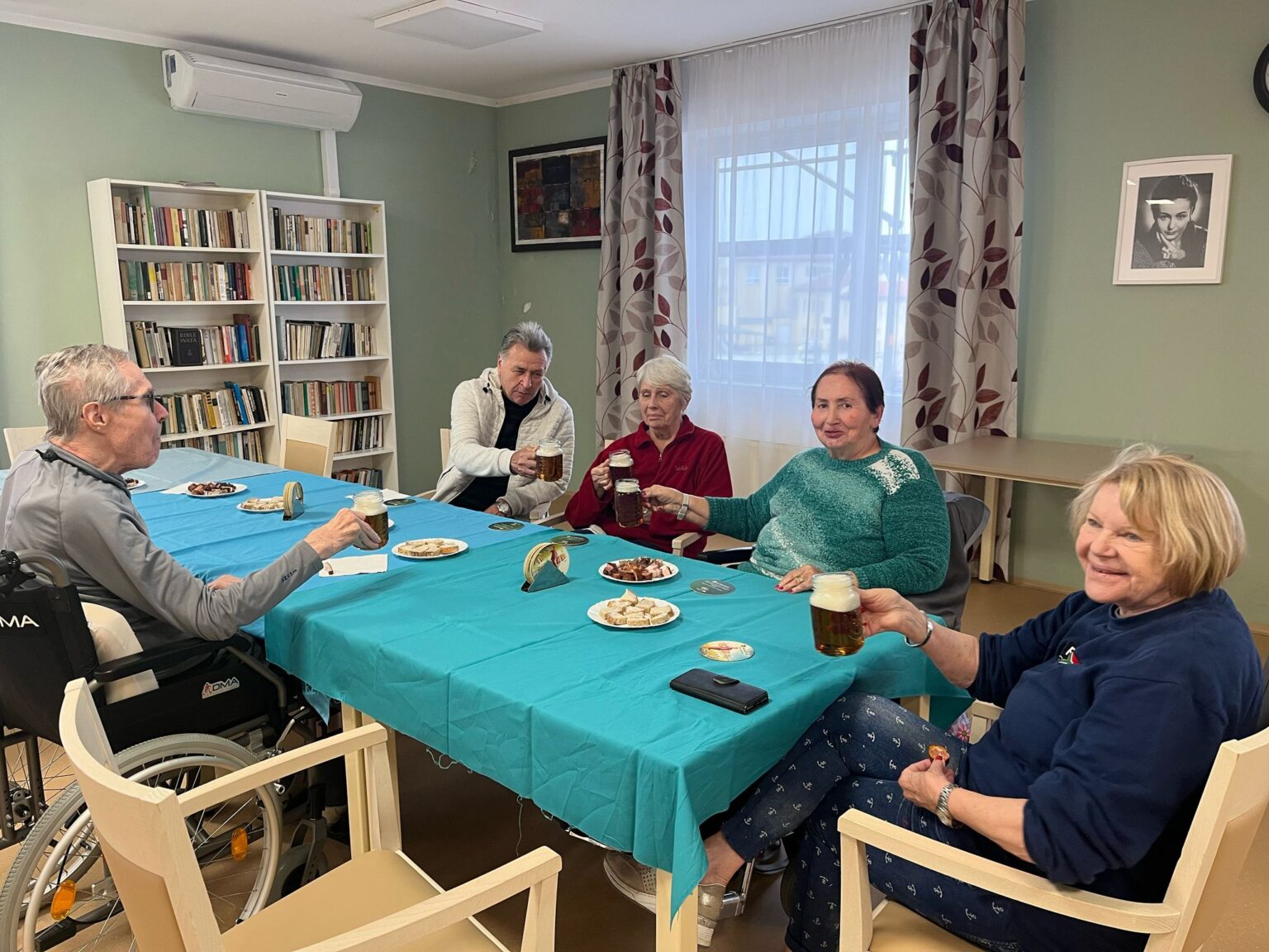 Klienti si mohli pořídit památeční fotografie ve fotokoutku. Narozeninovým oslavencům jsme, jak je u nás zvykem, sborově zazpívali „Živijó, živijó!“, a k tomu všemu samozřejmě patřilo i pohoštění – chlebíčky nebo také narozeninový dort.