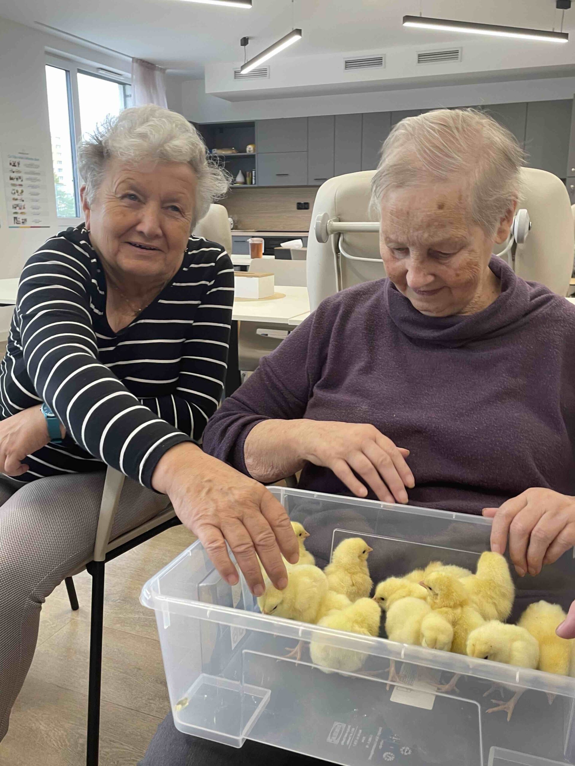 Do našeho domova v Senevida Ostrava - Poruba tentokrát zavítala roztomilá návštěva - malá kuřátka 🐣, která si okamžitě získala srdce všech klientů. Každý si je mohl pohladit, pochovat a užít si ten krásný, hřejivý okamžik. ☀️