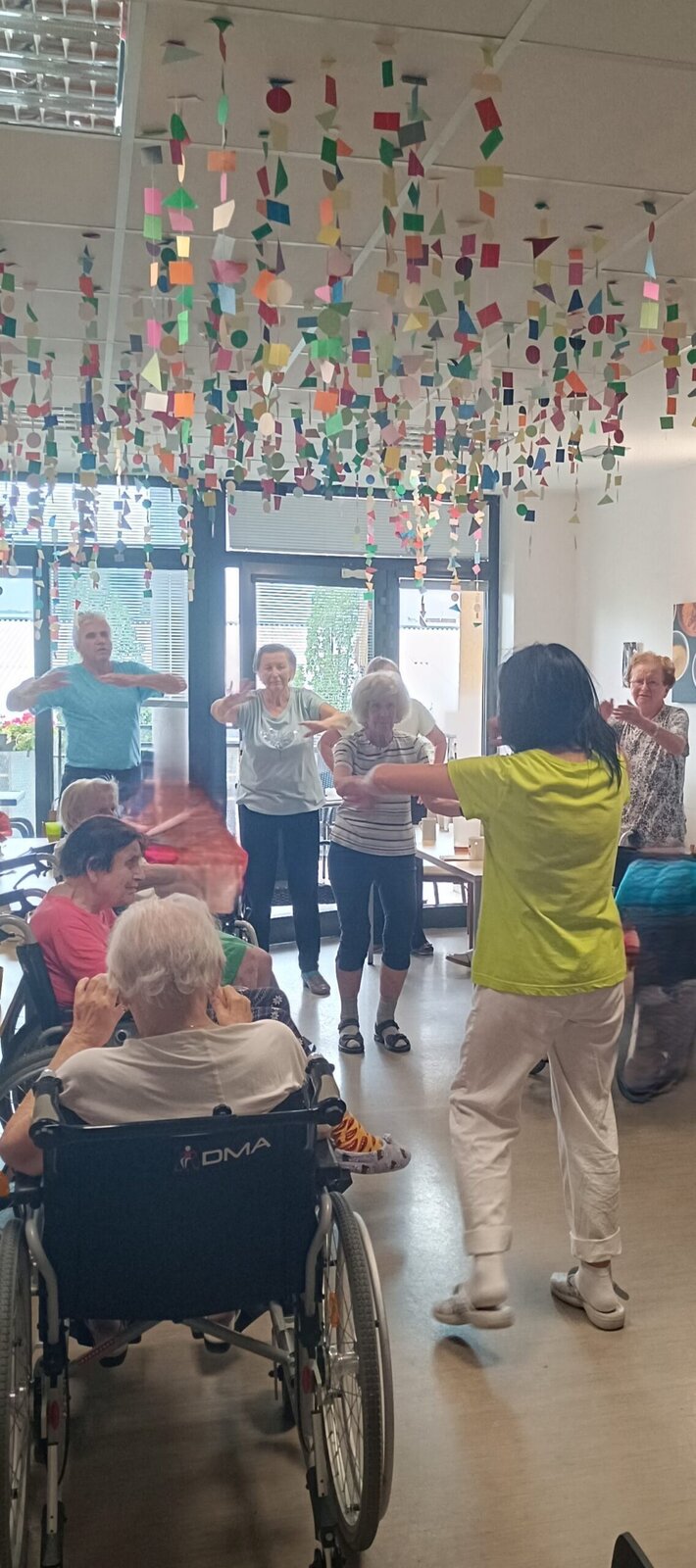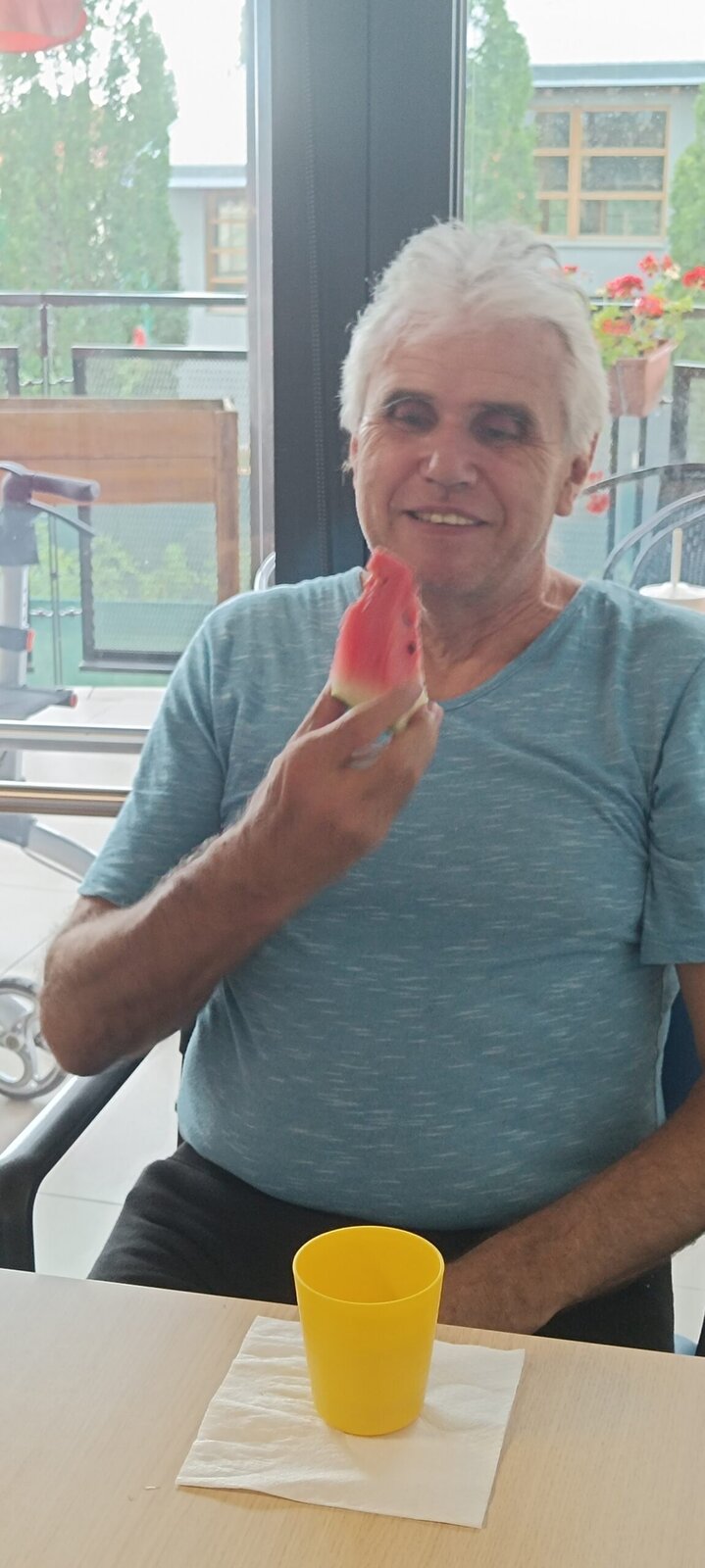Dnešní den byl zamračený a plný deště, a tak jsme u nás v Senevida Modřany strávili uvnitř. Dopoledne jsme věnovali protažení celého těla, za doprovodu rytmické hudby jsme se dali i do tance. Odpoledne jsme si zpříjemnily melounovými hody. Byla to dobrota 😊