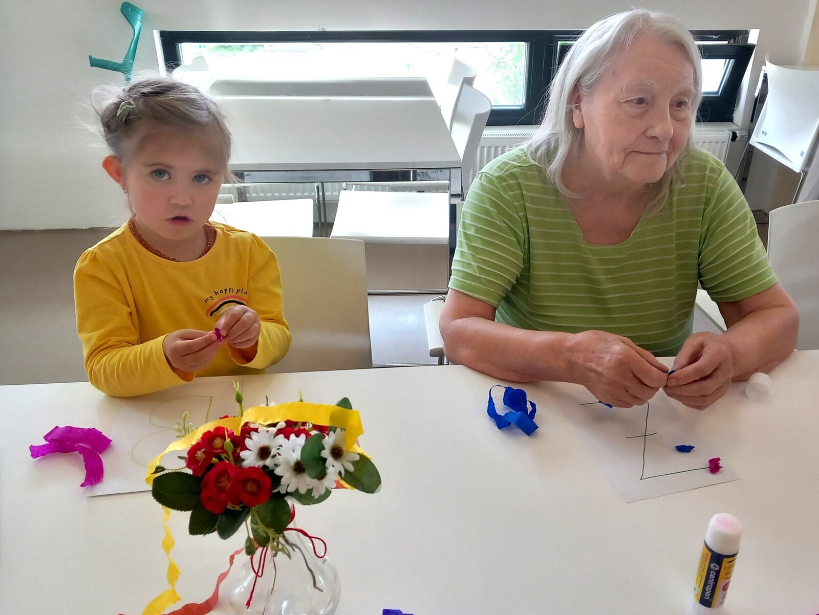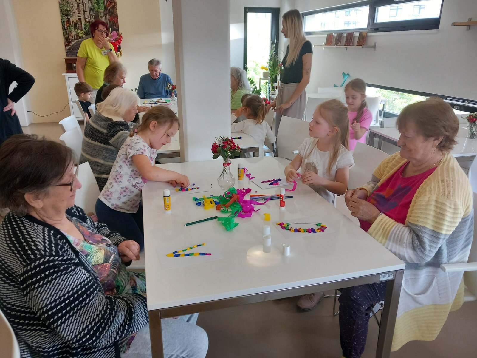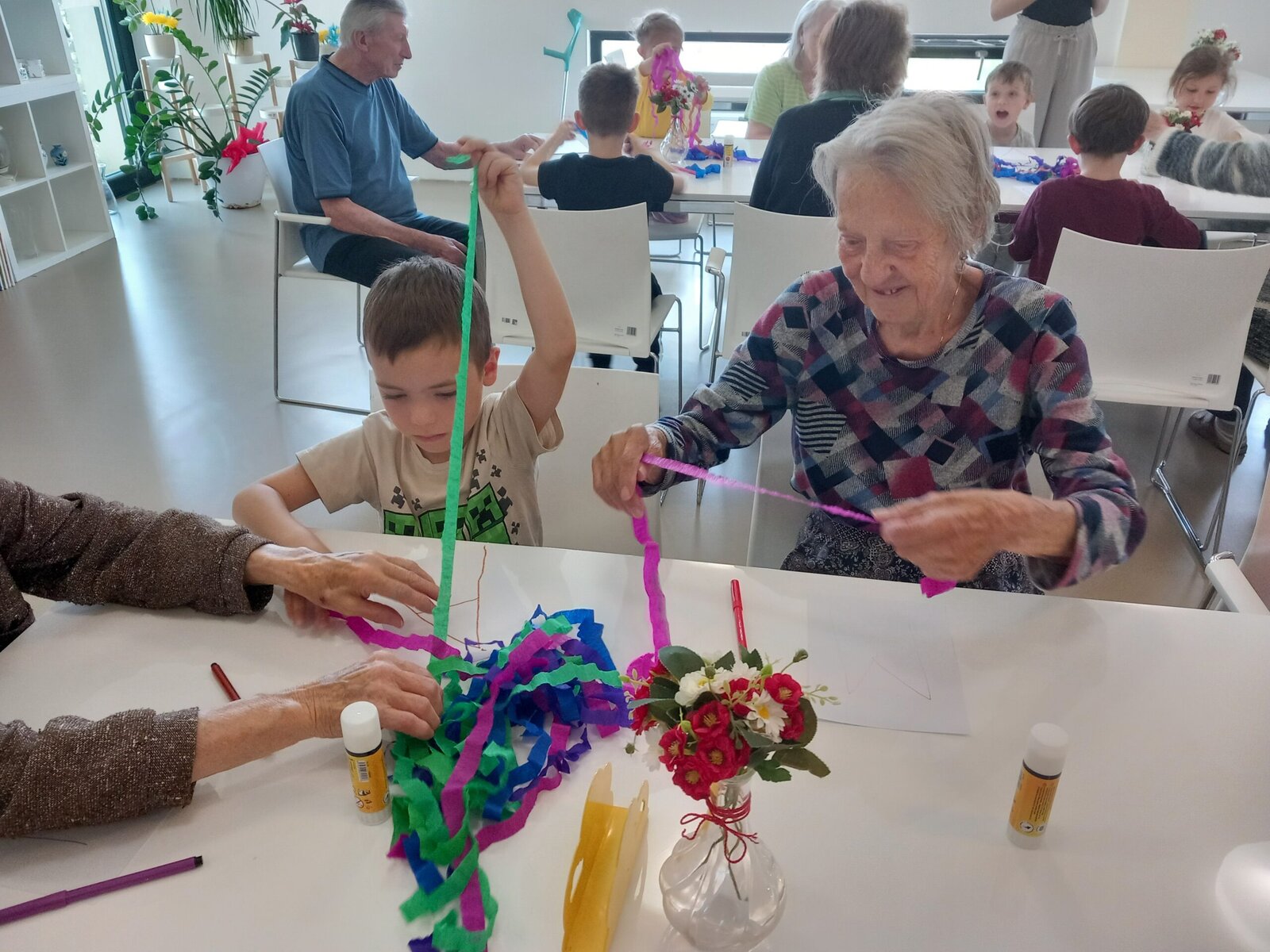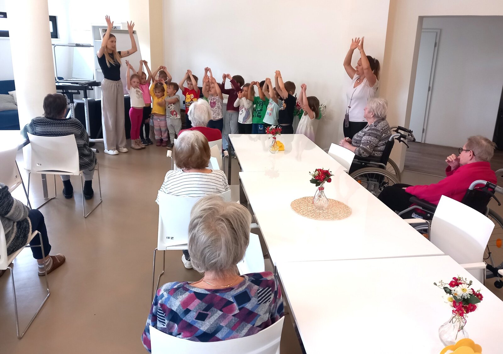 Spolupráce s organizací Mezi námi, o.p.s. je pro naše klienty z Senevida Zátiší vždy příjemným zpestřením. Tentokrát nás navštívily děti z mateřské školy, které si připravily hudební vystoupení plné veselých písniček. Po kulturním programu následovalo kreativní tvoření. Společně jsme vyráběli barevná písmena z krepového papíru, což přineslo radost nejen dětem, ale i klientům. Takové mezigenerační setkání podporuje vzájemné porozumění a propojení dvou světů.