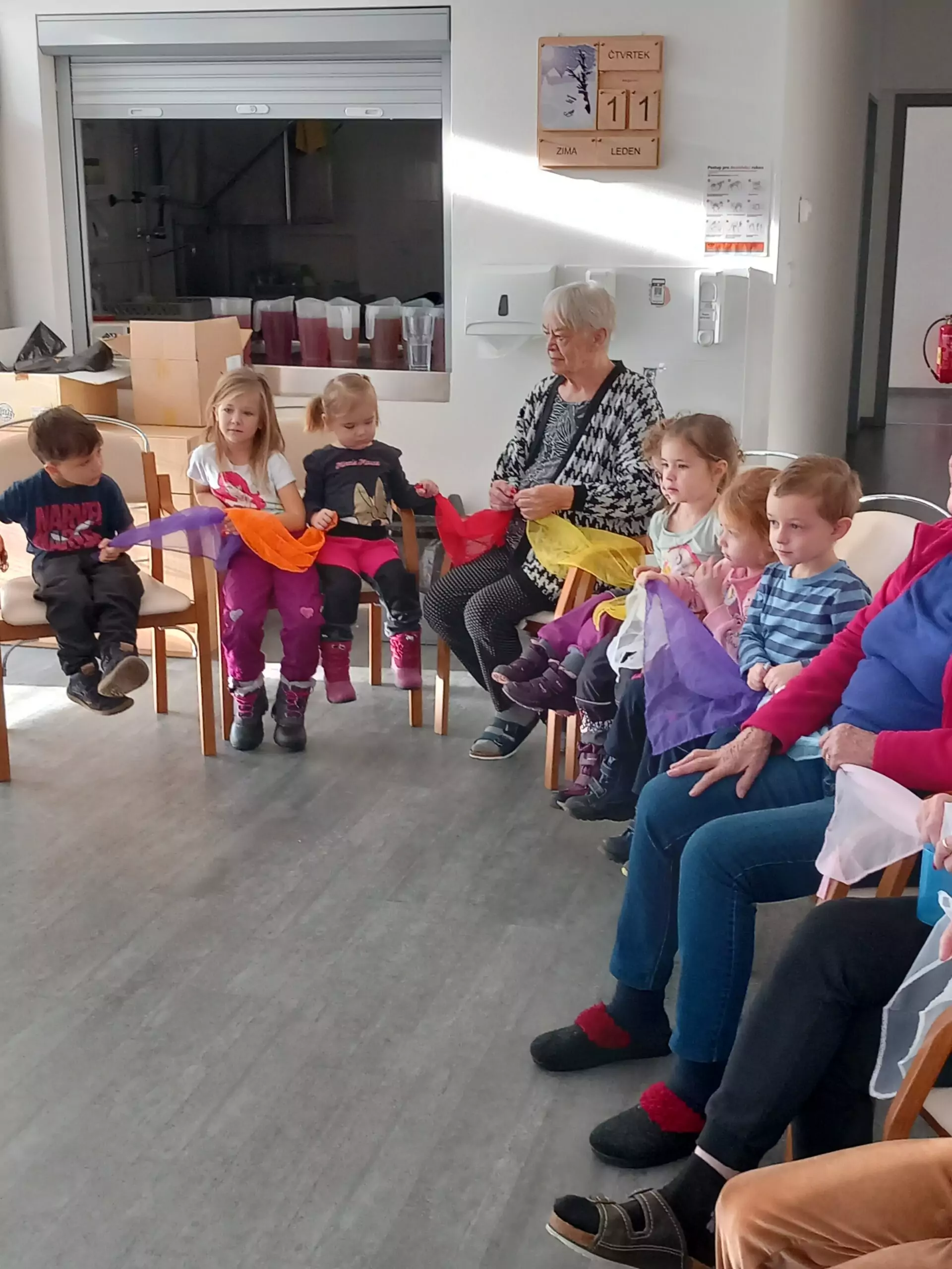 V Alzheimer Home Pitkovice nás přišly navštívit děti z MŠ Křeslice. Naše setkání bylo tentokrát ve znamení pohybu. Děti i klienti se aktivně zapojili do hry s míčem. Cvičilo se i se šátky a jejich spojením do kruhu, jsme vytvořili řetěz přátelství. Paní učitelky si společně s dětmi připravili doprovodné písničky a básničky.