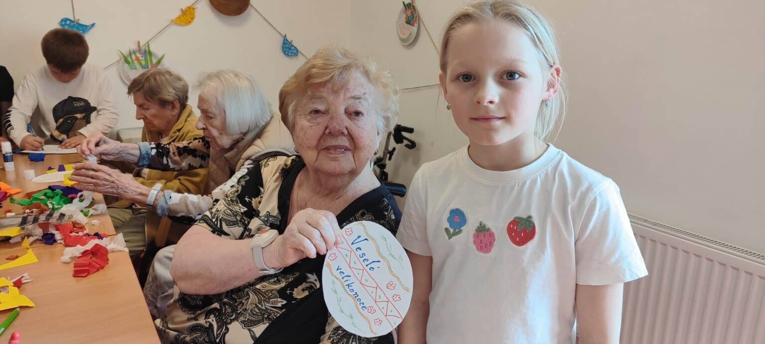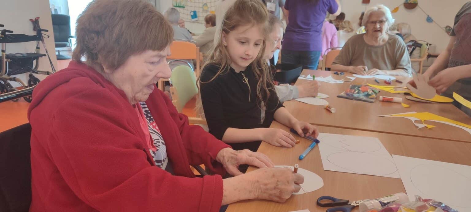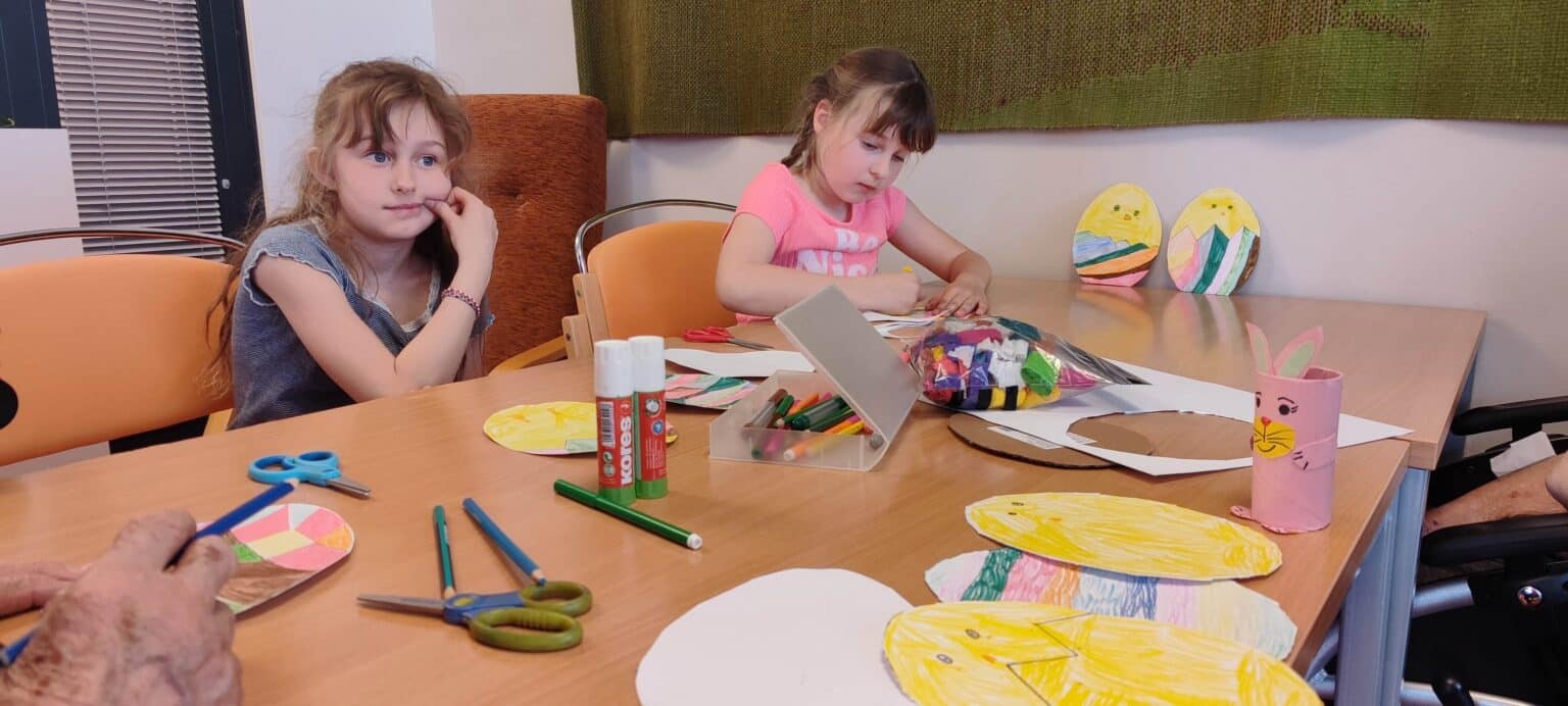 V SeniorCentru Slivenec jsme přivítali žáky ZŠ Slivenec. V kreativní dílně jsme se společně pustili do originální velikonoční výzdoby z krepového papíru a pastelek, která nyní zdobí pokoje našich klientů.