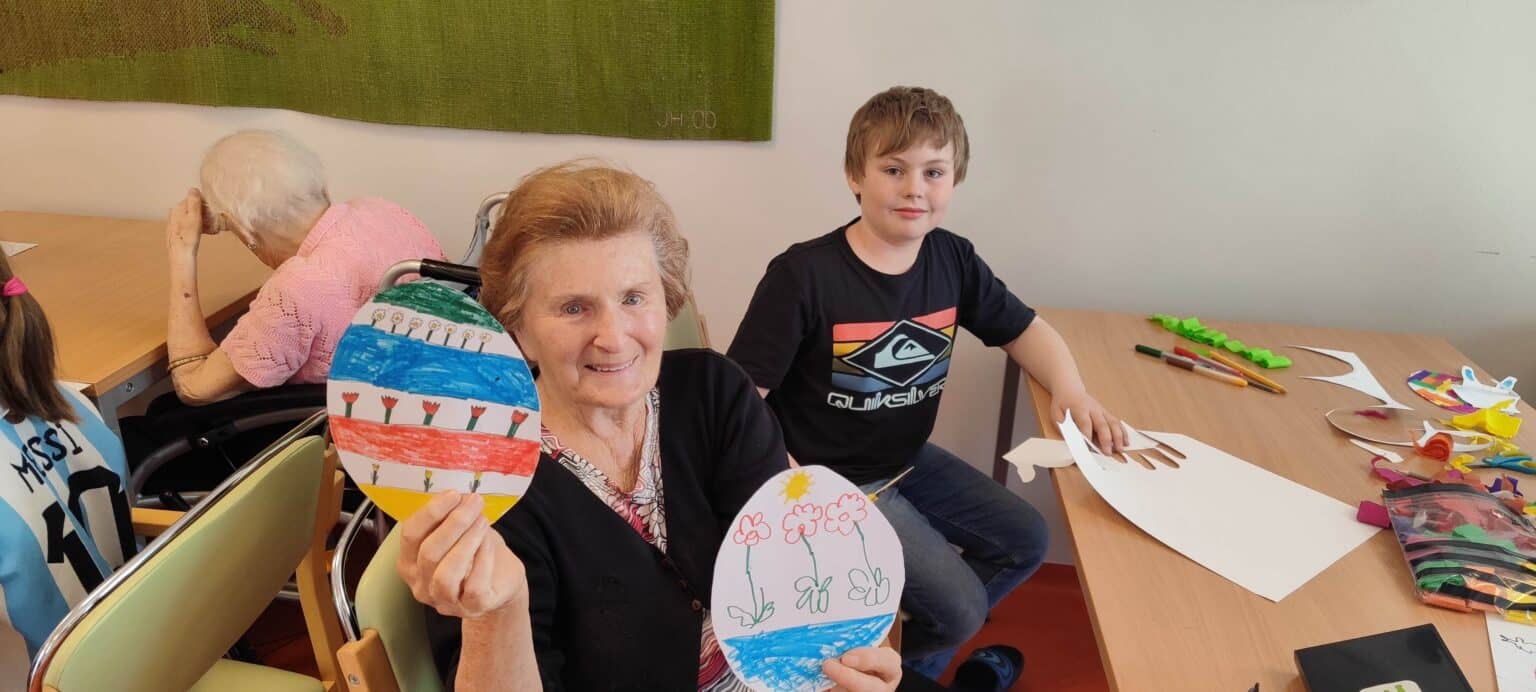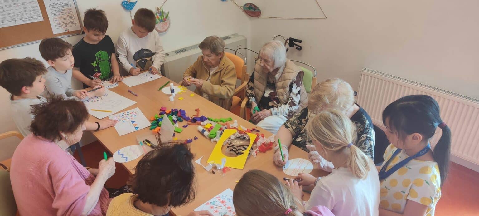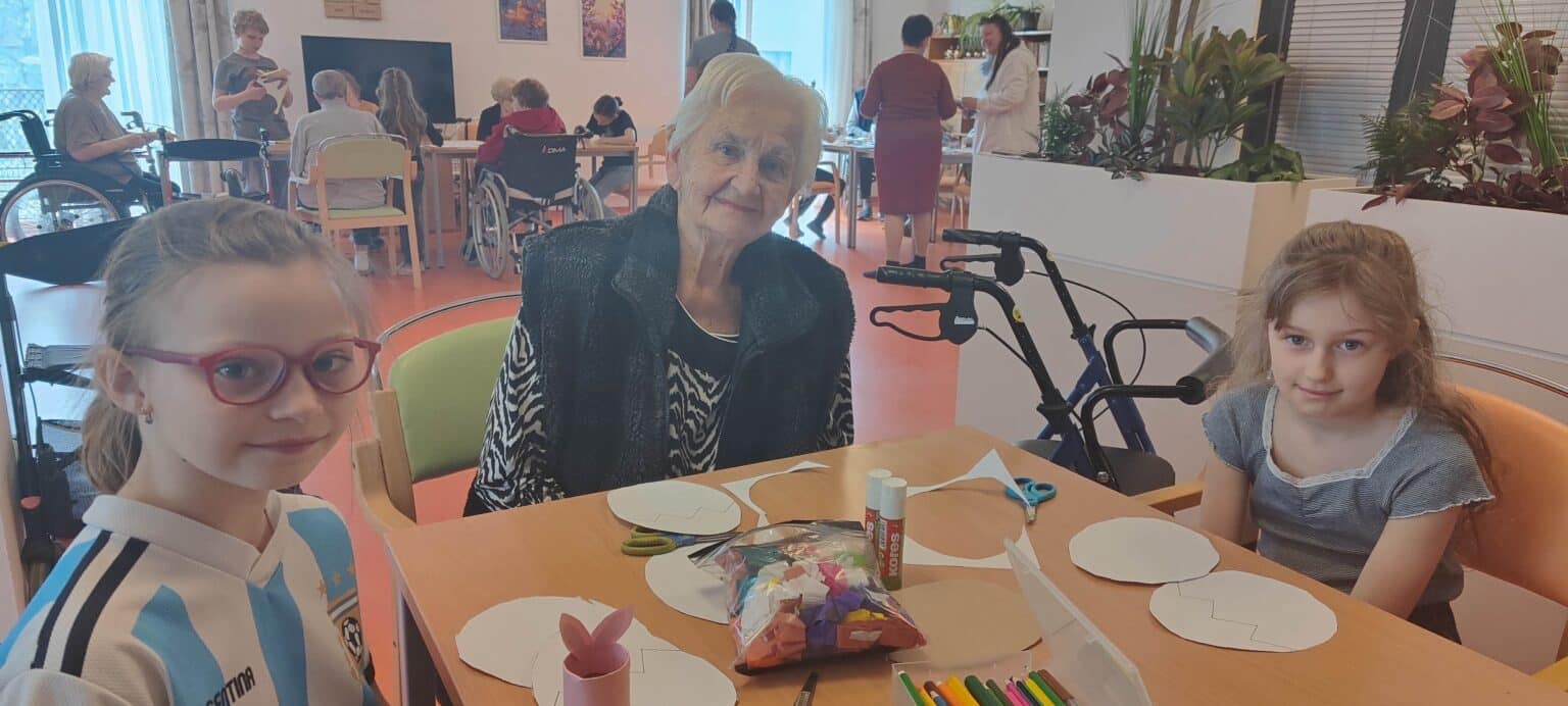 V SeniorCentru Slivenec jsme přivítali žáky ZŠ Slivenec. V kreativní dílně jsme se společně pustili do originální velikonoční výzdoby z krepového papíru a pastelek, která nyní zdobí pokoje našich klientů.