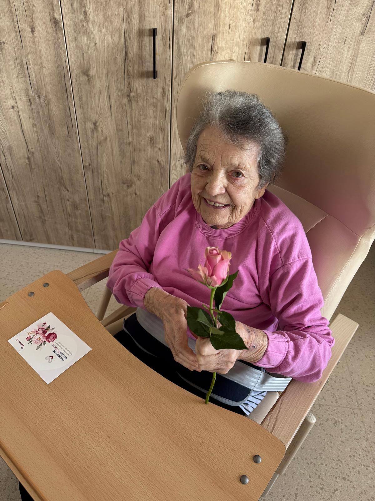 Dne 8. 3. 2026 jsme v našem domově oslavili Mezinárodní den žen. Všechny naše klientky dostaly krásnou růžičku a přání k jejich svátku.🌹