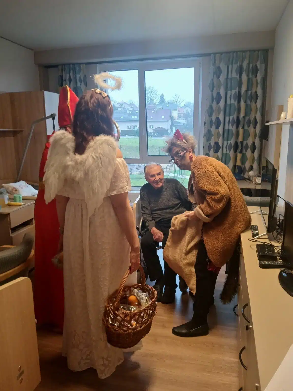 Mikuláš, čert a anděl navštívili v pátek 5. prosince naše klienty přímo v domácnostech. Obdarovali všechny zdravou a sladkou odměnou a navrch vykouzlili všem úsměv na tváři. Někteří klienti návštěvníkům zarecitovali, nebo zazpívali.