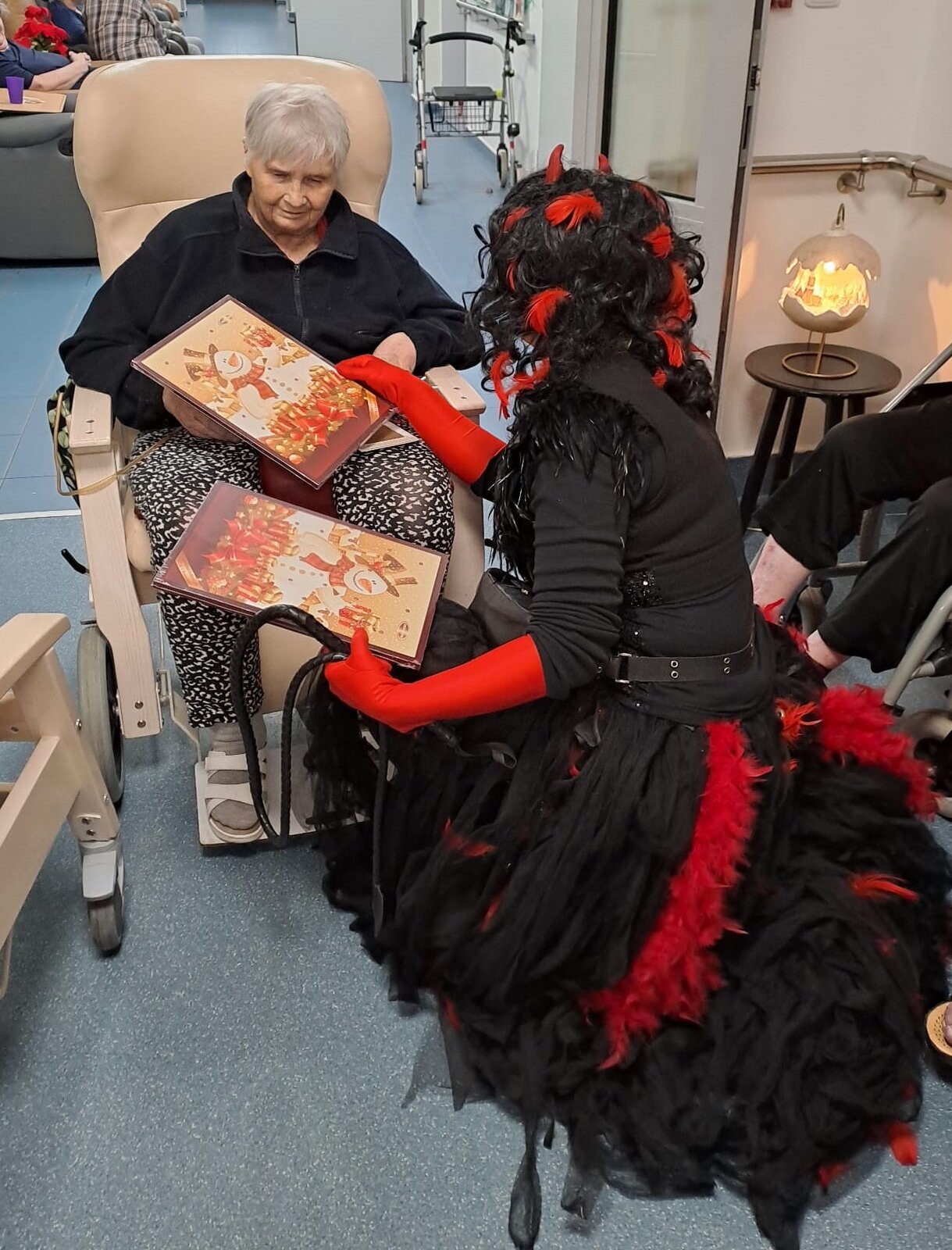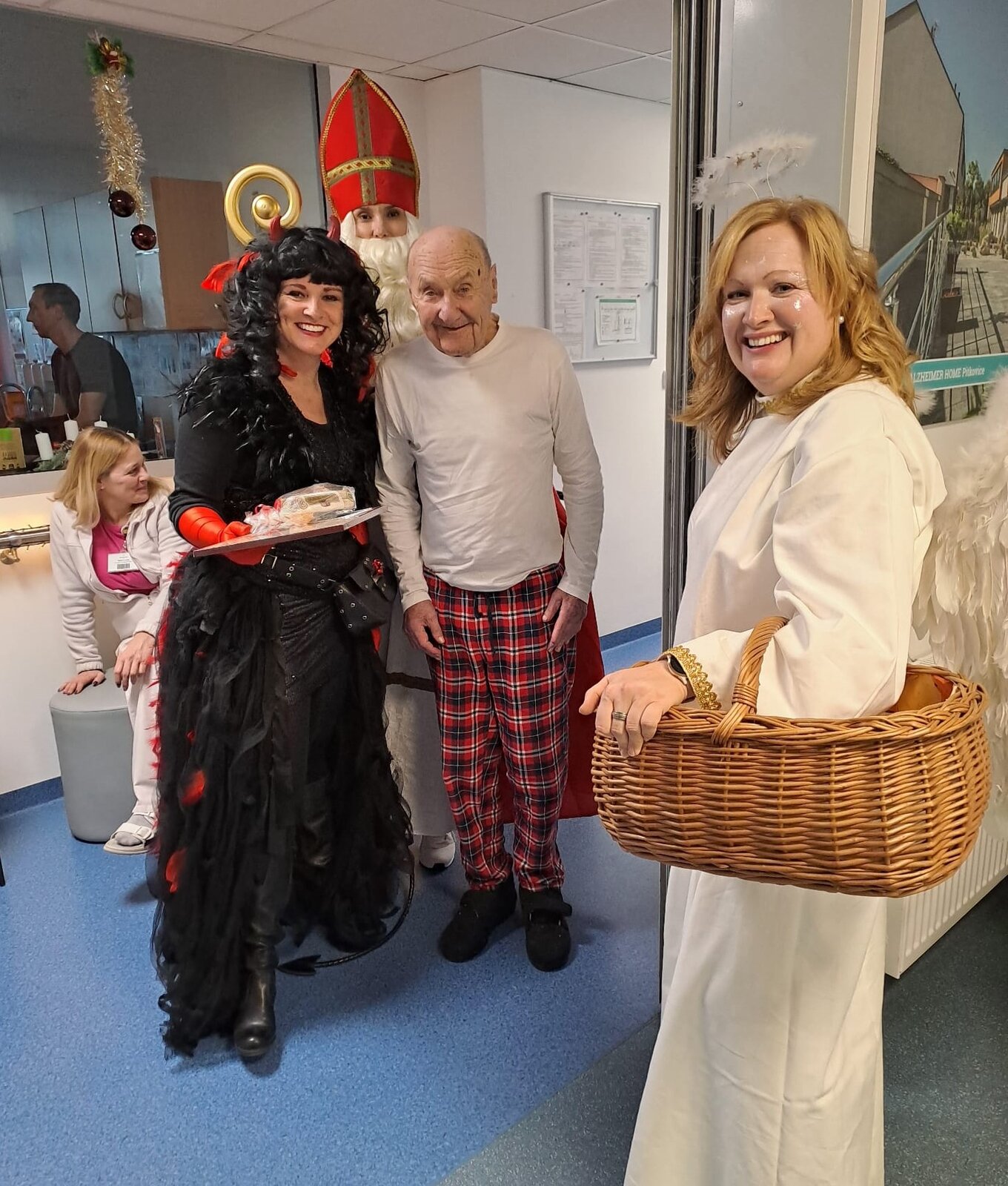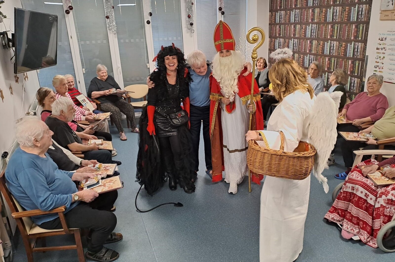 Mikulášská nadílka v Senevida Ostrov proběhla za velkého veselí, které rozzářilo nejen klienty, ale i celý personál. Nechyběli tradiční postavy – Mikuláš🎅, čertice 👹a anděl 😇. Ačkoliv se čertice snažila být alespoň trochu strašidelná, nikdo z přítomných se jí nebál, spíše naopak. Anděl rozdával nejen drobné dárečky, ale i laskavé úsměvy, které rozzářily tváře všech přítomných.