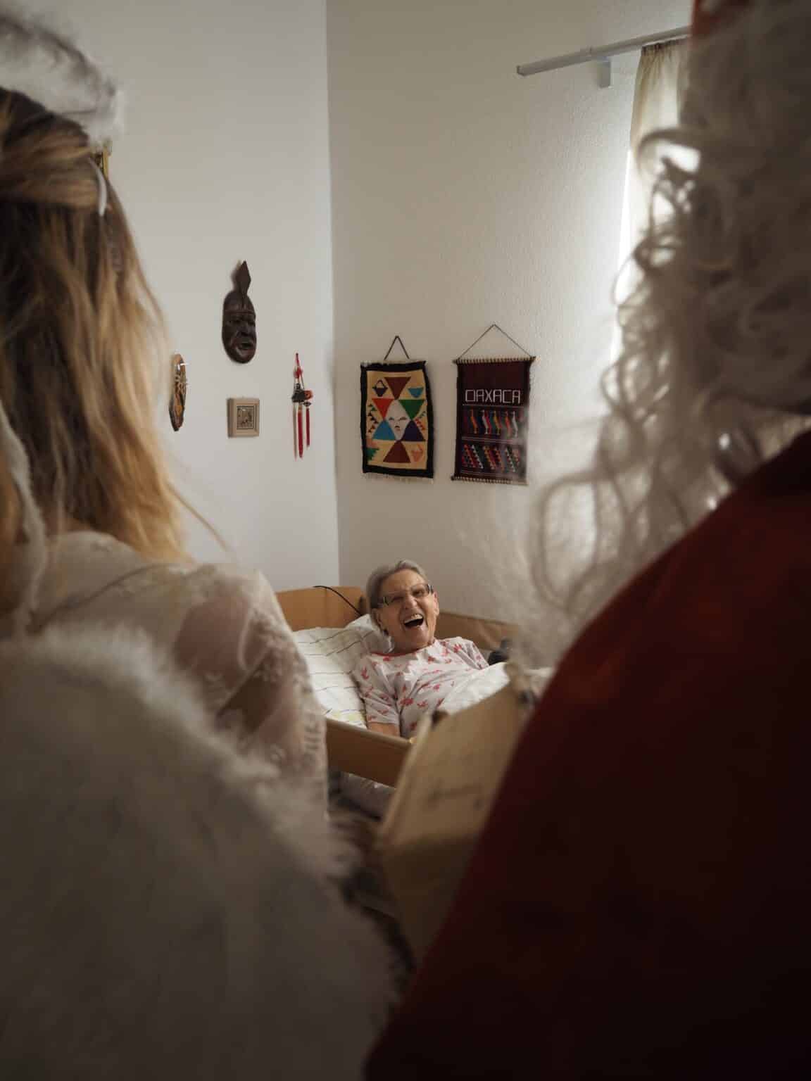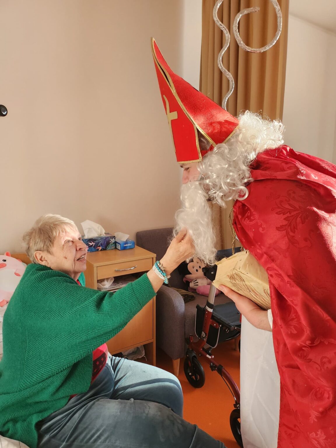 V průběhu dne společně navštívili všechny pokoje, kde si s klienty zazpívali koledy a připomněli si oblíbené mikulášské básničky.