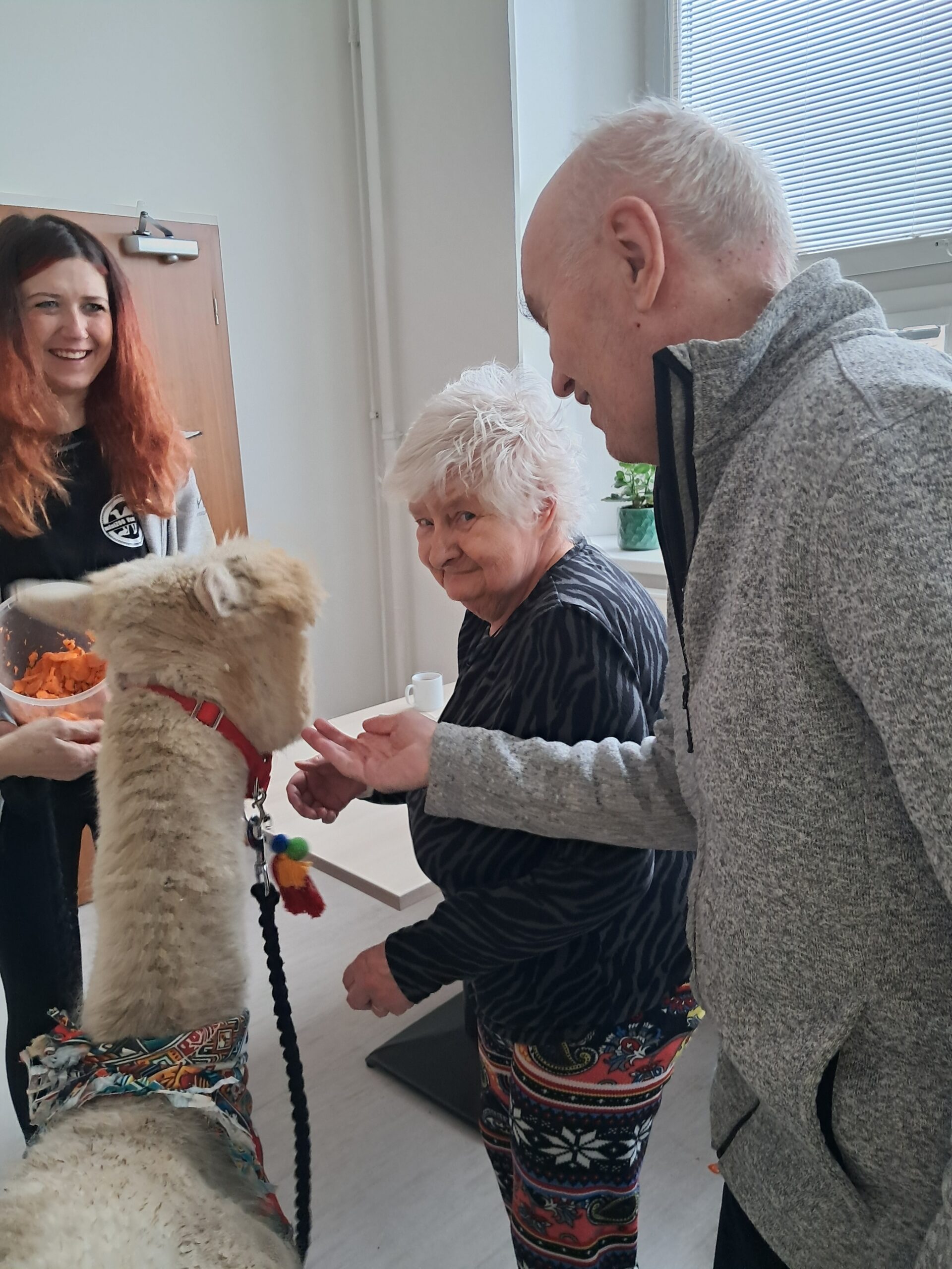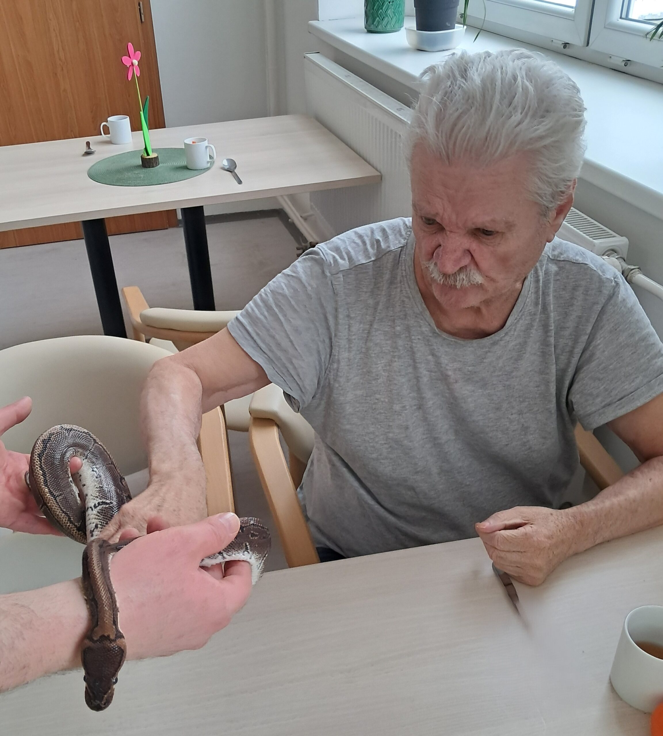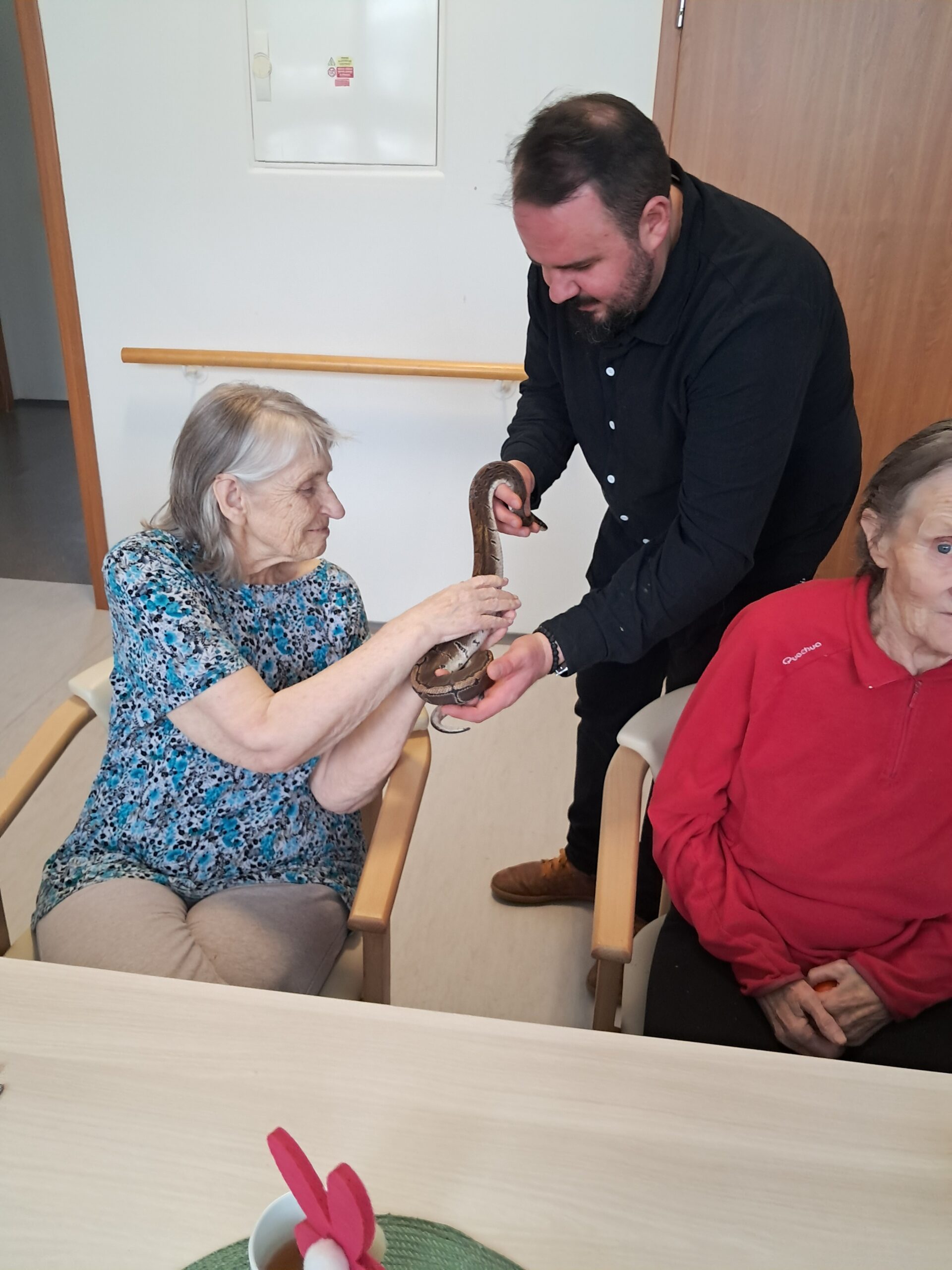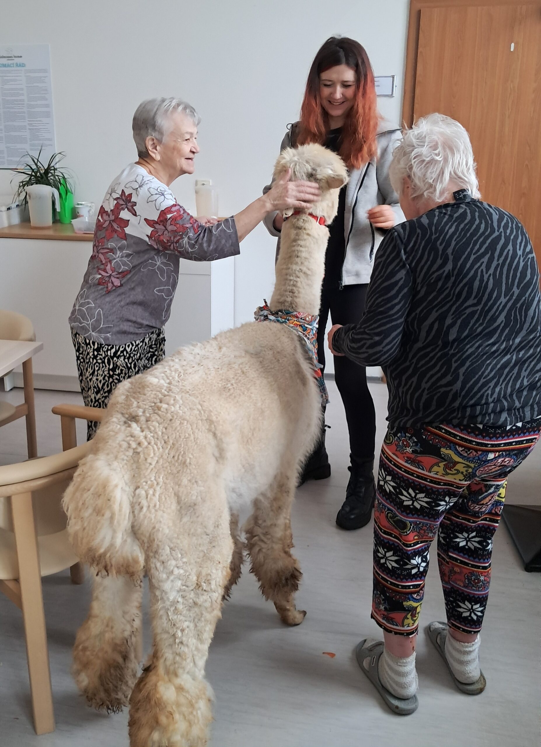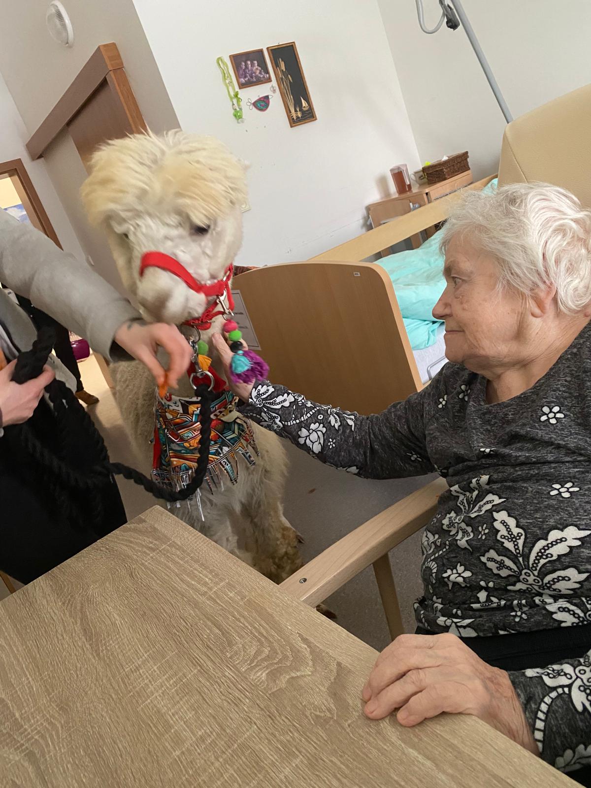 Do našeho zařízení zavítala zvířátka z miniZOO Vendryně. Krásná kontaktní alpaka, hebká činčila i nekonfliktní had. Zvířata potěšila klienty při citlivě vedeném setkání přizpůsobené jejich možnostem. Návštěva přinesla klientům radost, podpořila komunikaci i vzpomínky a přispěla k veselejší náladě.