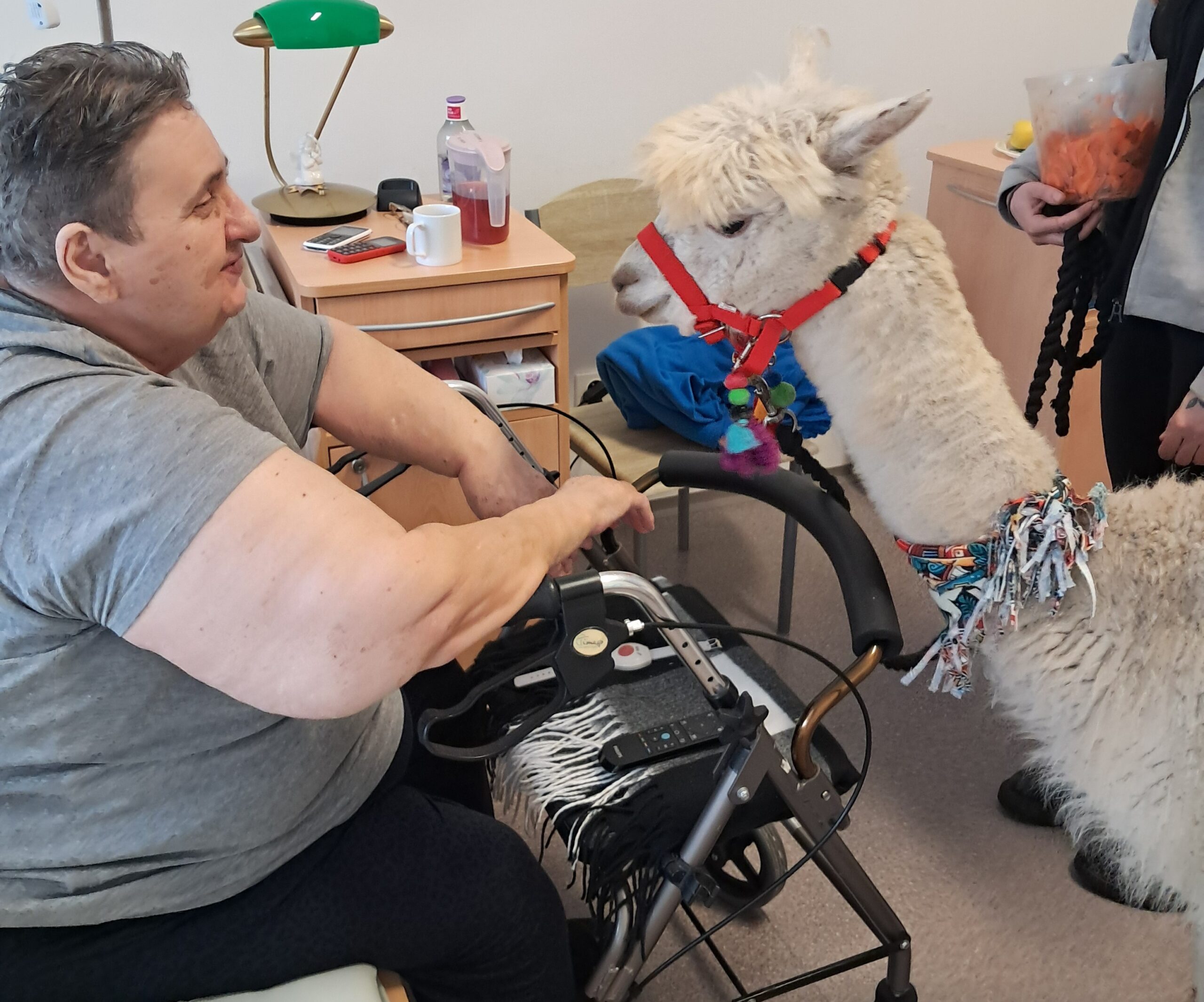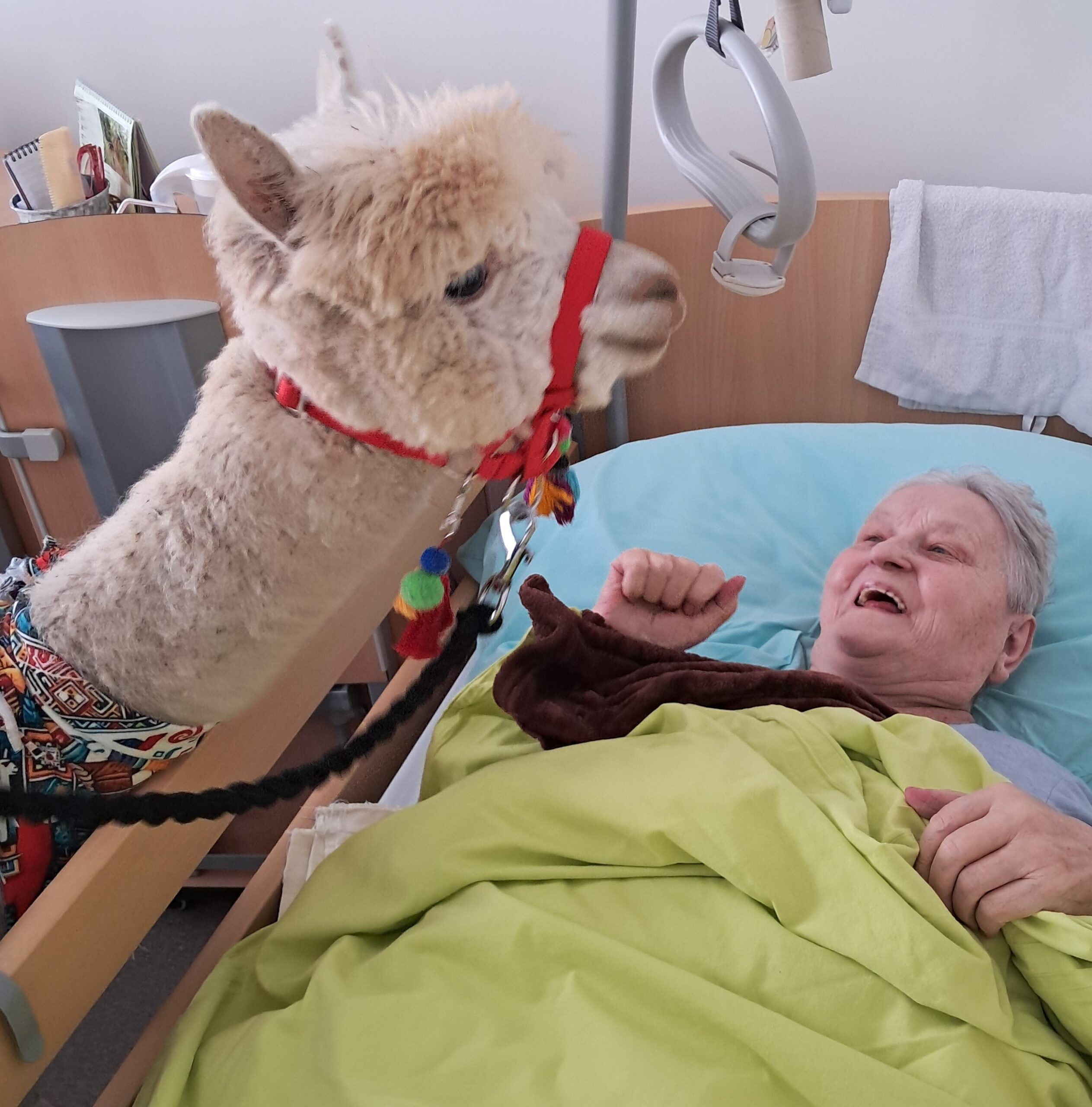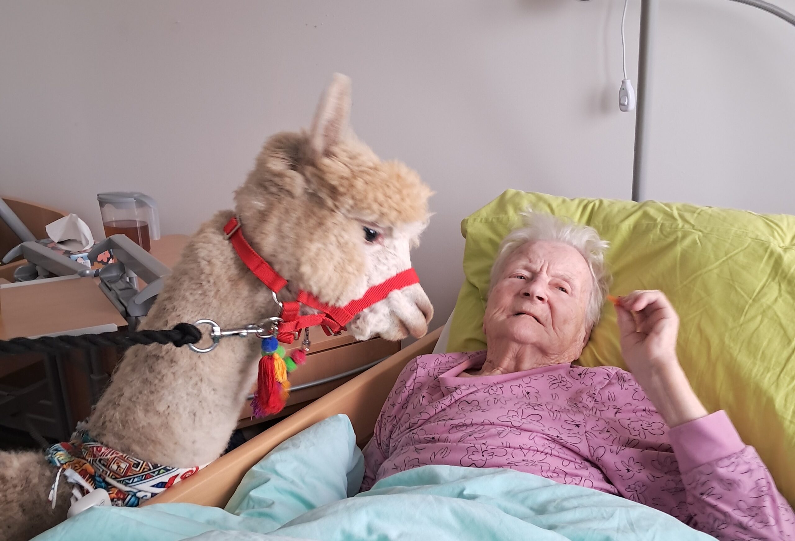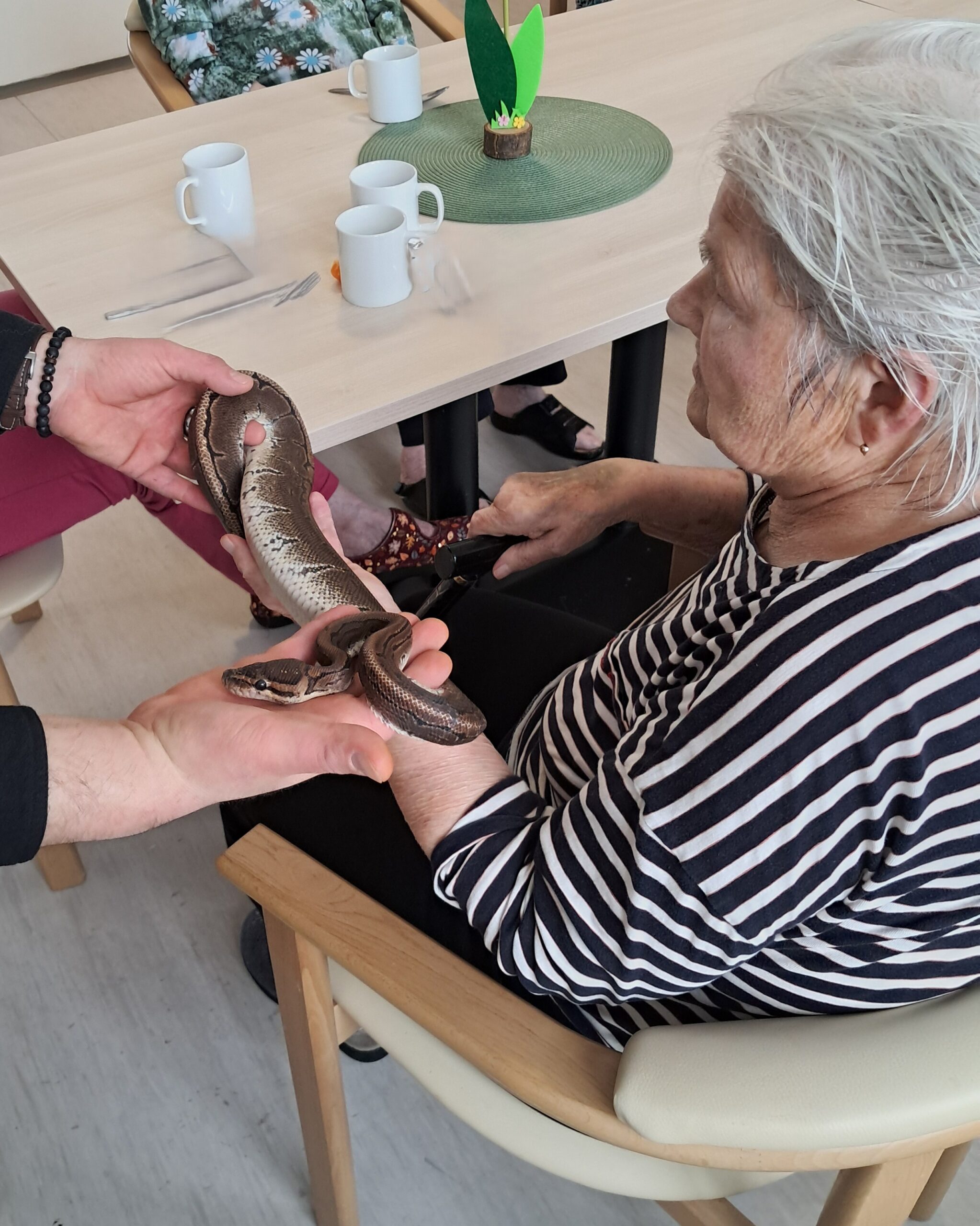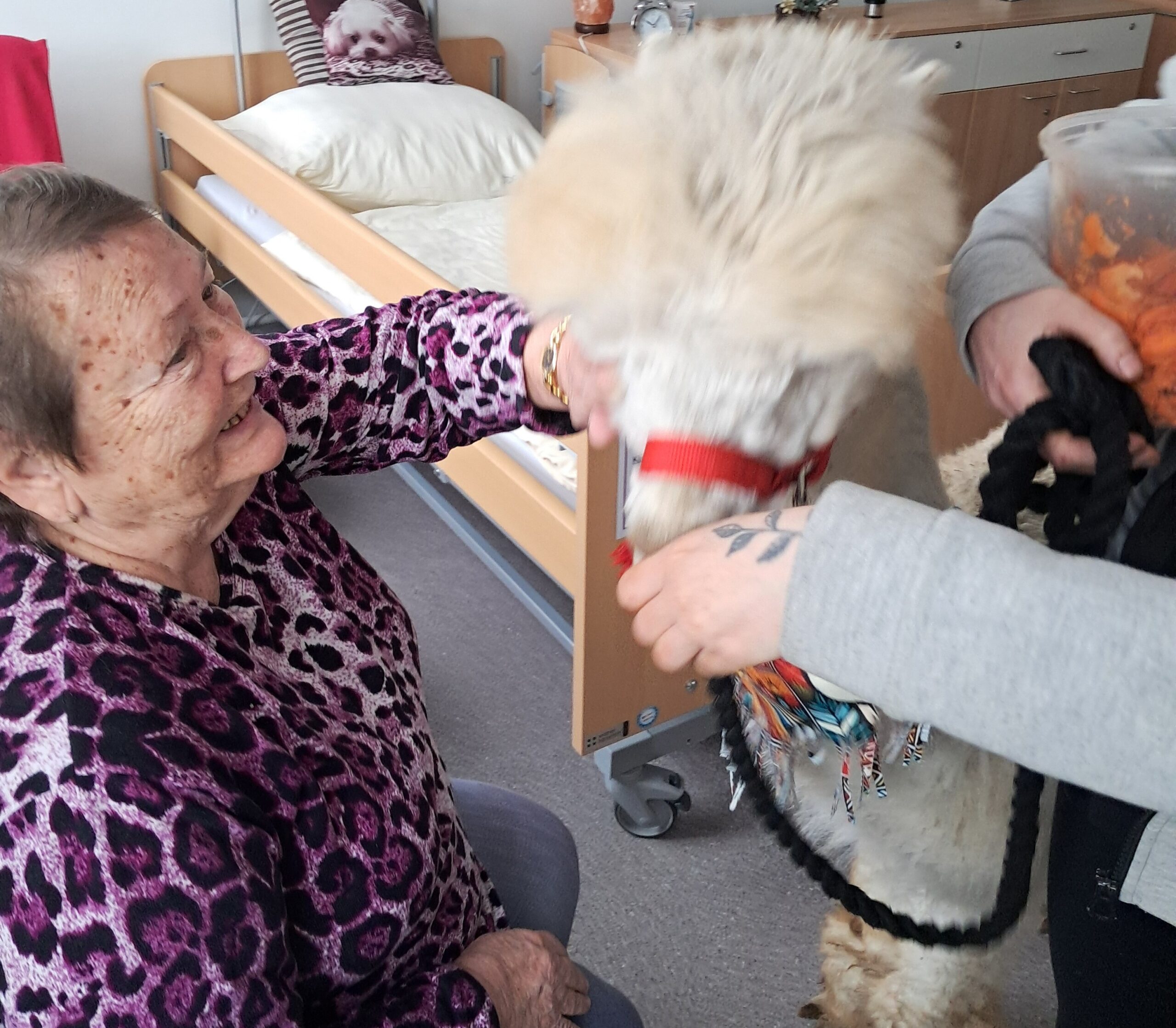 Do našeho zařízení zavítala zvířátka z miniZOO Vendryně. Krásná kontaktní alpaka, hebká činčila i nekonfliktní had. Zvířata potěšila klienty při citlivě vedeném setkání přizpůsobené jejich možnostem. Návštěva přinesla klientům radost, podpořila komunikaci i vzpomínky a přispěla k veselejší náladě.