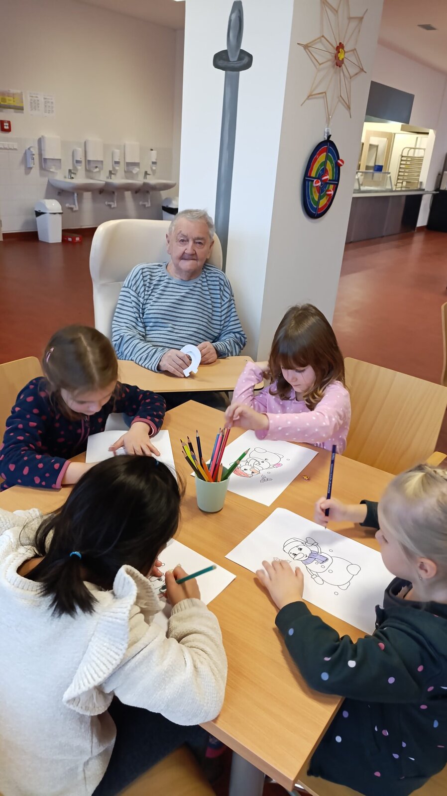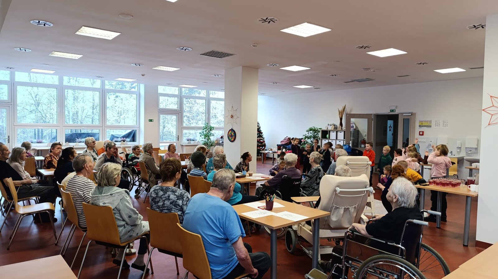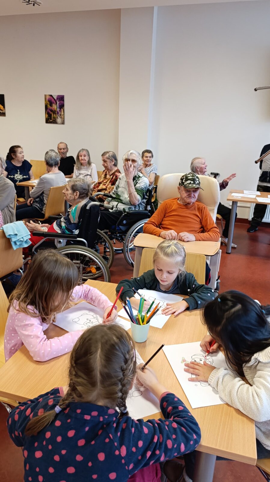 Do Senevida Nepomuk přišla MŠ Nepomuk. 👱♀️👧🧒 Dětičky nám zazpívaly, zatančily a přinesly klientům i vytvořené dárečky v podobě podkoviček pro štěstí. Na závěr jsme si vykreslili obrázky se zimním motivem. ⛄ Všichni jsme si to moc užili. 🤩