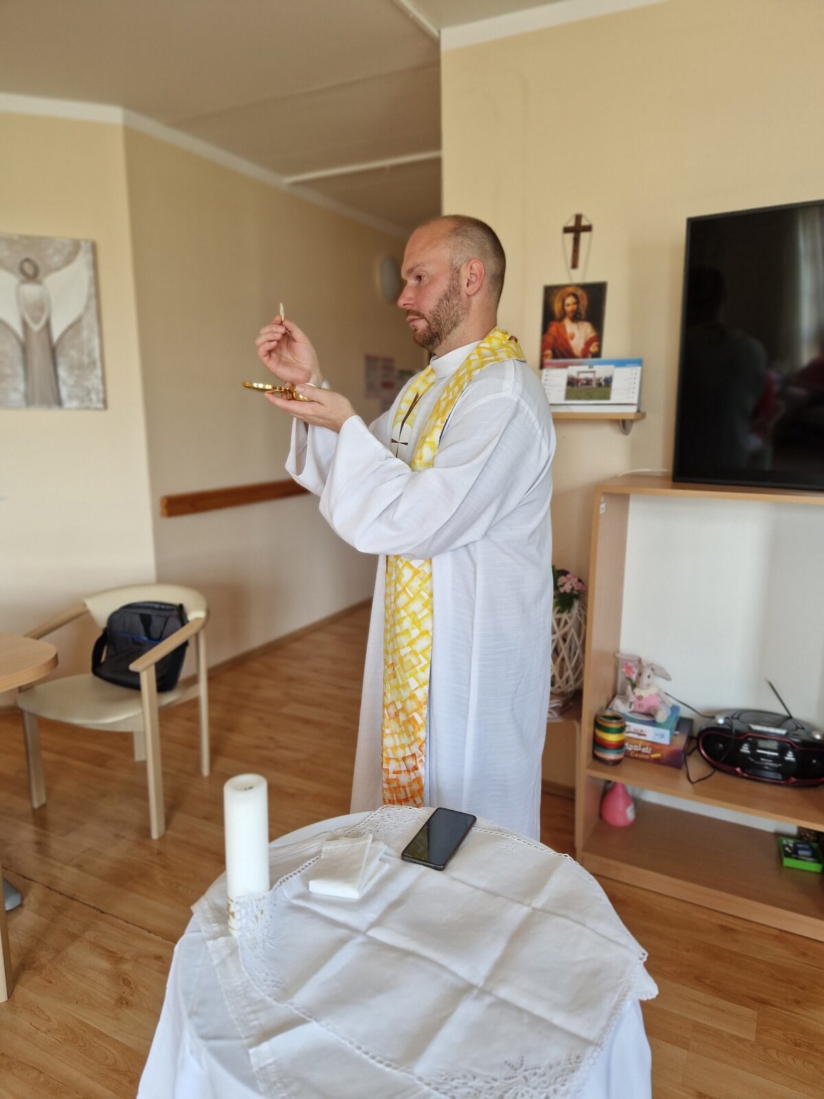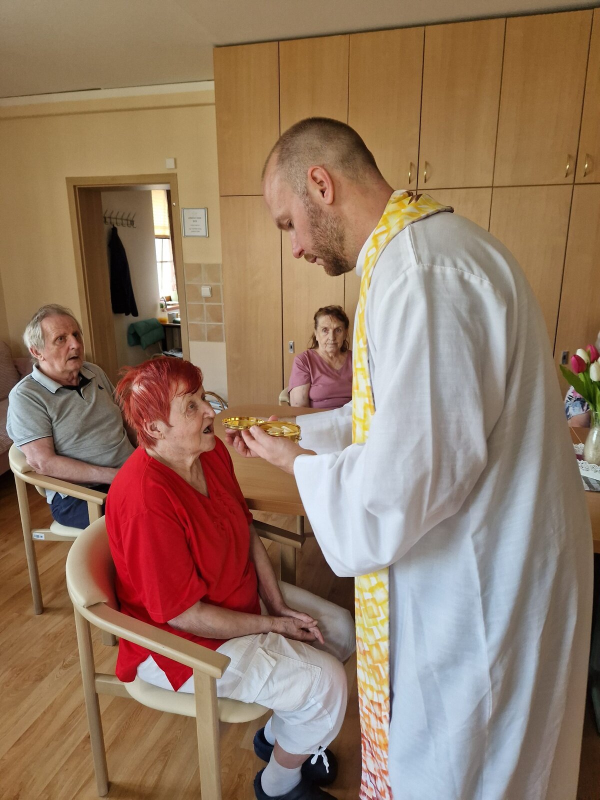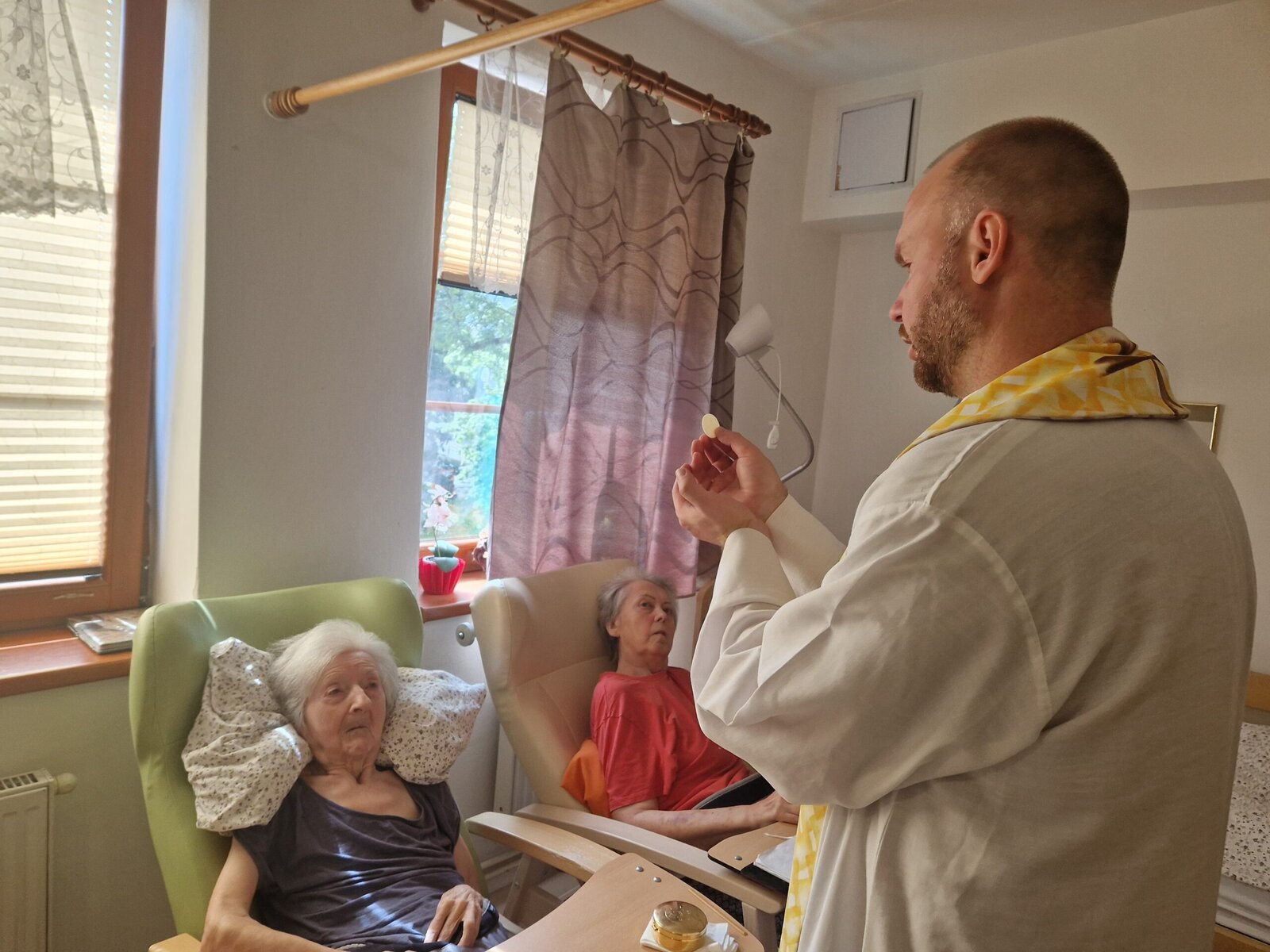 Každou první středu v měsíci se v Senevida Frýdek-Místek koná Mše svatá. Po společné bohoslužbě navštěvuje otec Václav klienty také na pokojích, aby si mohli v soukromí popovídat či se pomodlit. 🙏