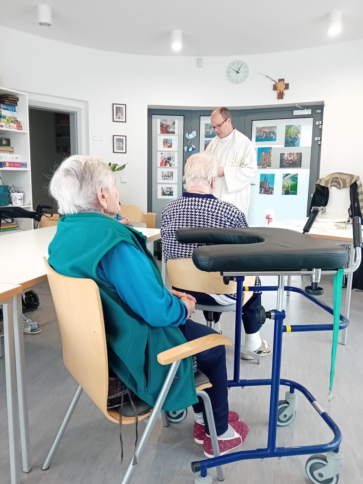 O duchovní potřeby klientů v Senevida Slavkov se pravidelně stará místní pan farář Jiří Janoušek. Rádi se s ním setkáváme. Po mši se věnuje klientům i individuálně na pokojích. Je u nich velmi vítaným hostem.