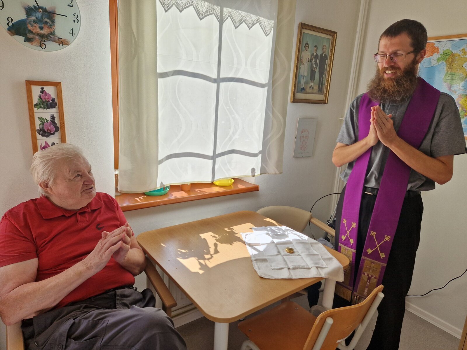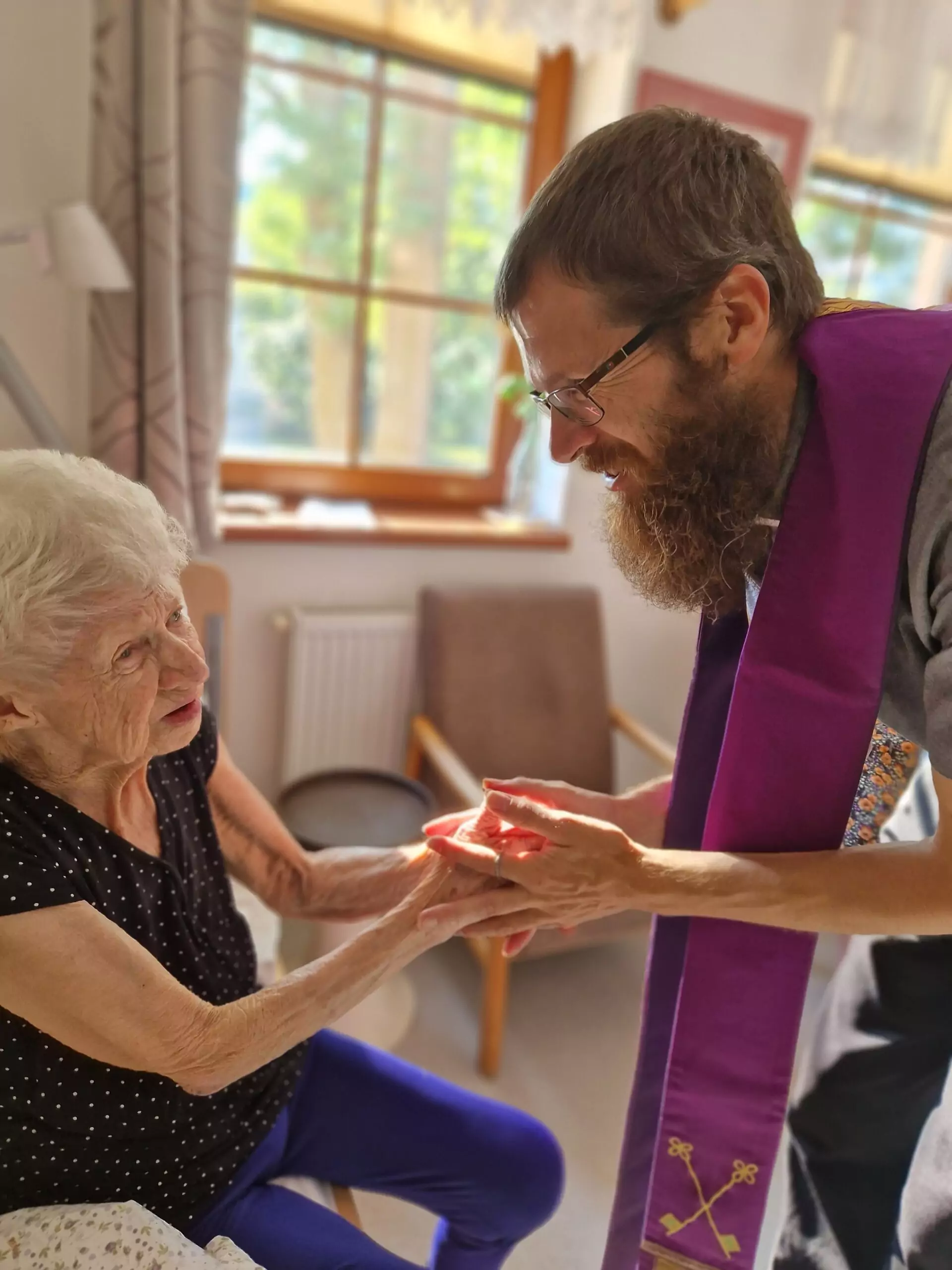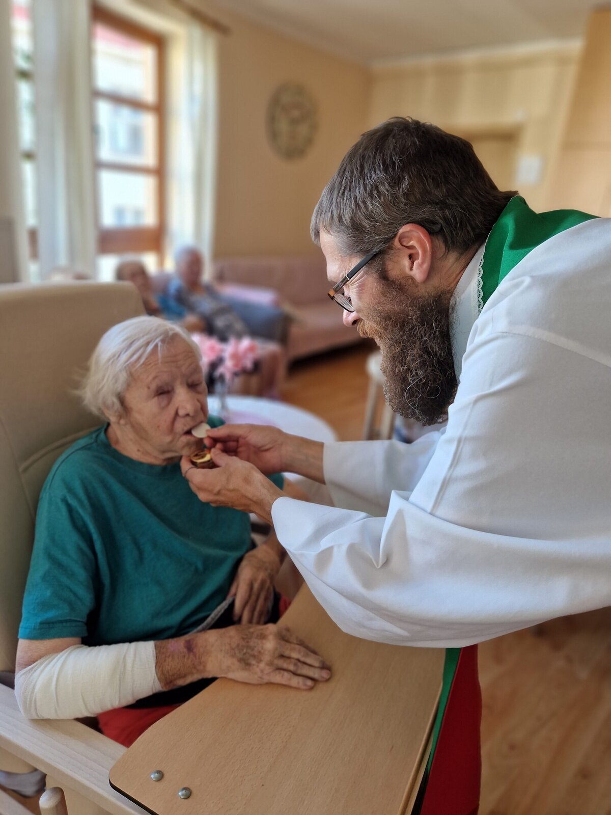 V Senevida Frýdek-Místek myslíme na naplňování duchovních potřeb našich klientů. Tento měsíc se v našem Domově proto konala pravidelná Mše svatá, kterou sloužil otec Jiří z Římskokatolická farnost Místek. Po mši věnoval čas individuálním návštěvám na pokojích našich klientů.