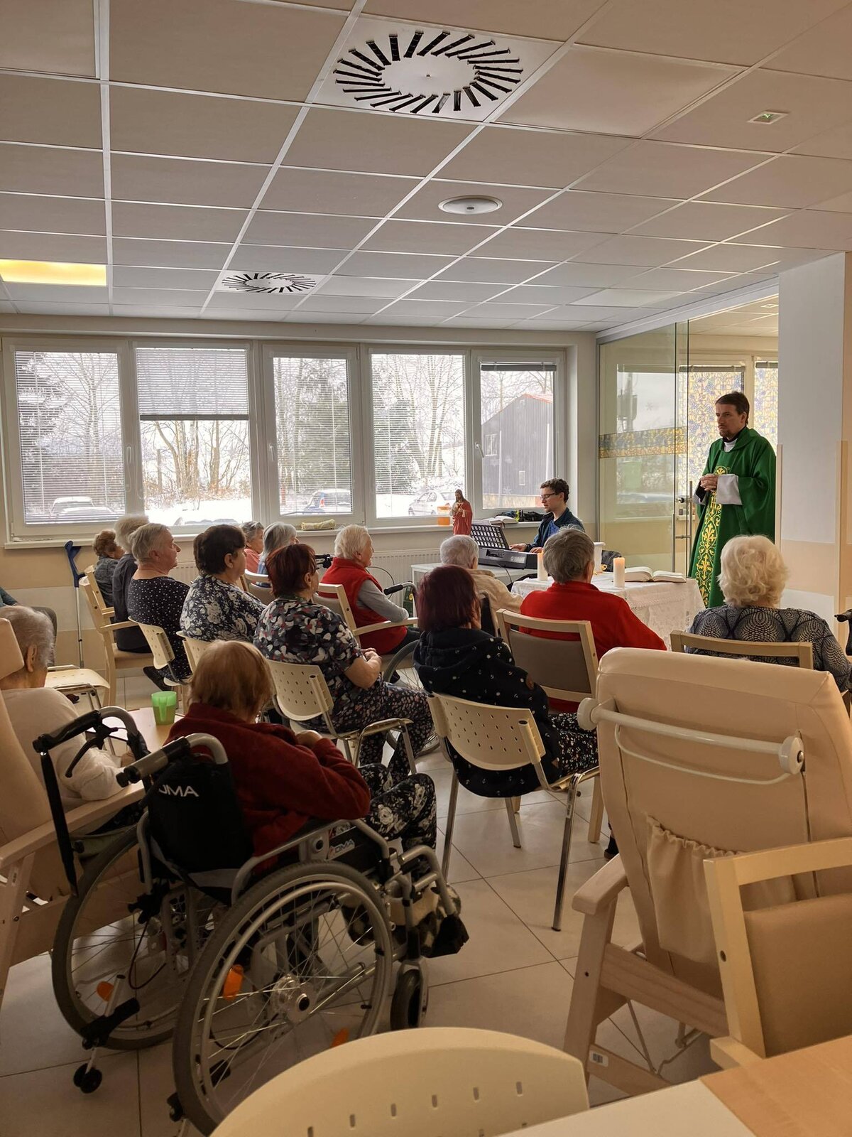 Do našeho zařízení pravidelně dochází i otec František Ponížil, který pomáhá naplňovat duchovní potřeby našich klientů. Také v únoru byla sloužena mše svatá v naší nové kapli.