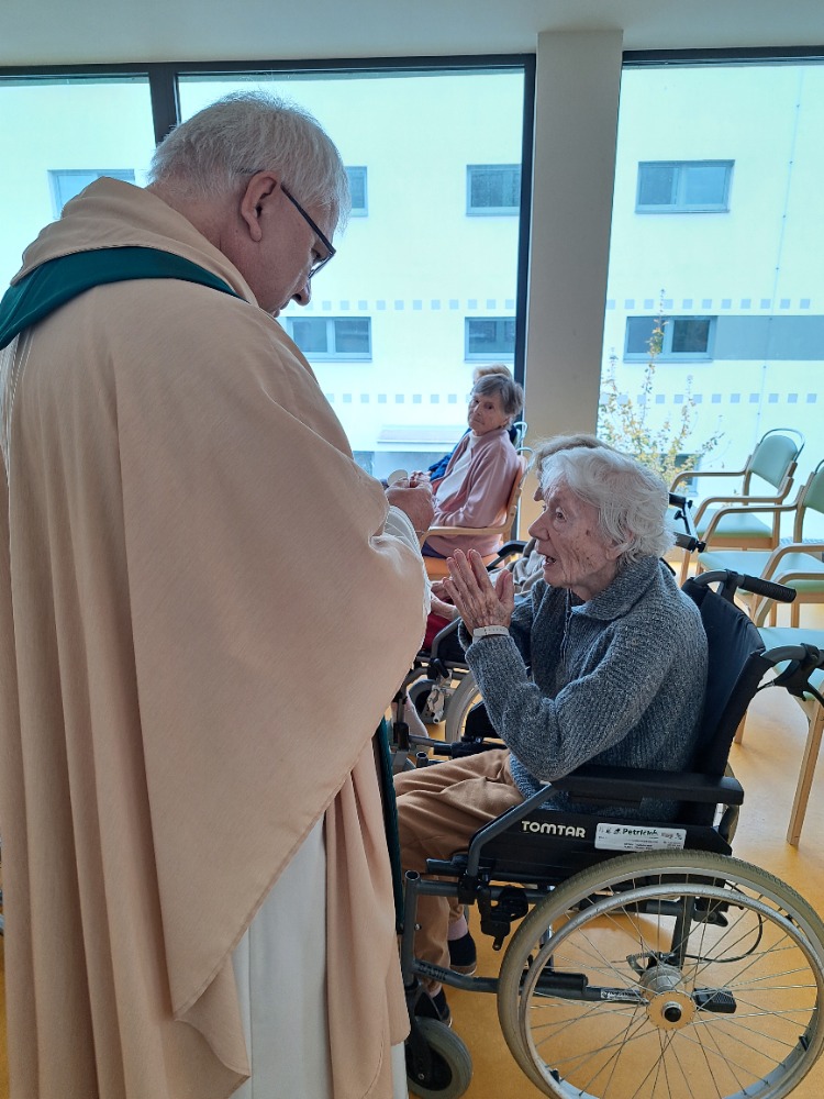 V uplynulých dnech nás v Senevida Boskovice navštívil pan farář, aby sloužil mši svatou. Společně jsme se pomodlili, zazněla známá liturgická čtení i písně a mnozí z našich klientů měli možnost přijmout svátost eucharistie. Navíc pan farář navštívil i naše klienty individuálně na pokojích, aby mohl nabídnout osobní modlitbu a duchovní podporu těm, kteří se nemohli mše zúčastnit.🥰