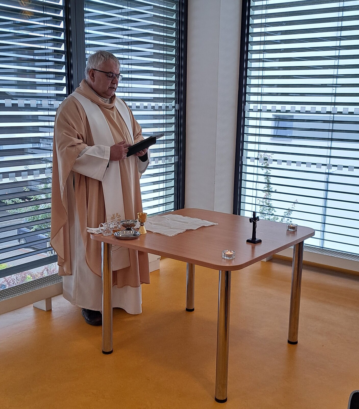 Náš domov Senevida Boskovice opět navštívil pan farář, který pro naše klienty sloužil mši svatou. Tato duchovní událost byla pro mnohé z nich hlubokým a radostným zážitkem. Pán farář také individuálně navštívil některé klienty přímo na jejich pokojích, aby jim poskytl duchovní posilu a slovo útěchy. Velmi si vážíme jeho laskavého přístupu a času, který nám věnoval. 😊