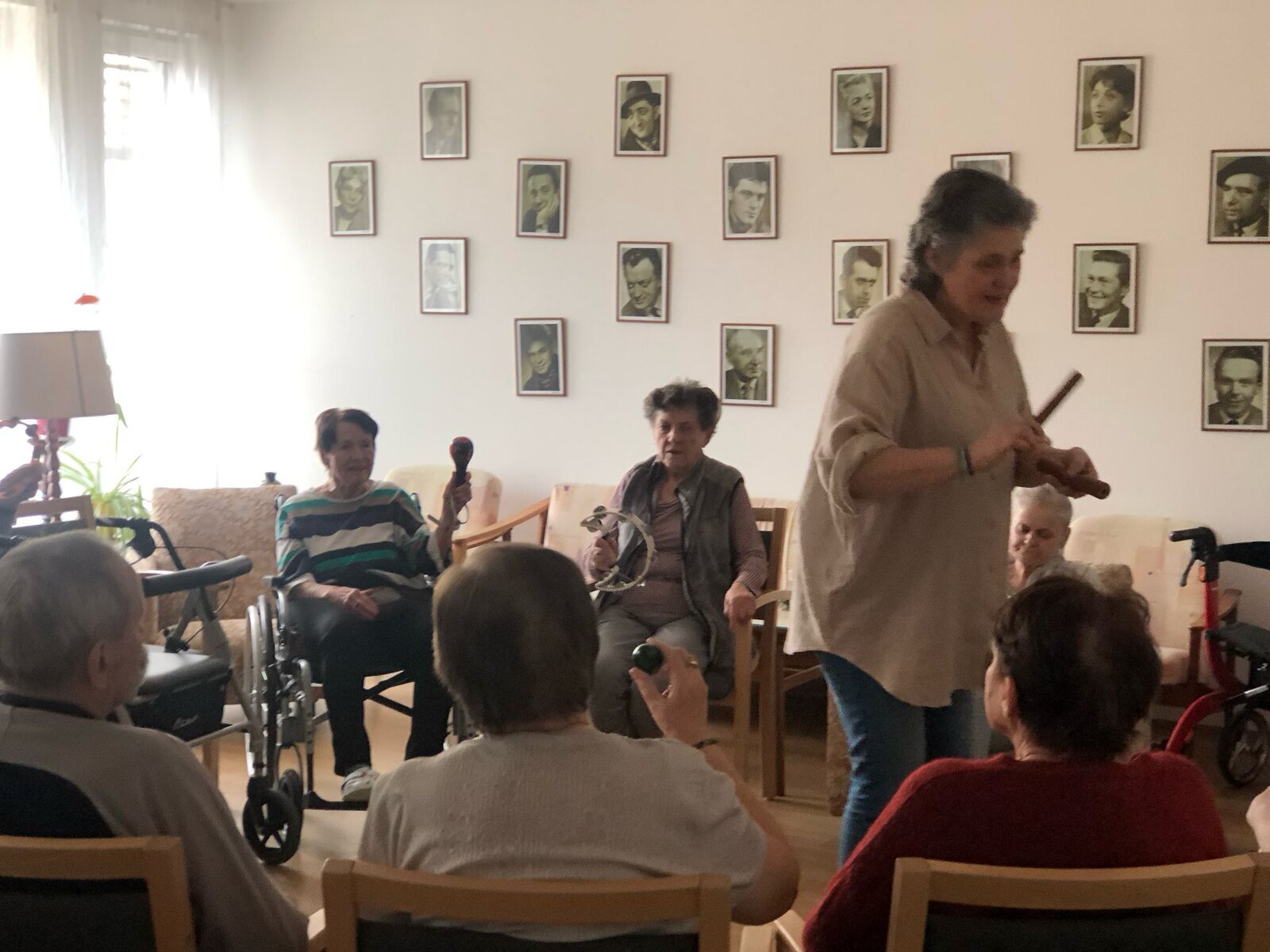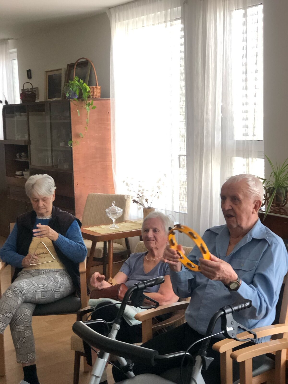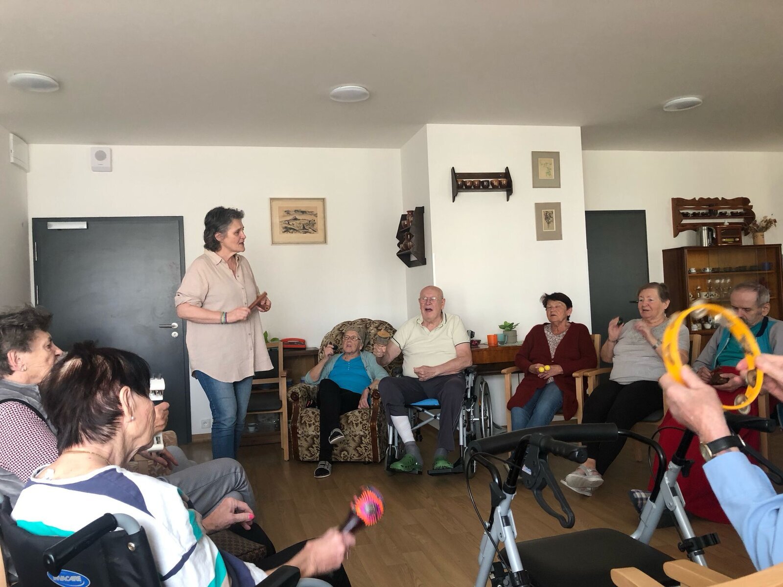 V Senevida Pardubice nás opět navštívila paní Pavlína Votkeová se svou muzikoterapií, jejímž cílem je usnadnit a rozvinout komunikaci, vztahy, učení, pohyblivost nebo sebevyjádření za účelem uspokojení tělesných, emocionálních, mentálních, sociálních a kognitivních potřeb.![]()