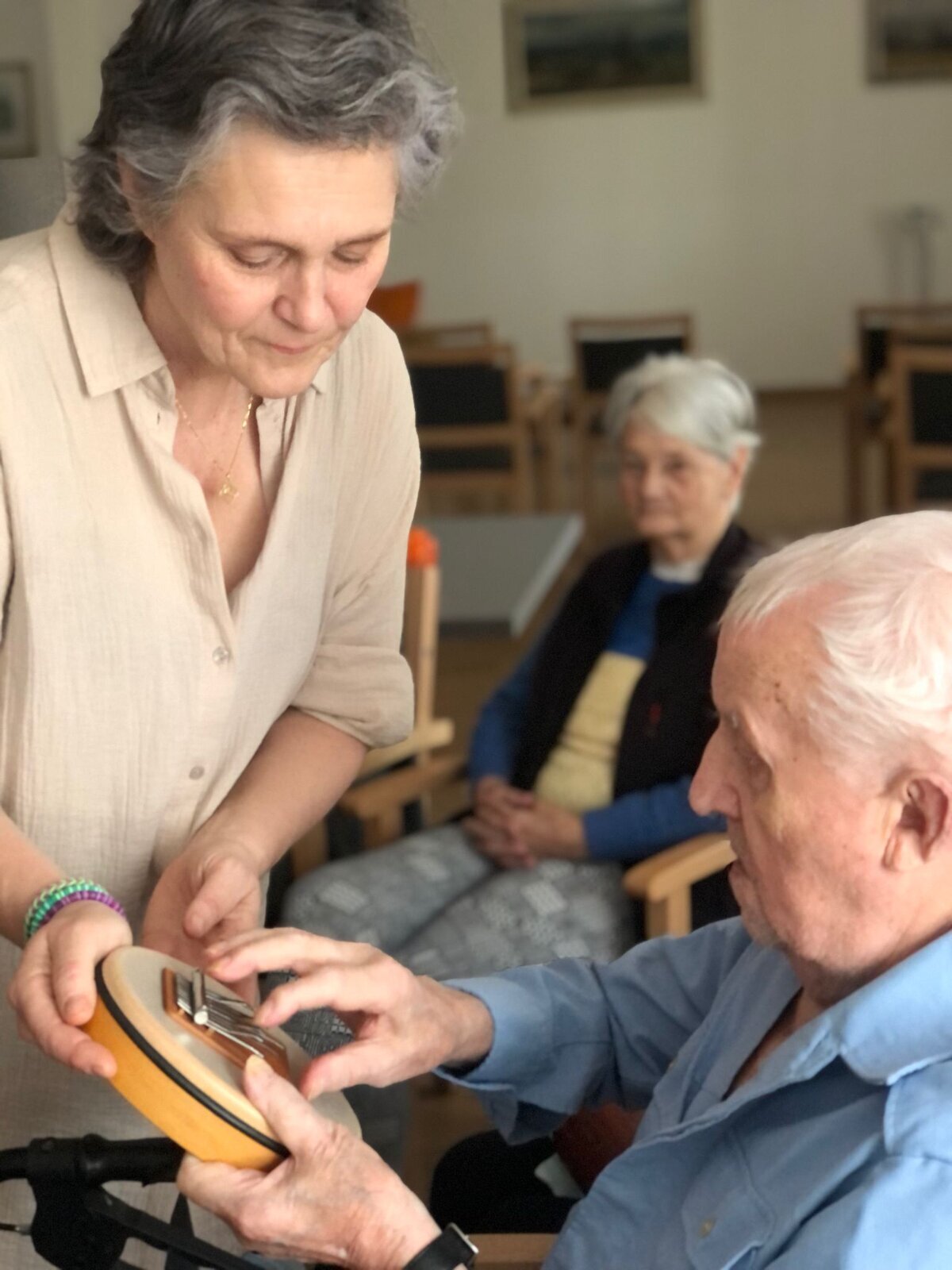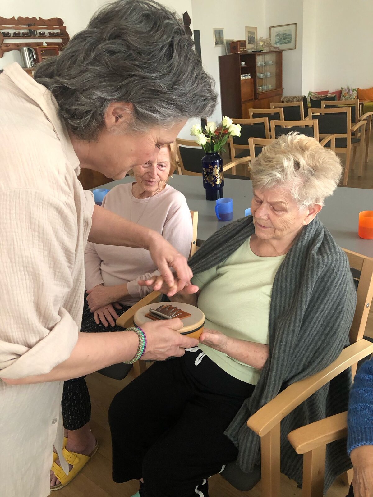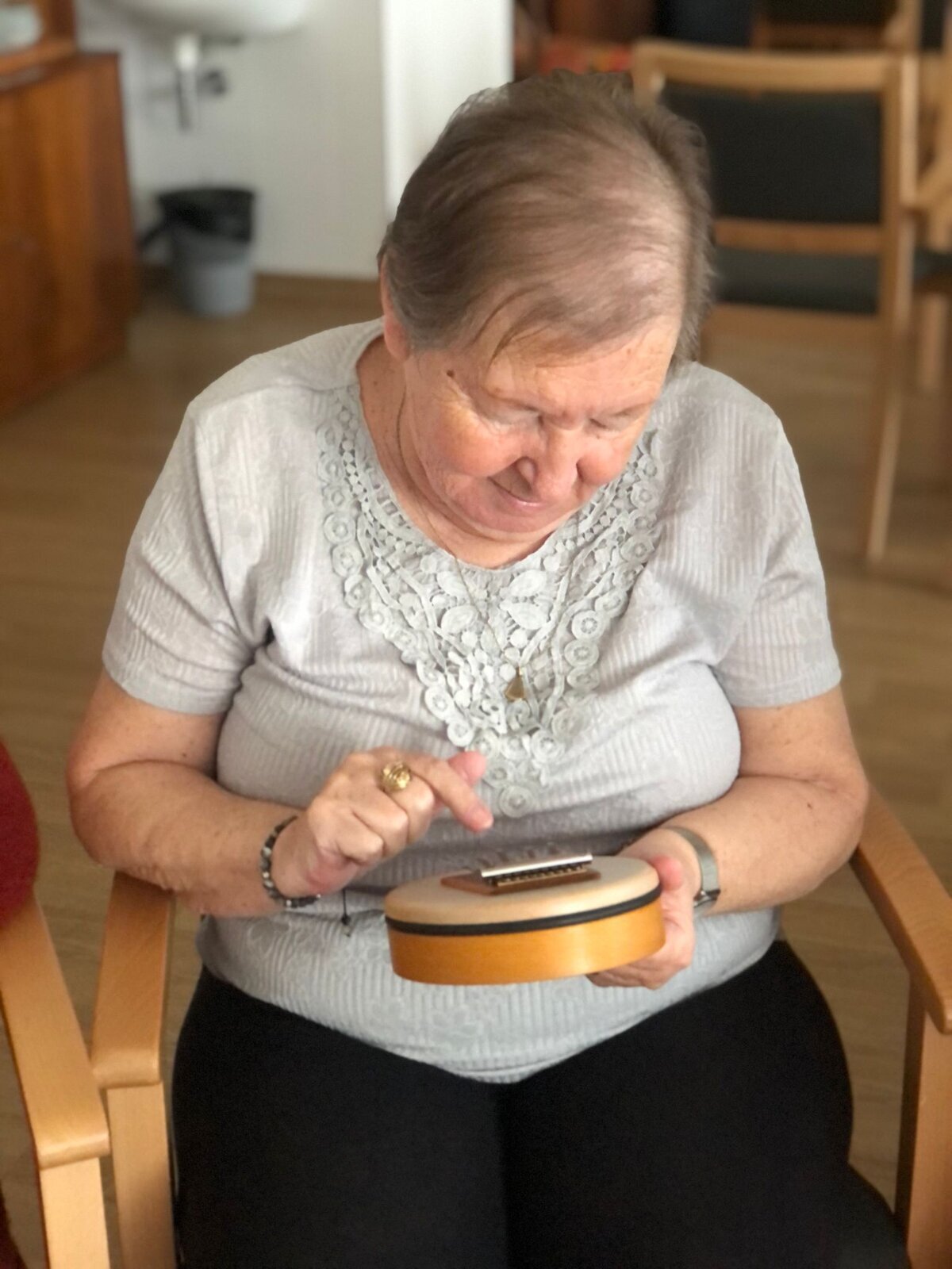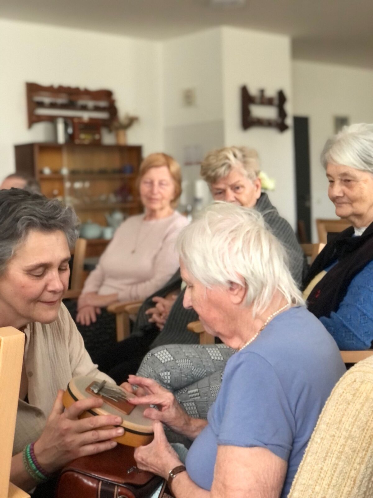 V Senevida Pardubice nás opět navštívila paní Pavlína Votkeová se svou muzikoterapií, jejímž cílem je usnadnit a rozvinout komunikaci, vztahy, učení, pohyblivost nebo sebevyjádření za účelem uspokojení tělesných, emocionálních, mentálních, sociálních a kognitivních potřeb.![]()