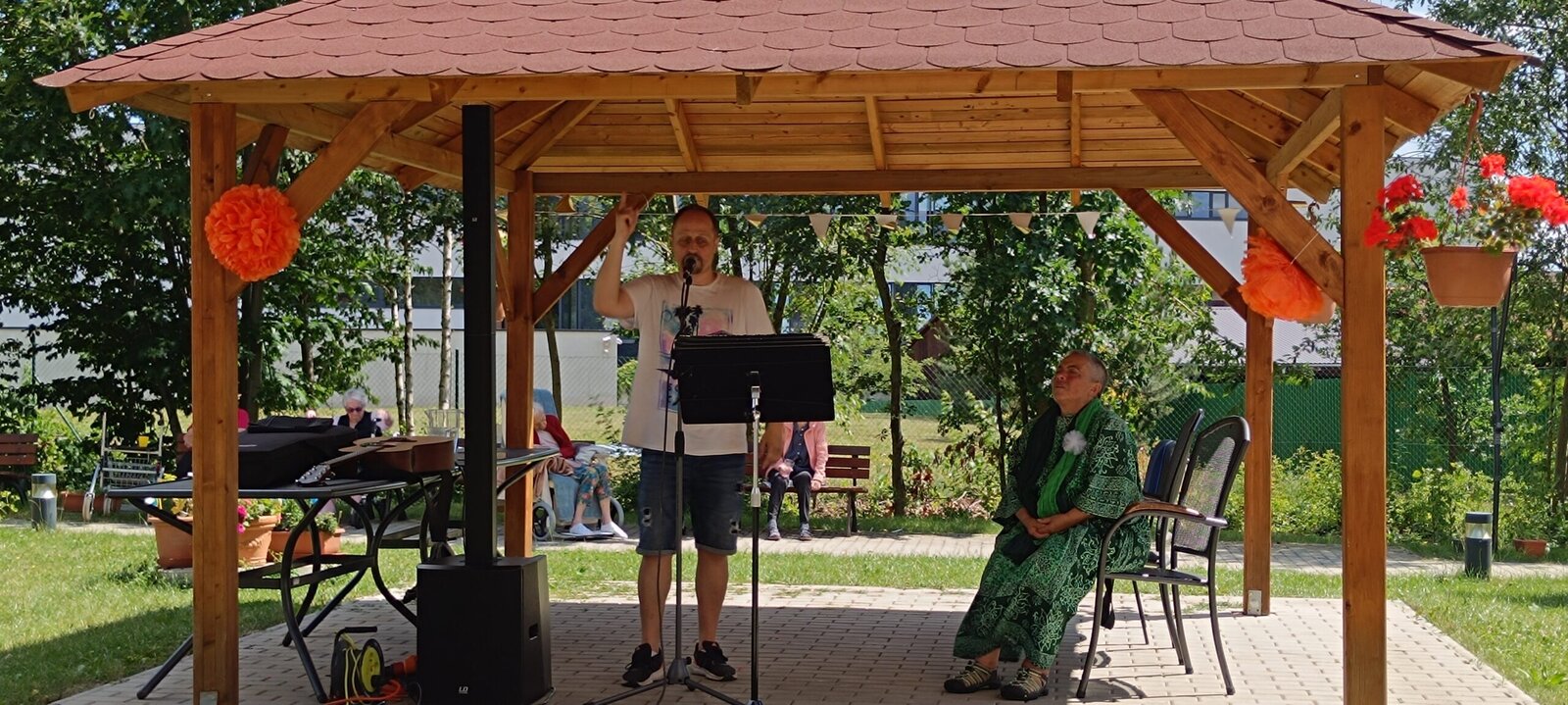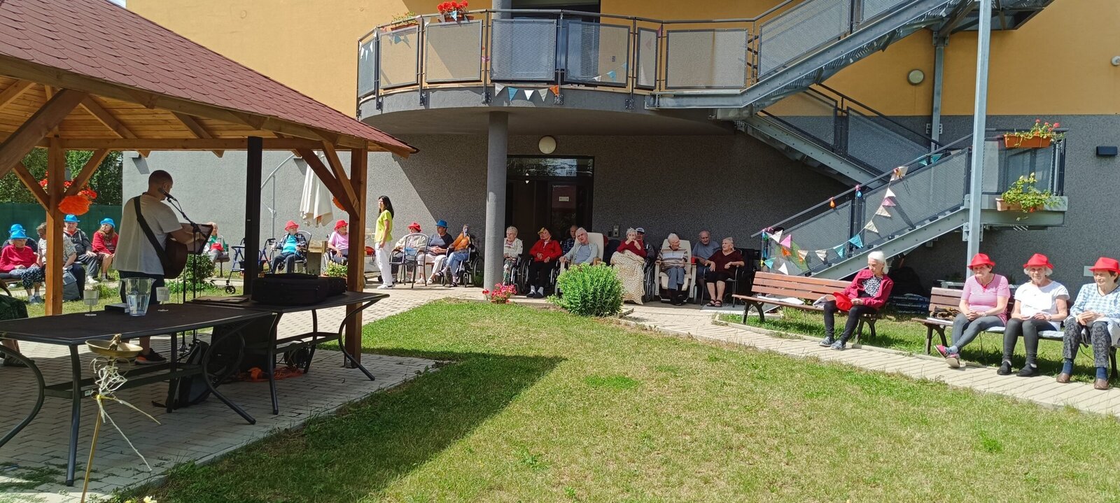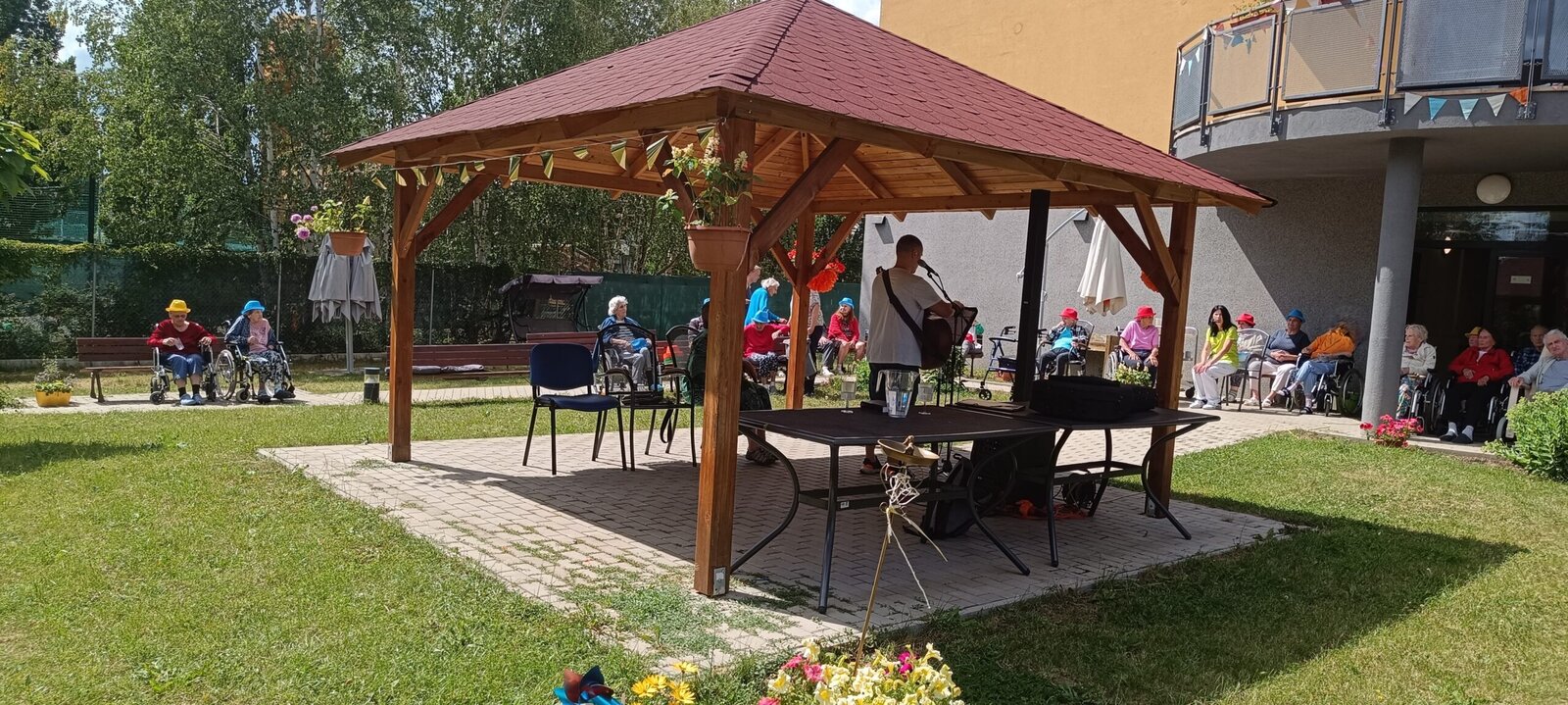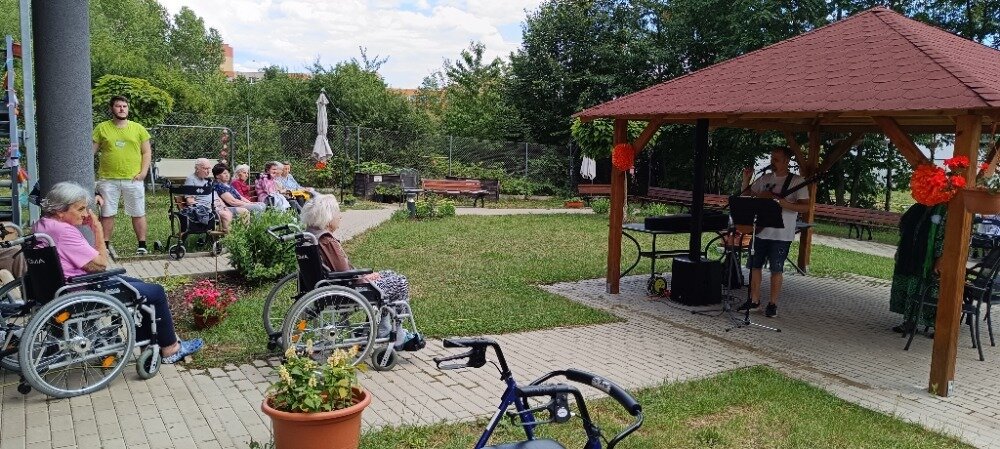 V pondělí v Senevida Modřany nás odpoledne navštívil muzikant a skladatel náboženských písniček Petr Hloušek a jeho kamarádka Maruška. Od Petra zazněli krásné písně o Bohu. Maruška nám donesla duchovní uvědomění a modlitby. Ze začátku to vypadlo, že počasí nás zažene dovnitř, ale nakonec se umoudřilo a krásně nám svítilo sluníčko. Opět nádherně strávené odpoledne.