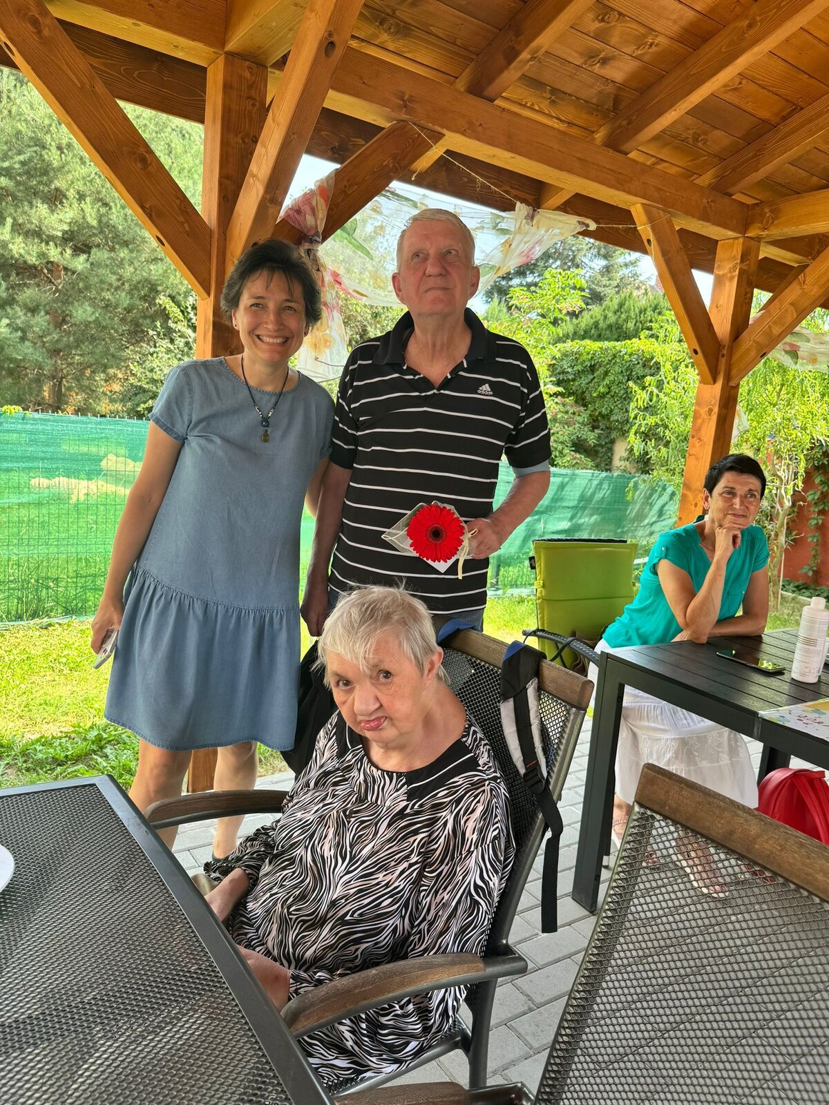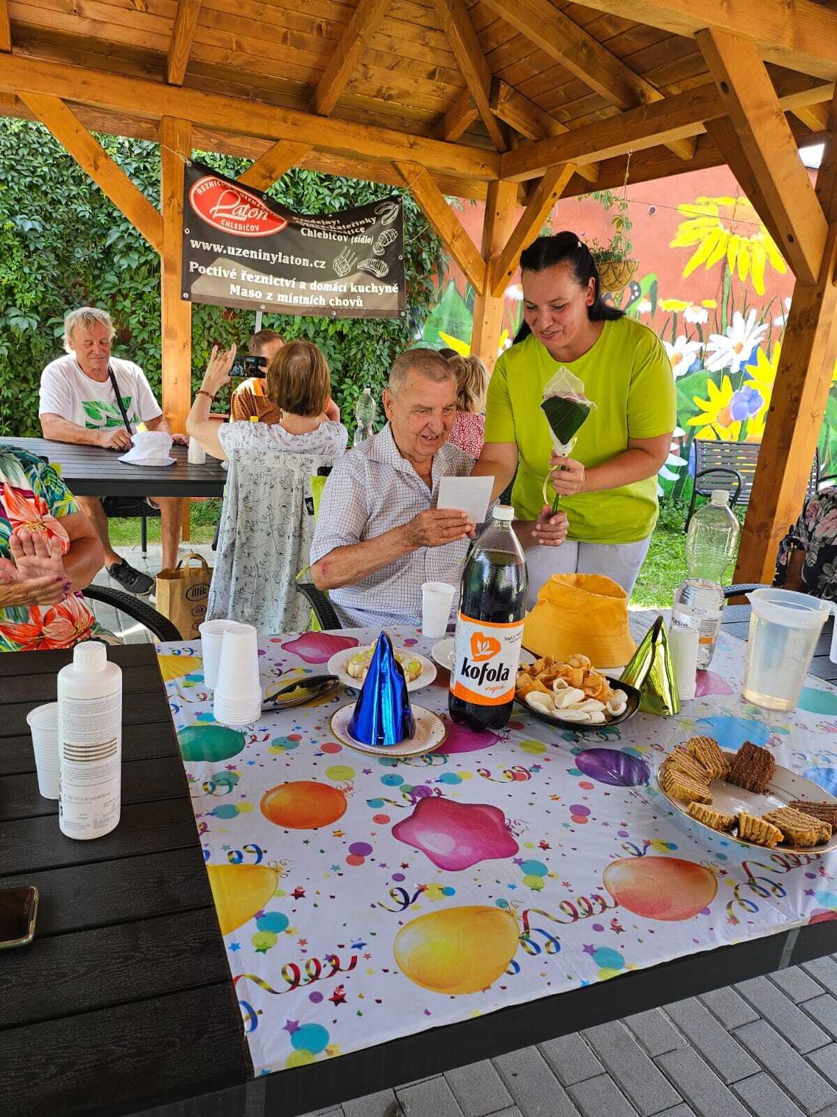 V červenci se u nás opět konala pravidelná oslava narozenin klientů. Jelikož bylo krásně tak se tentokrát oslava konala venku na zahradě, kde si to užili nejen naši klienti, ale také jejich blízcí.