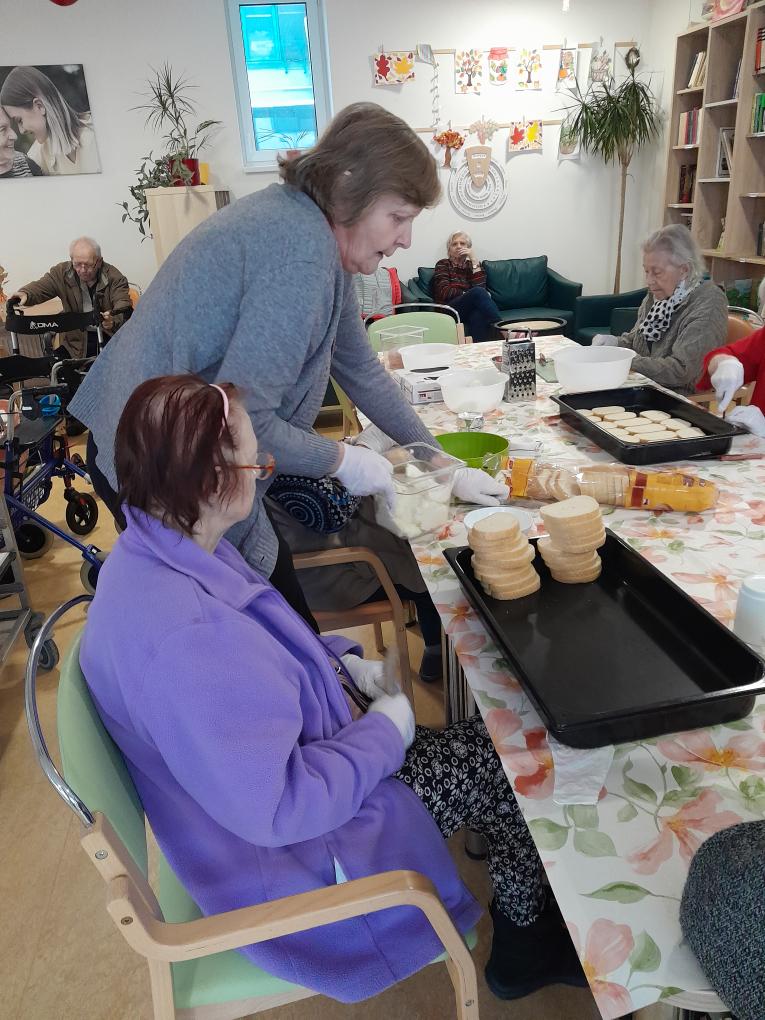 S našimi klienty z Alzheimer Home Boskovice, jsme se pustili do příprav narozeninového občerstvení – pekli jsme voňavou buchtu s čokoládovou polevou,kterou jsme ještě dochutili domácí marmeládou a na závěr jsme ji posypali kokosem, hotová buchta provoněla celý domov. K narozeninám samozřejmě patří i chlebíčky, které jsme společně připravili. Při přípravě těchto dobrot vládla příjemná atmosféra a klienti si celou akci mile užili.