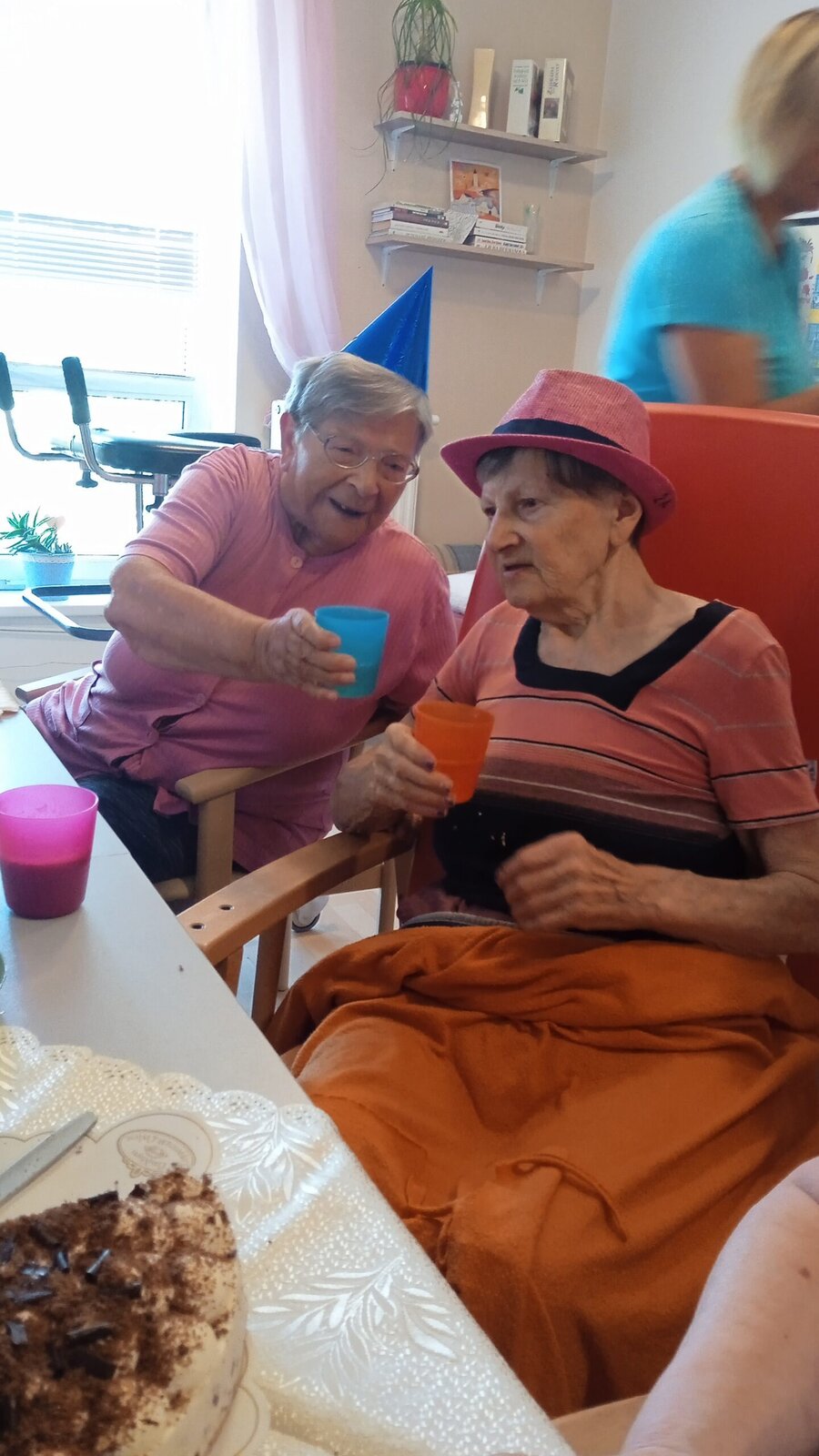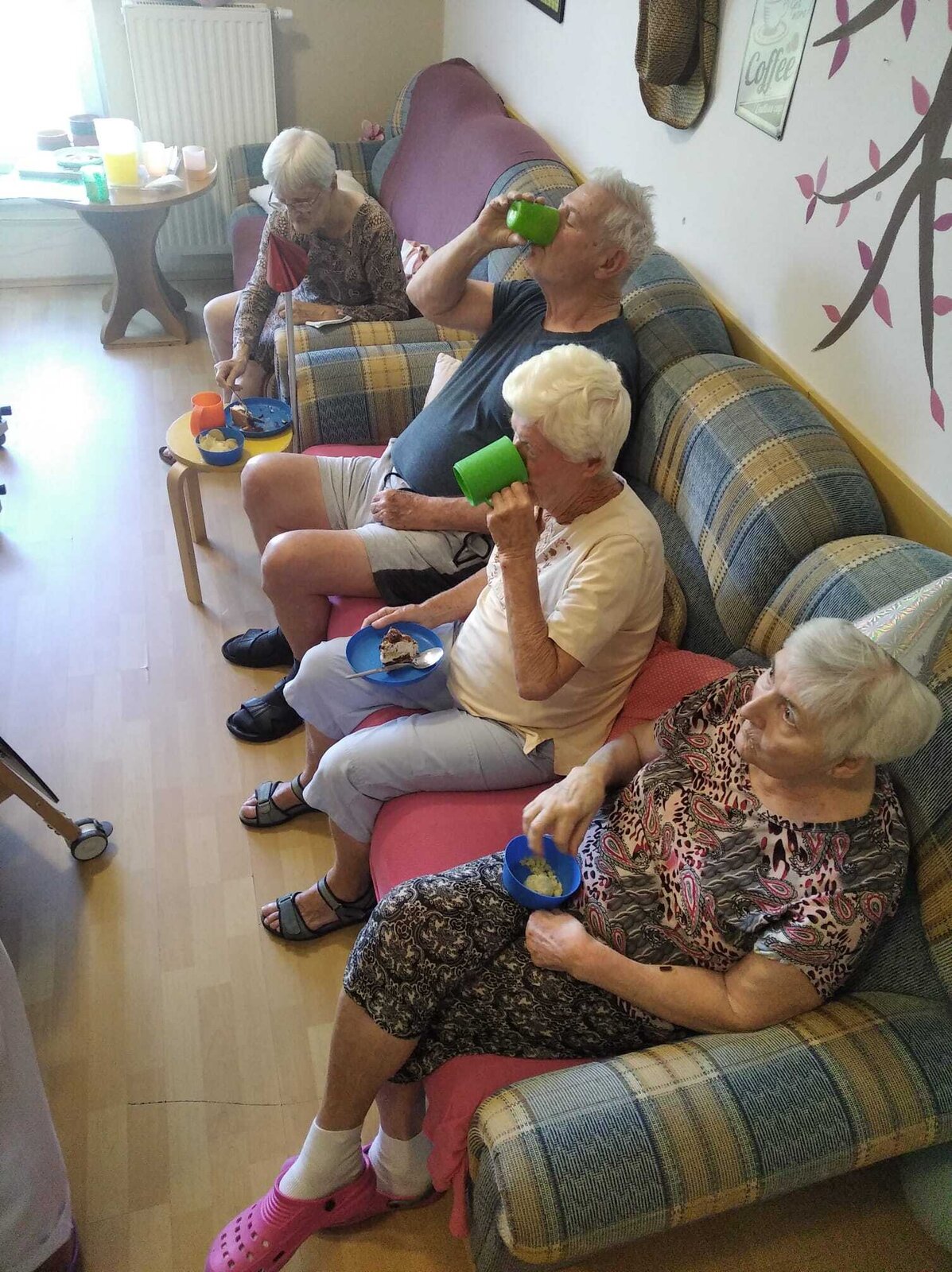 Červencové oslavy jsme si zorganizovali kvůli velkému horku zase zvlášť. Ale na úsměvu nám to stejně neubíralo. Společně jsme si přiťukli na zdraví oslavenců a abychom se tu opět za rok ve zdraví sešli.