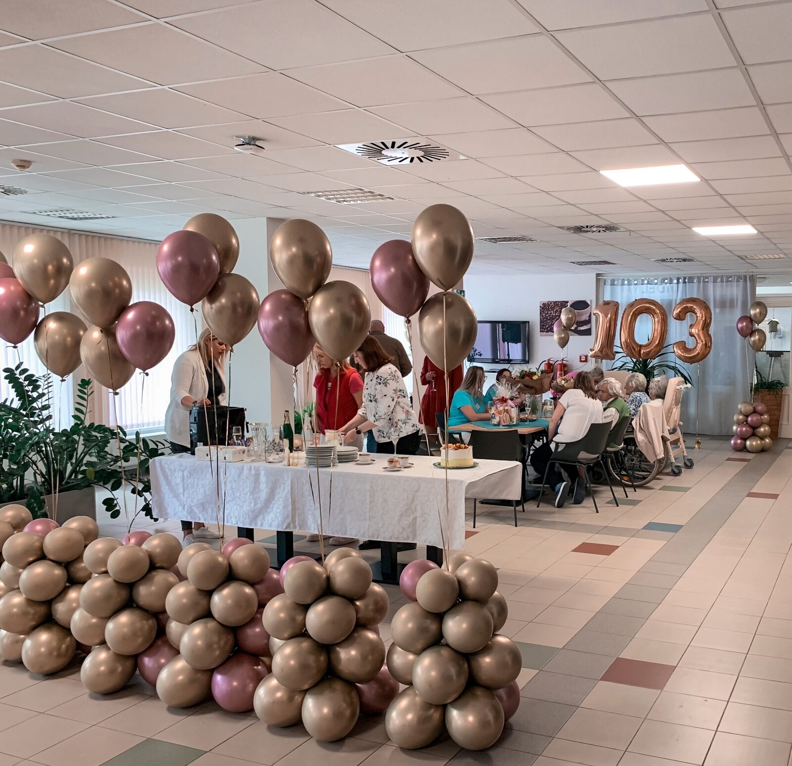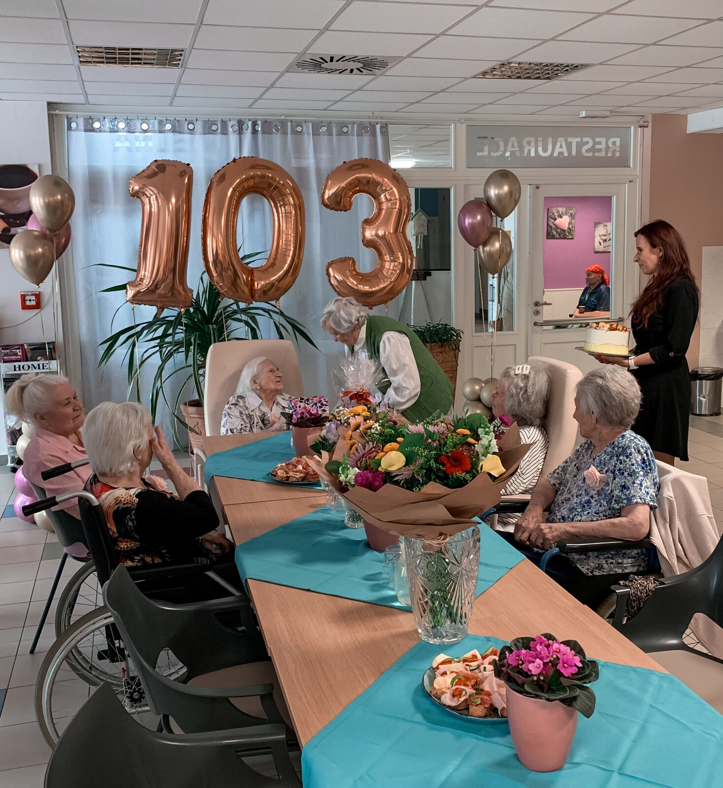 Květnové narozeniny jsme si přáli oslavit všichni společně, protože minulý měsíc se nám taková velká oslava moc líbila. Sdílená radost je přeci dvojnásobná radost. Bohužel nám ale počasí překazilo v den oslavy plány. Přesto jsme tradici oslavy na konci měsíce dodrželi. A v květnu jsme oslavili dokonce 2 krásná jubilea 103.