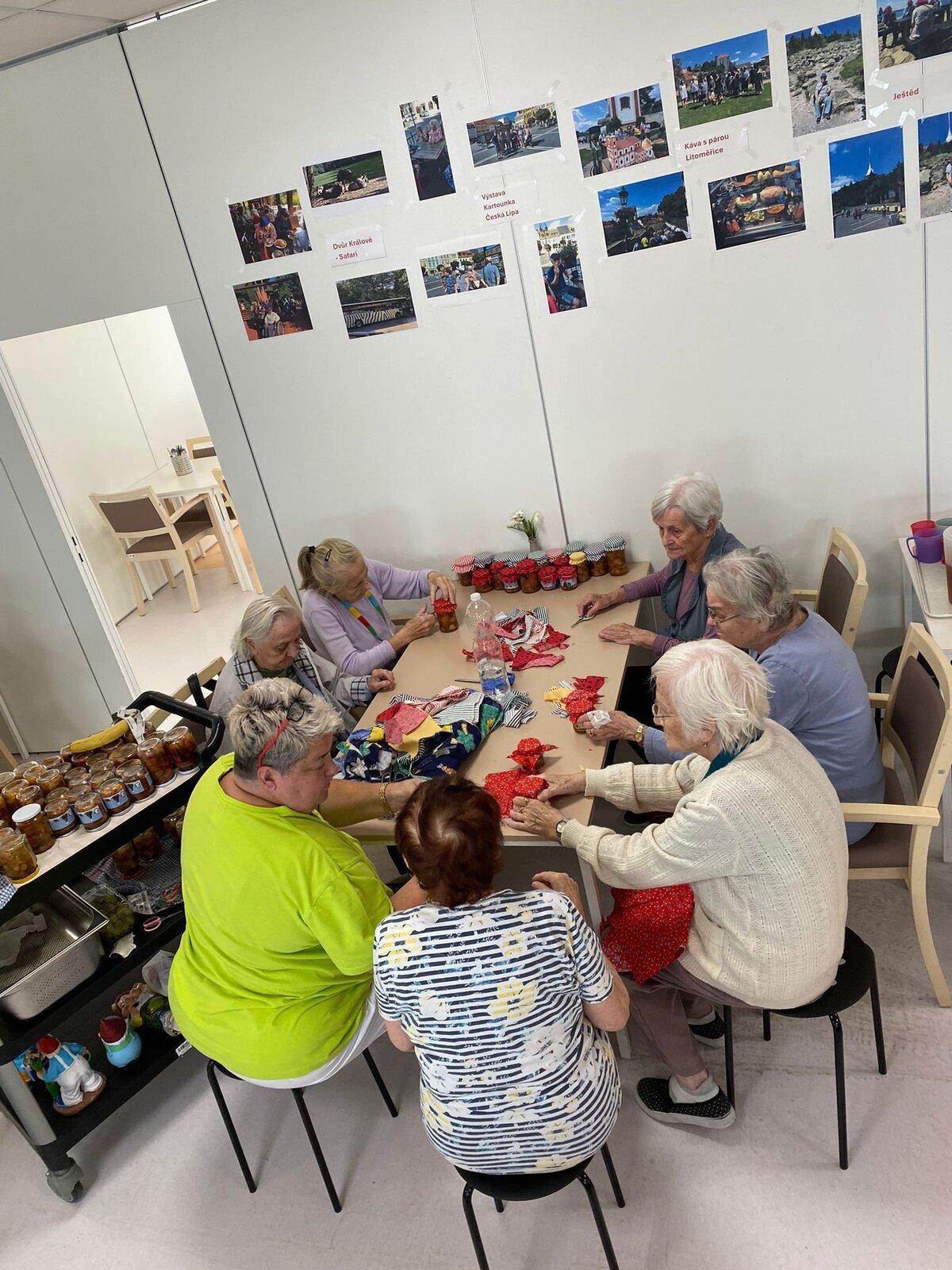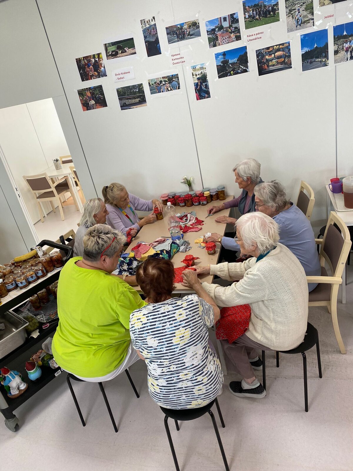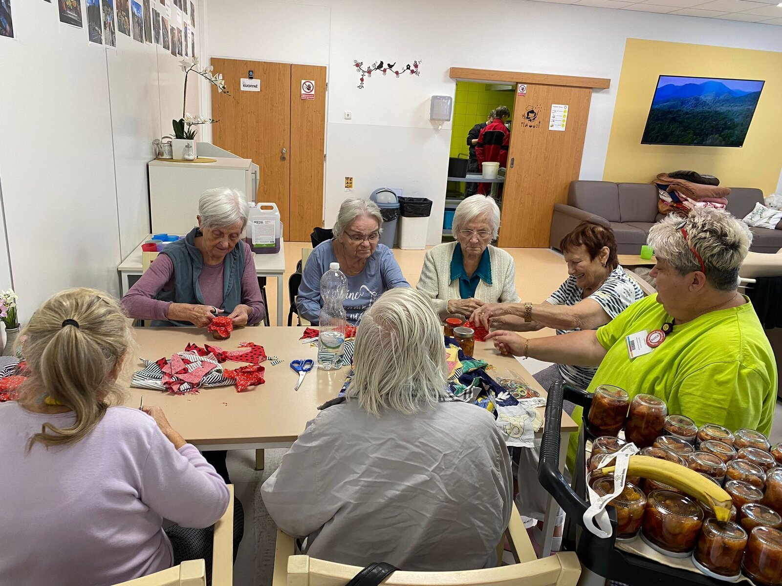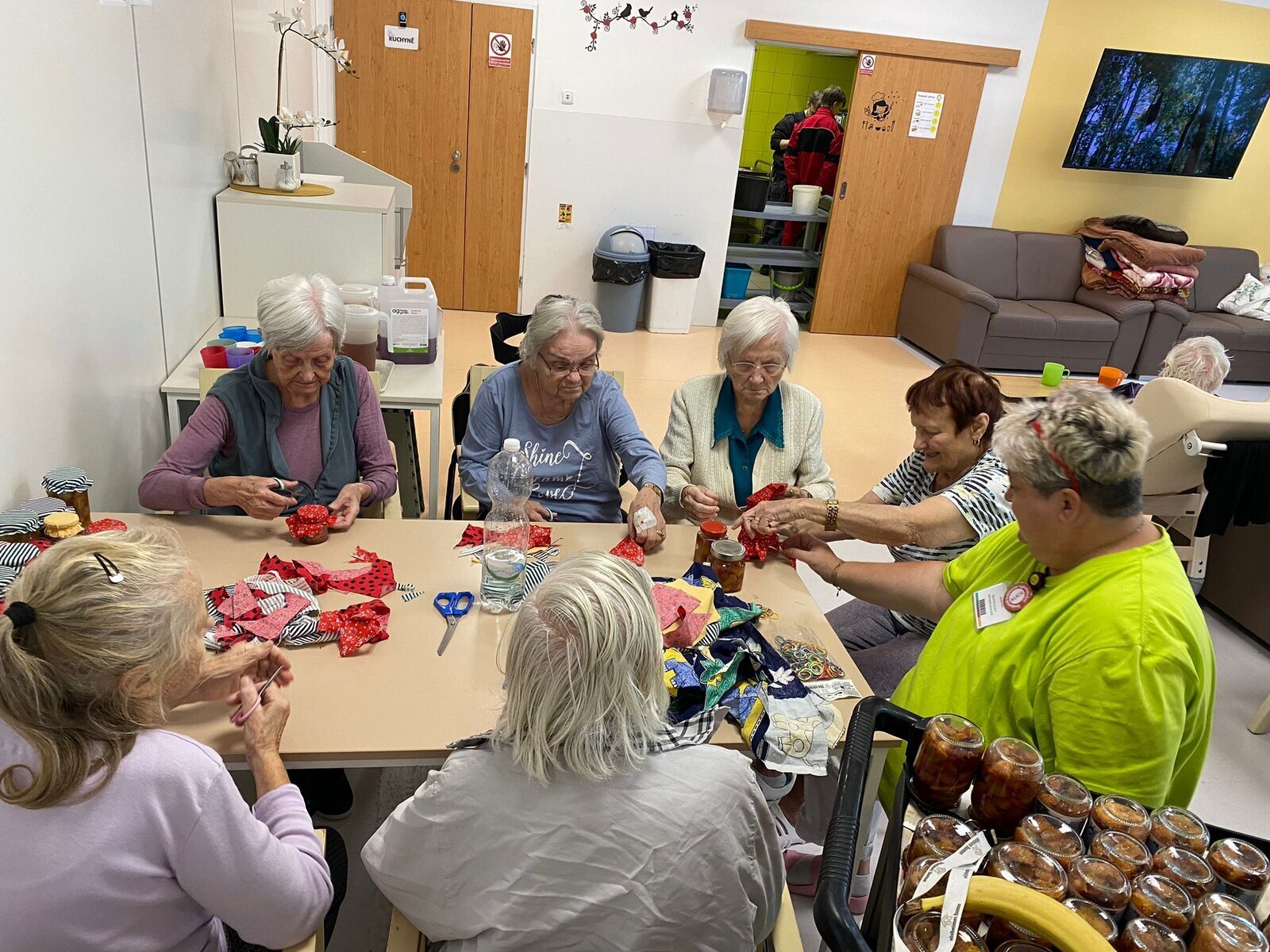Naši klienti Senevida Česká Lípa byli v tomto týdnu velmi aktivní. V pondělí je navštívila jejich čtyřnohá kamarádka Lucy, v úterý si připravovali ovoce na pečený čaj, ve středu napekli štrůdly a perníky, ve čtvrtek vytvořily dámy okrasná látková víčka na skleničky s pečeným čaje a pátek si po zásluze poslechli svoje oblíbené písničky a k tomu si dali kávu a sladkost.