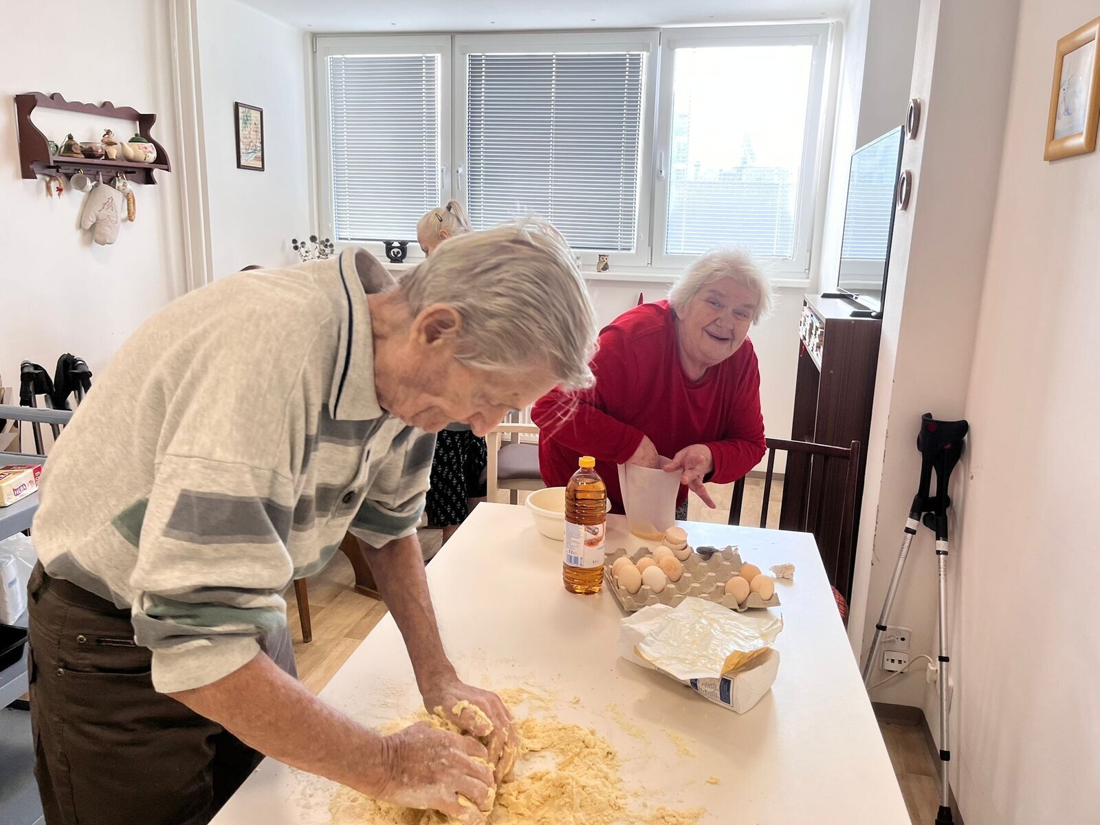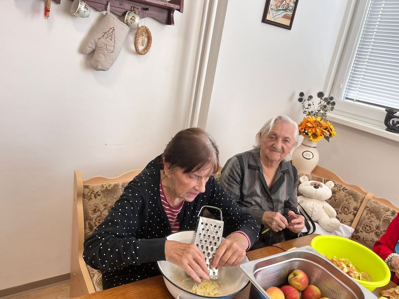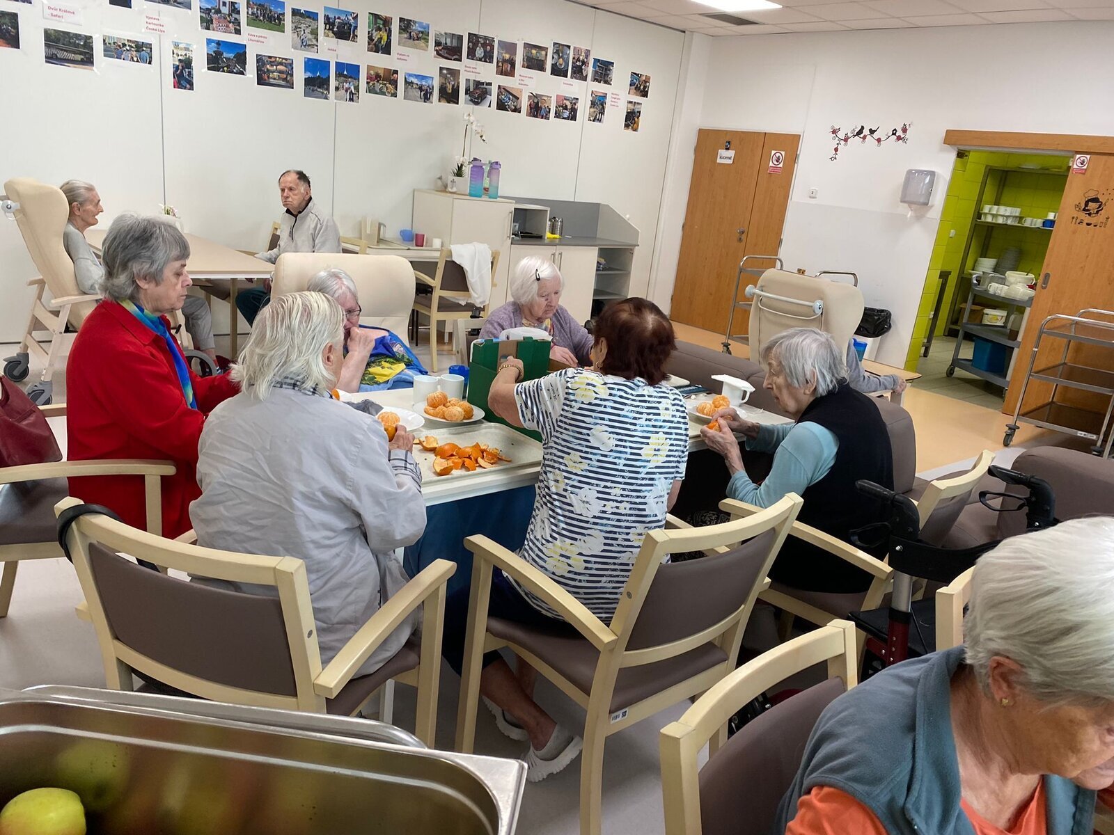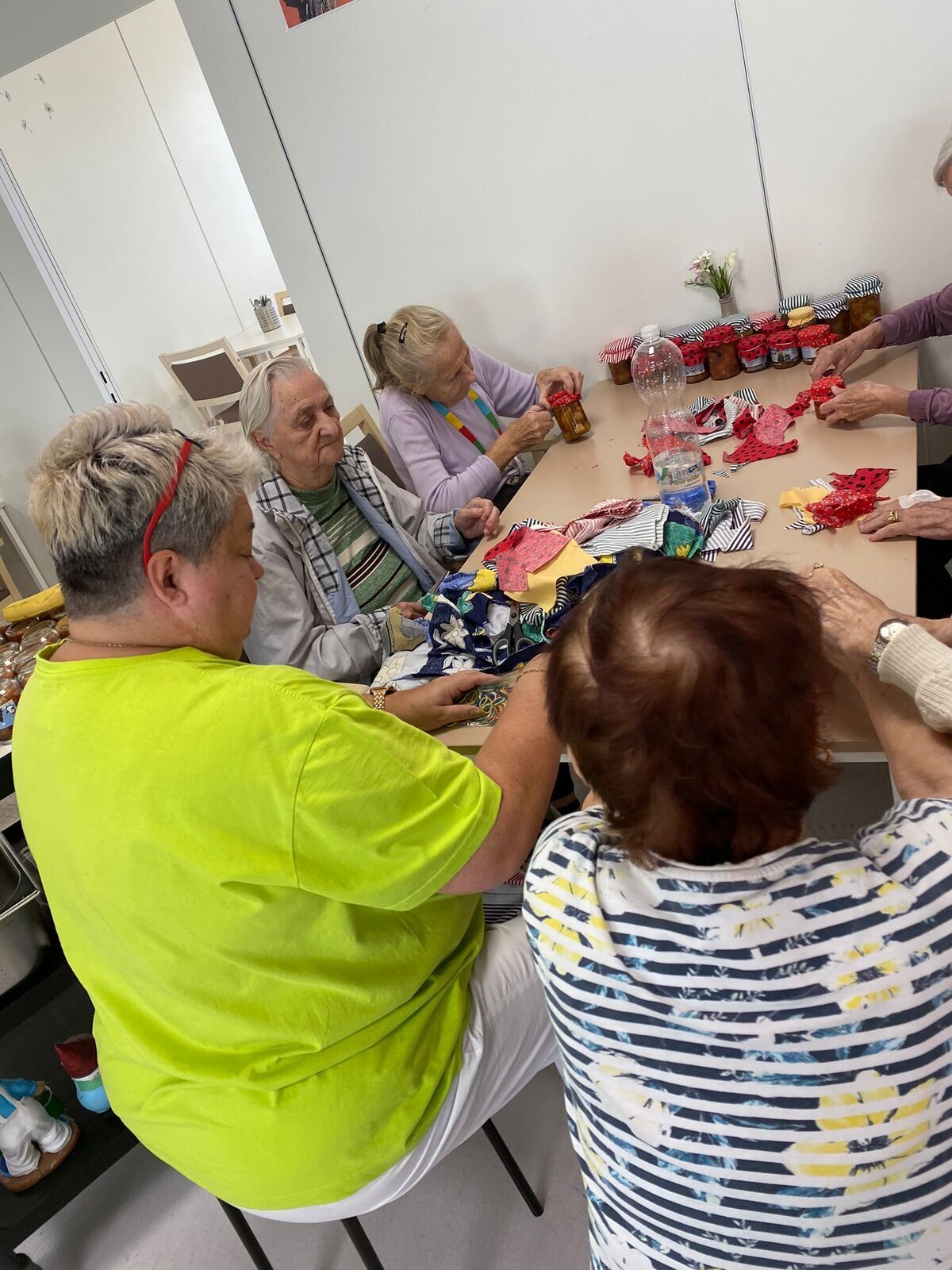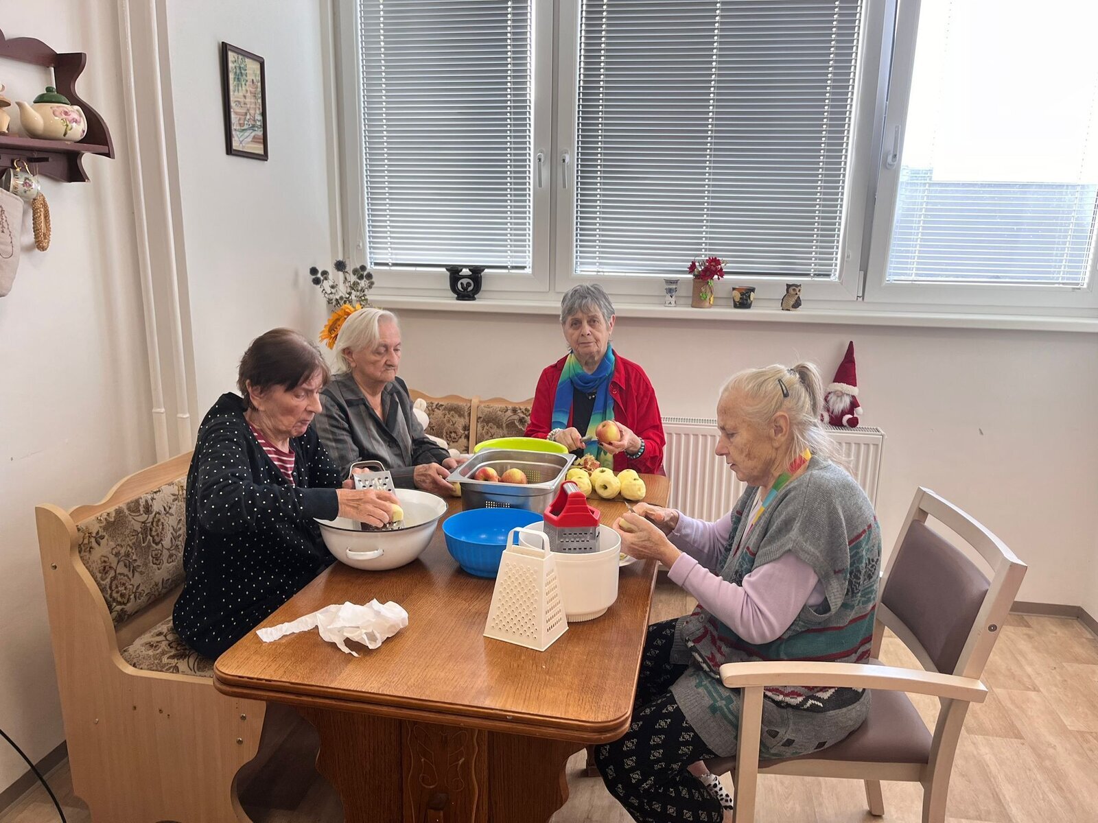 Naši klienti Senevida Česká Lípa byli v tomto týdnu velmi aktivní. V pondělí je navštívila jejich čtyřnohá kamarádka Lucy, v úterý si připravovali ovoce na pečený čaj, ve středu napekli štrůdly a perníky, ve čtvrtek vytvořily dámy okrasná látková víčka na skleničky s pečeným čaje a pátek si po zásluze poslechli svoje oblíbené písničky a k tomu si dali kávu a sladkost.