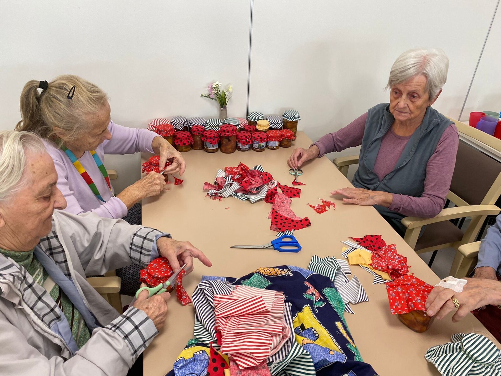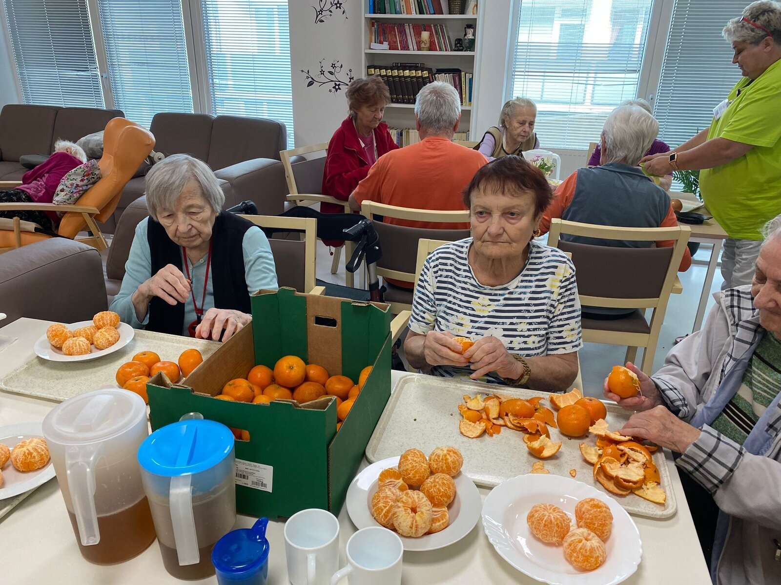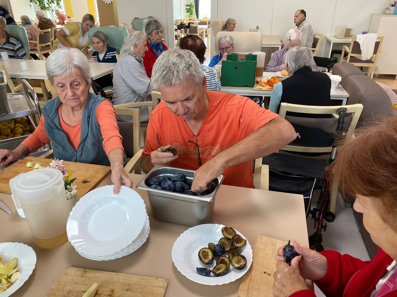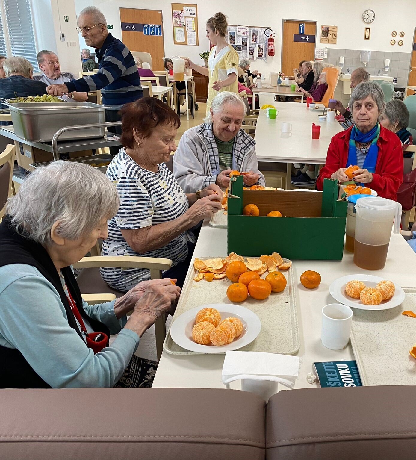 Naši klienti Senevida Česká Lípa byli v tomto týdnu velmi aktivní. V pondělí je navštívila jejich čtyřnohá kamarádka Lucy, v úterý si připravovali ovoce na pečený čaj, ve středu napekli štrůdly a perníky, ve čtvrtek vytvořily dámy okrasná látková víčka na skleničky s pečeným čaje a pátek si po zásluze poslechli svoje oblíbené písničky a k tomu si dali kávu a sladkost.
