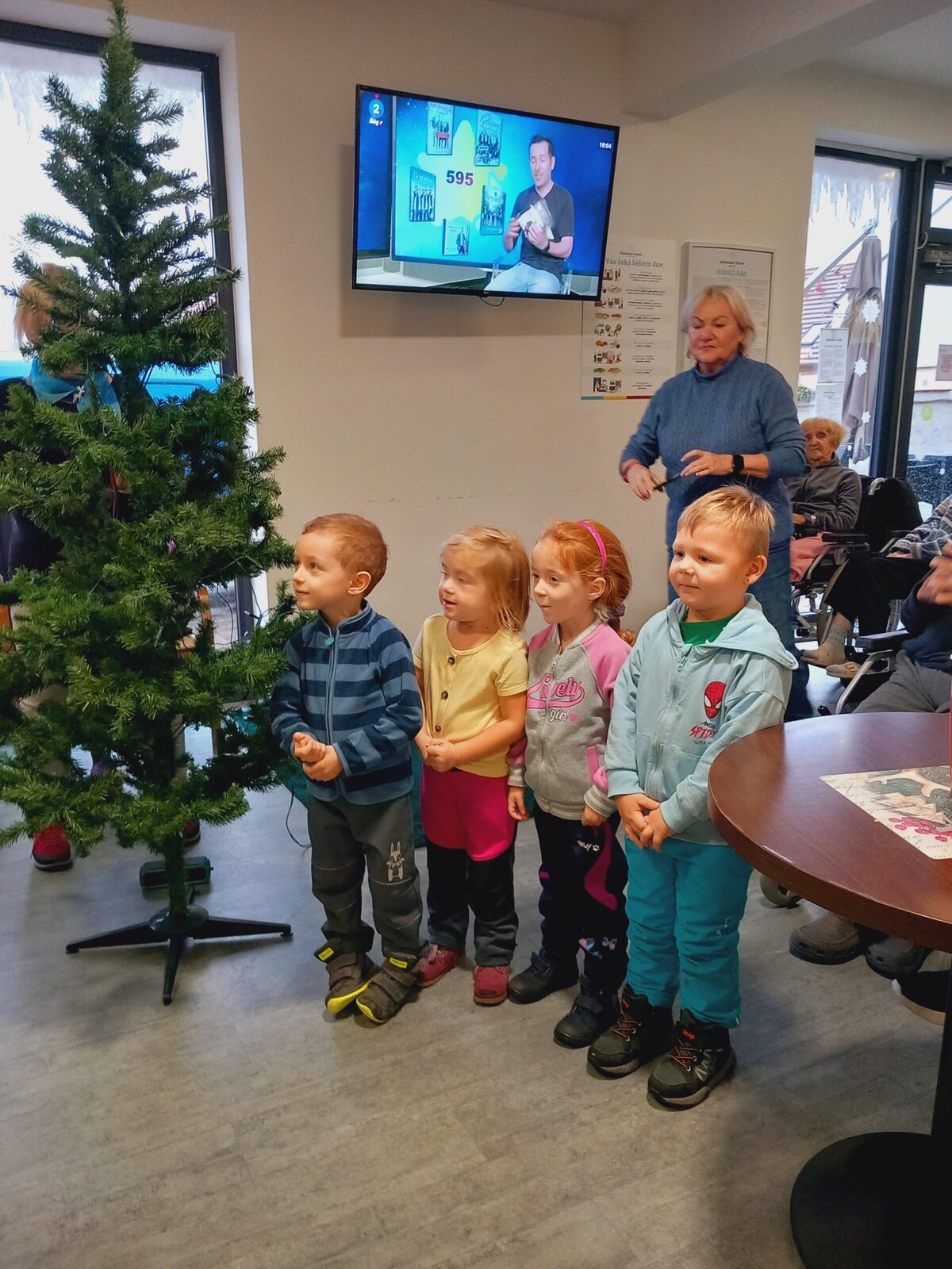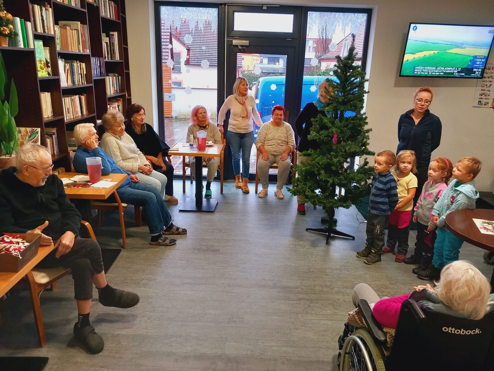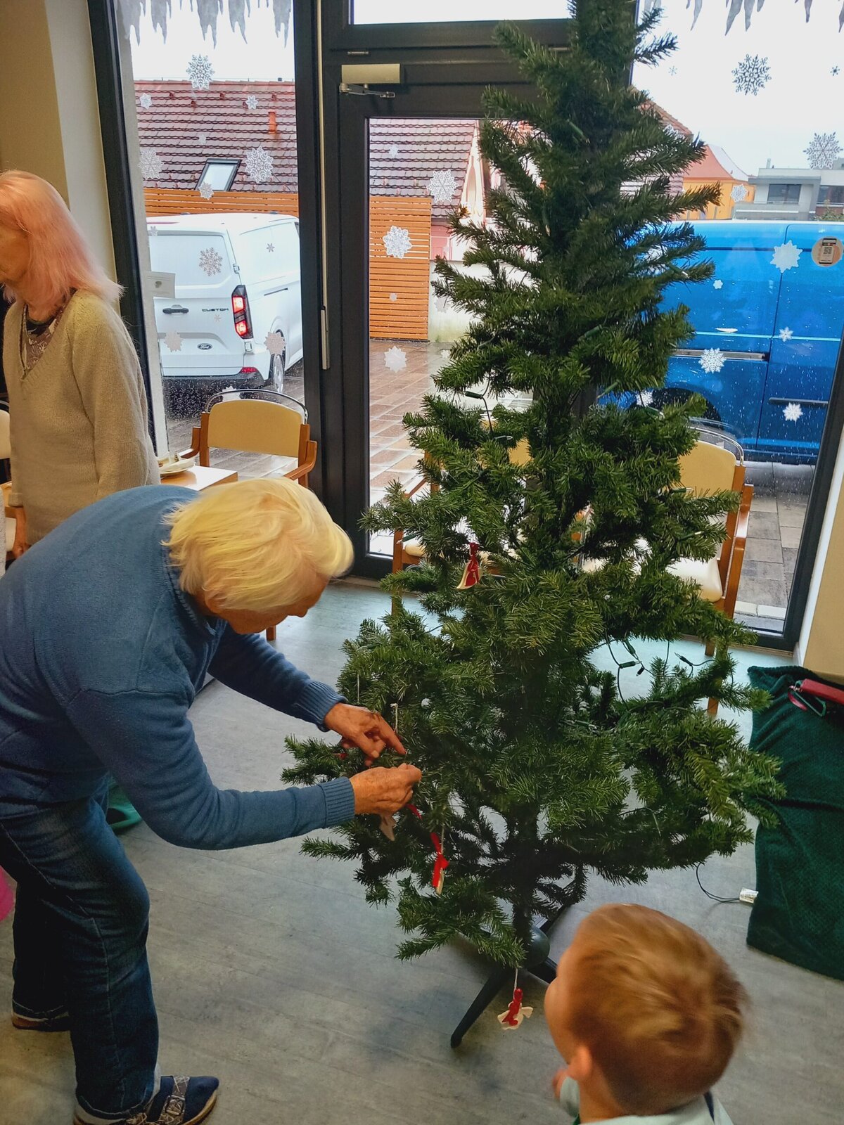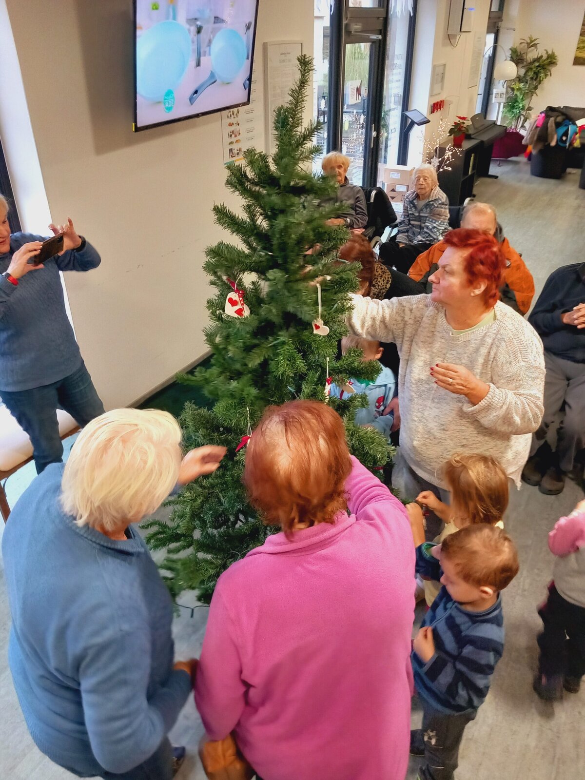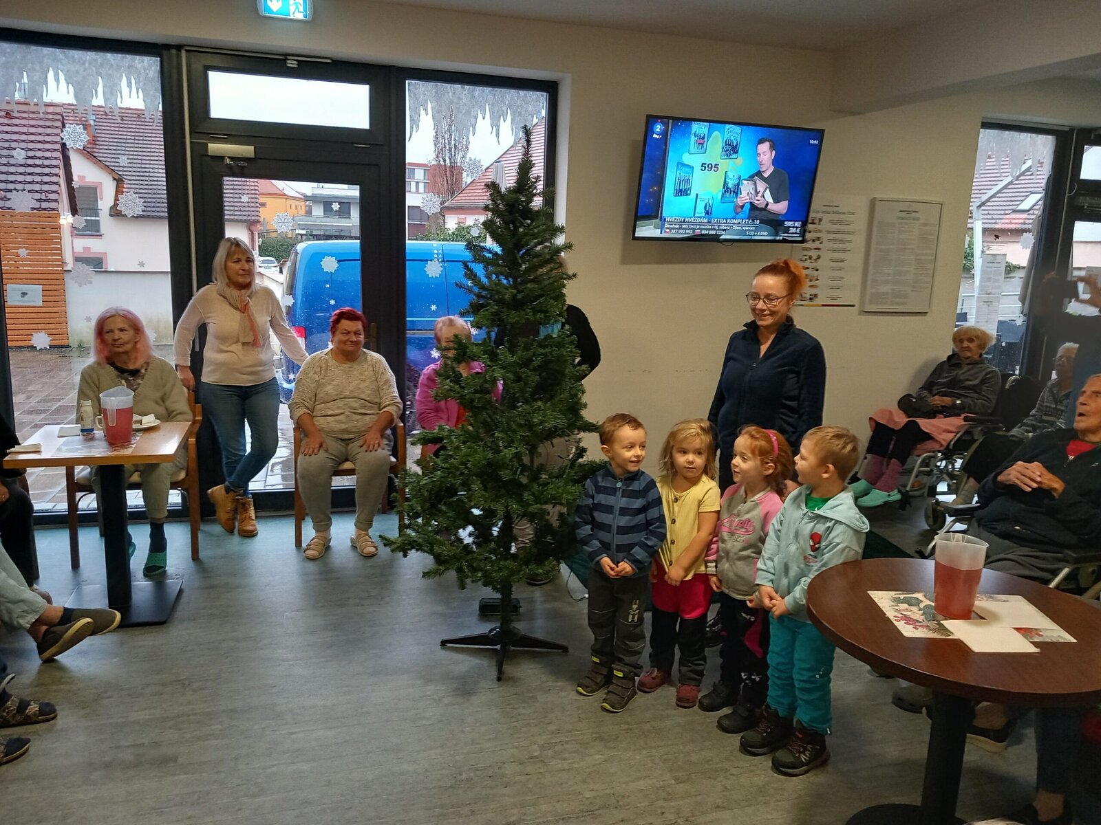 V Senevida Pitkovice nás navštívily děti z MŠ Křeslice. Byla to poslední návštěva tohoto roku. Zazpívali jsme si vánoční koledy, děti nám zarecitovaly básničky, společně jsme ozdobili vánoční stromek a vyměnili si drobné dárky. Na zdobení jsme použili bílé keramické ozdoby s červeným srdcem, vyráběné dětmi a klienty v minulých týdnech.