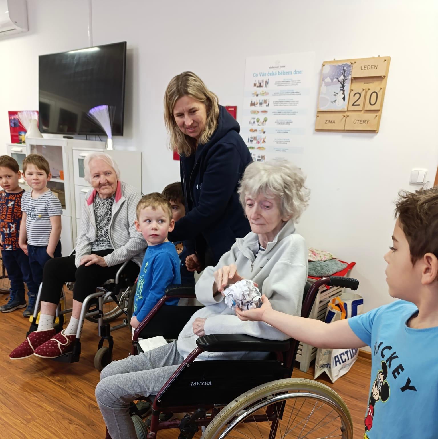 V našem domově tento týden proběhlo mezigenerační setkání s dětmi z M.Š. Fazole - Montessori. Setkání se neslo v příjemné a přátelské atmosféře. Děti se s klienty zapojily do společného povídání, her a jednoduchých aktivit, které podporovaly vzájemnou komunikaci, radost a sdílení zkušeností. Klienti reagovali velmi pozitivně, setkání jim přineslo radost, oživení vzpomínek a pocit sounáležitosti. Akce splnila svůj účel - propojit generace a vytvořit prostor pro smysluplné setkání.