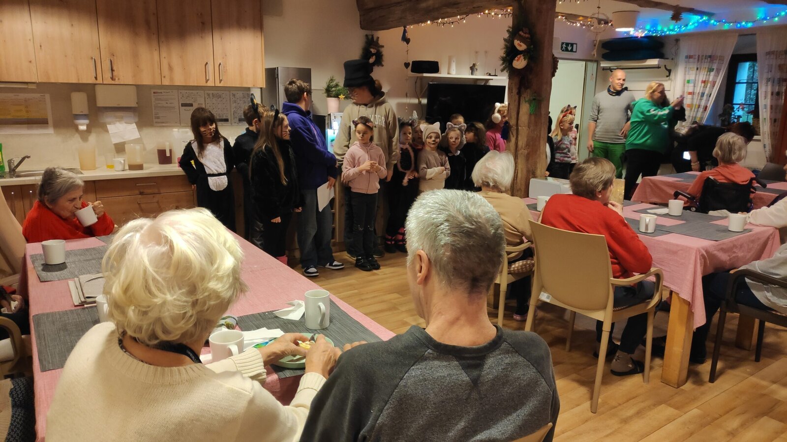 Děti ze ZŠ Pyšely nás přišly poctít návštěvou a divadelním představením s názvem „Pyšelské kočky“. Klientům přinesly spousty dárečků, které všem udělaly velkou radost. Na harmoniku nám zahrál samotný pan zástupce ředitelky základní školy, Mgr. Martin Mauer.
