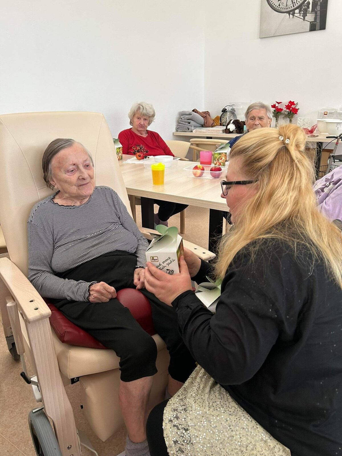 Tentokrát nás navštívili vzácní hosté z Domova sv. Linharta v Chelčicích, kteří s našimi klienty vytvářeli vánoční dekorace a zazpívali si s námi vánoční koledy. Děkujeme!![]()