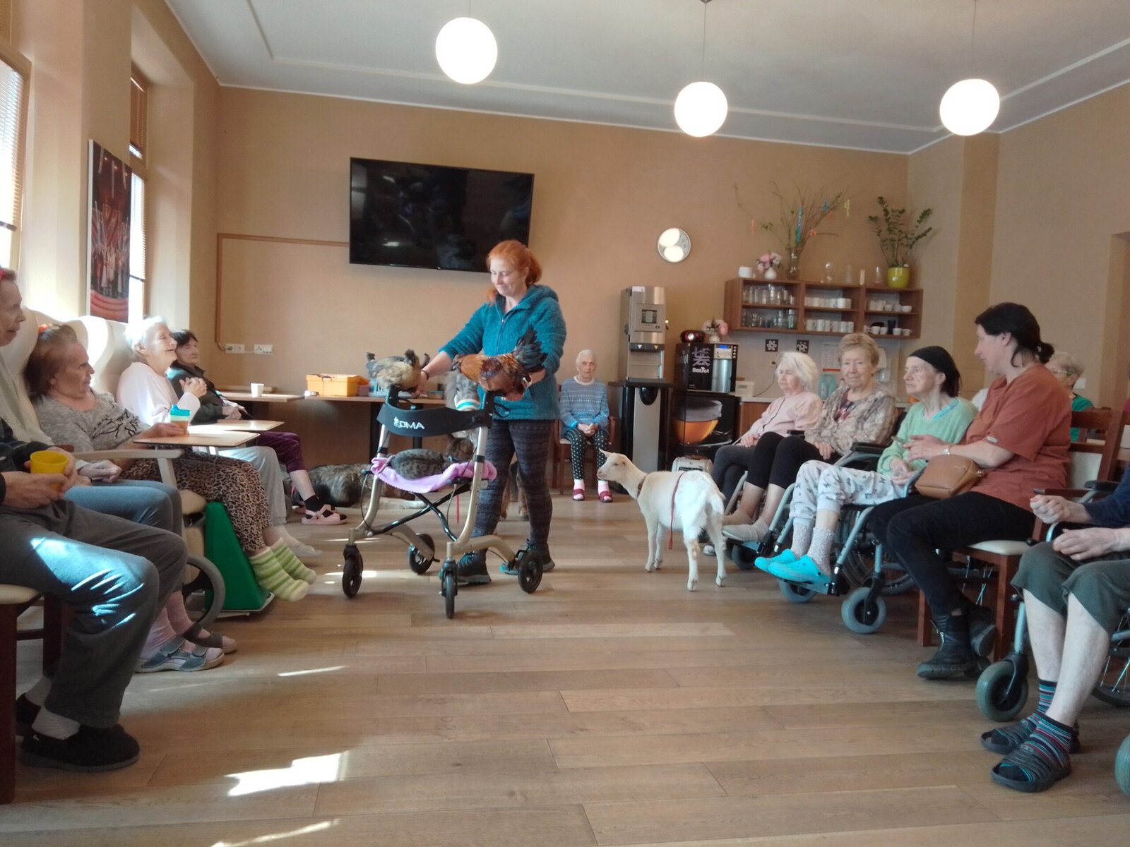 V Senevida Sluštice návštěvu zvířat milujeme. Po delší pauze nás navštívila paní Bukričová se svými hospodářskými zvířaty. Původně se měla akce konat venku, ale bohužel počasí nám nepřálo. Přesto se setkání vydařilo a bylo o to zajímavější. 😀🐕🐇🐴🐐
