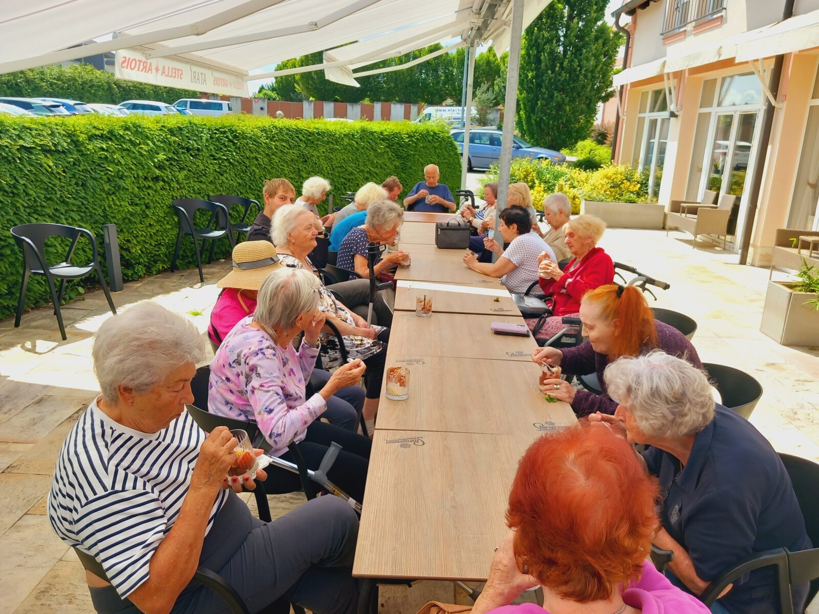 V Senevida Pitkovice jsme si udělali příjemné odpoledne a společně navštívili nedalekou restauraci. V příjemném prostředí jsme si pochutnali na osvěžujícím zmrzlinovém poháru, který všem vykouzlil úsměv na tváři. Společně strávený čas mimo zařízení byl pro nás všechny milým zpestřením a příležitostí k odpočinku i sdílení radosti.