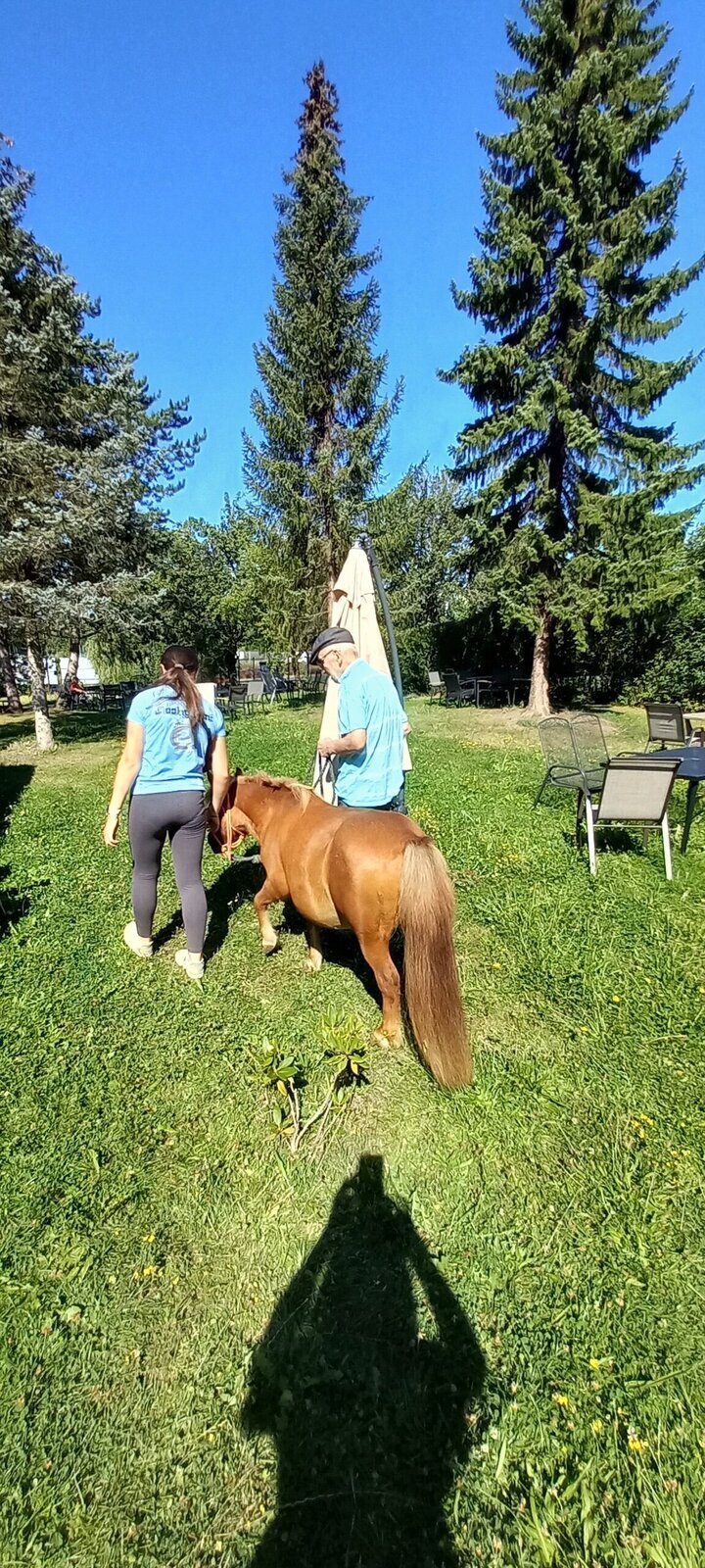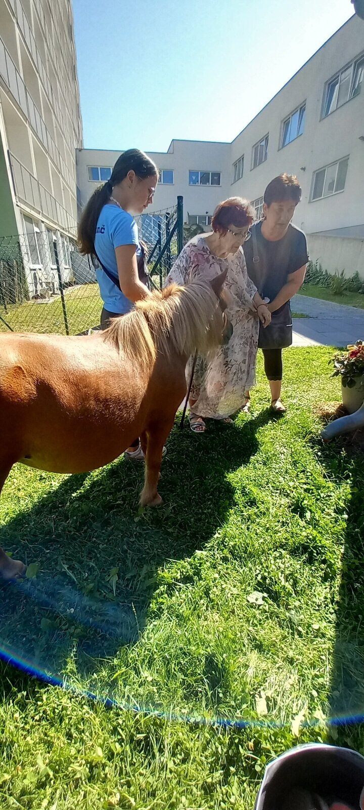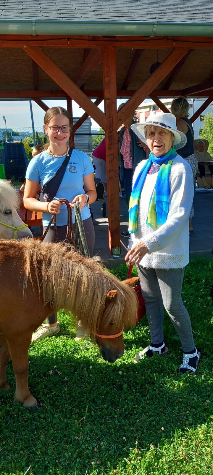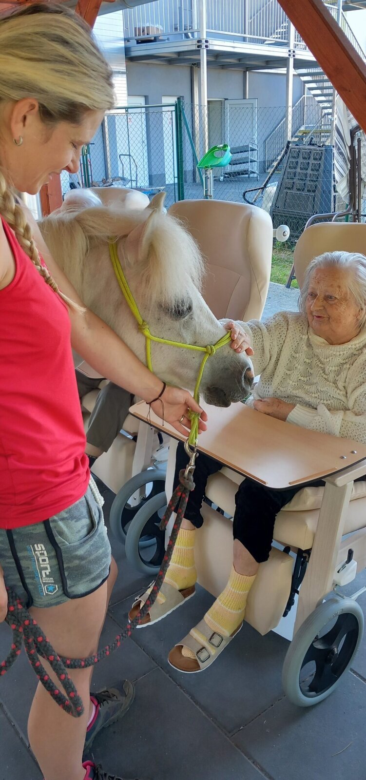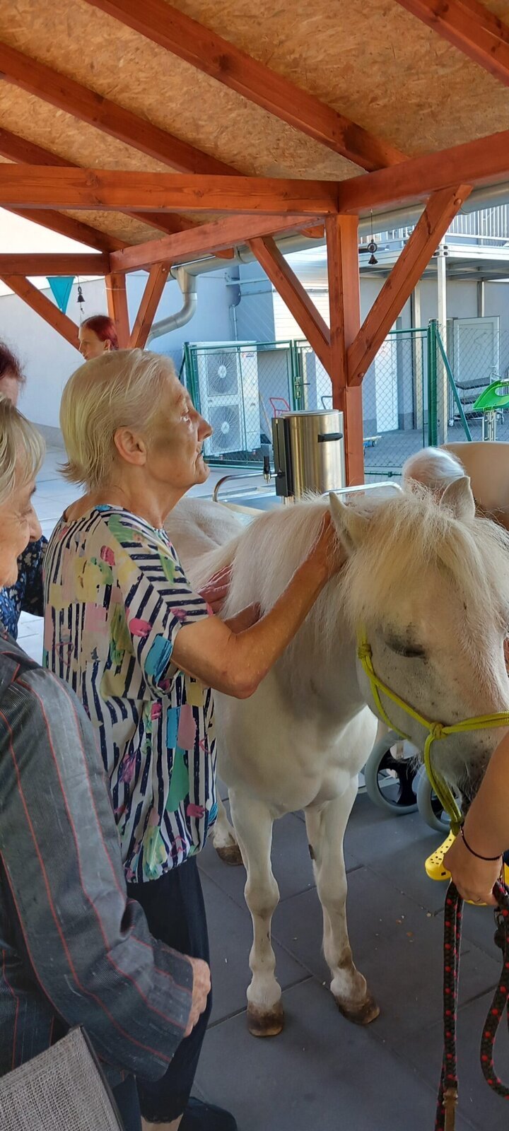 V dnešním horkém dni nám přijeli udělat radost poníci paní majitelky z Českého ranče ze Zákup. Nadšení našich klientů bylo velké. Koníky si mohli pohladit, ale také vyhřebelcovat a nebo se s nimi i projít.