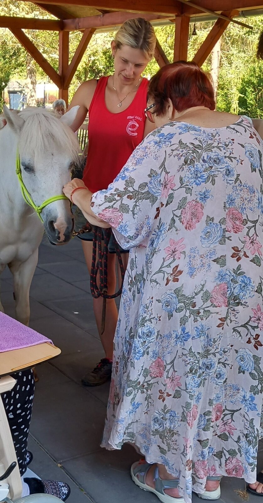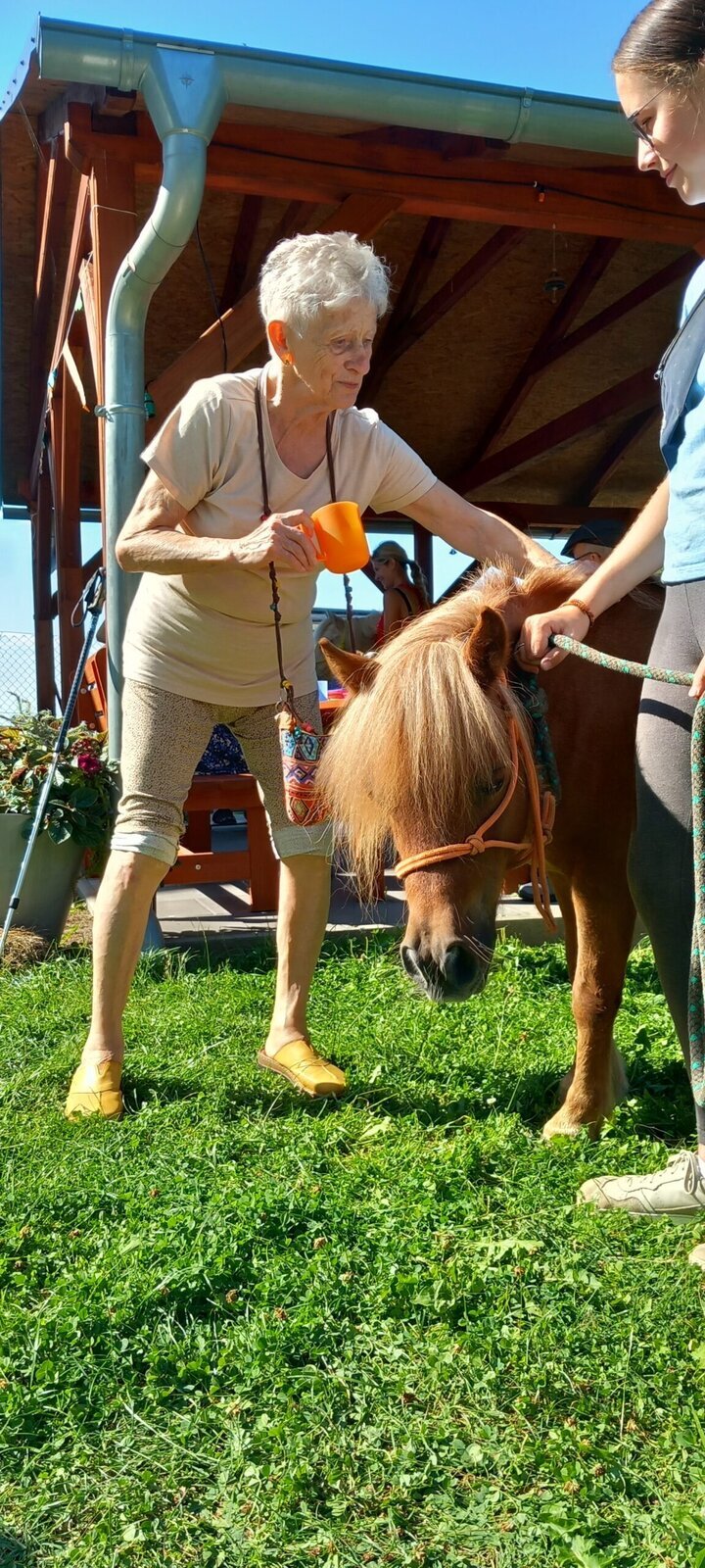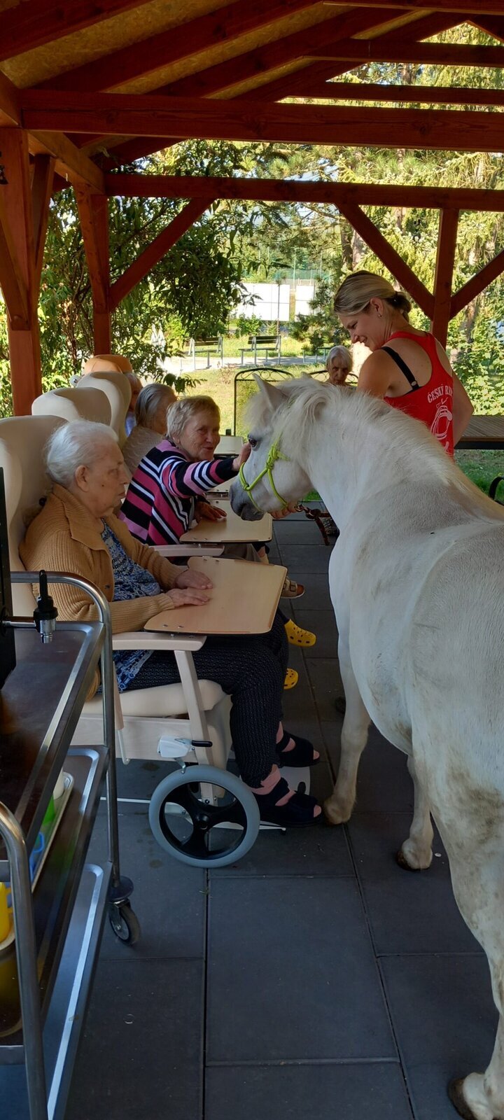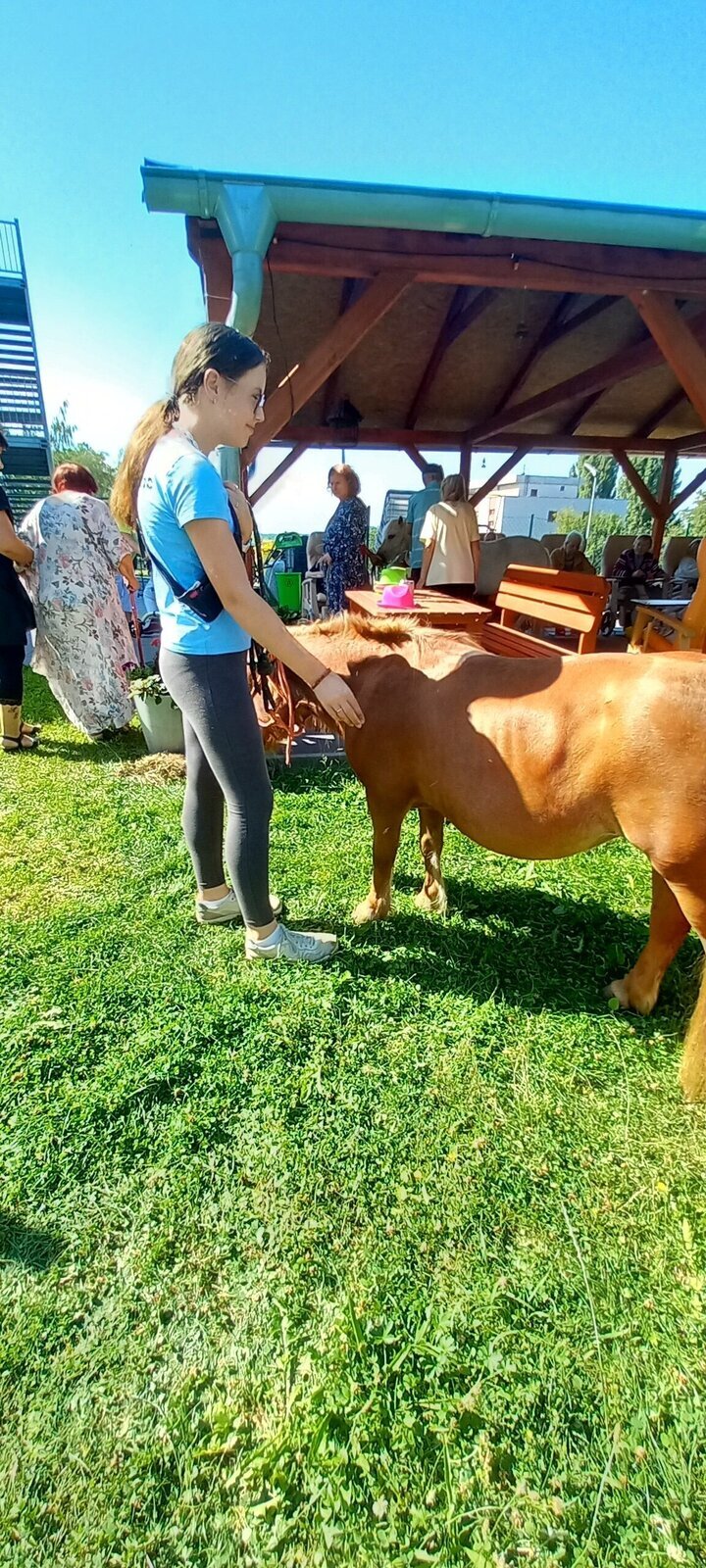 V dnešním horkém dni nám přijeli udělat radost poníci paní majitelky z Českého ranče ze Zákup. Nadšení našich klientů bylo velké. Koníky si mohli pohladit, ale také vyhřebelcovat a nebo se s nimi i projít.