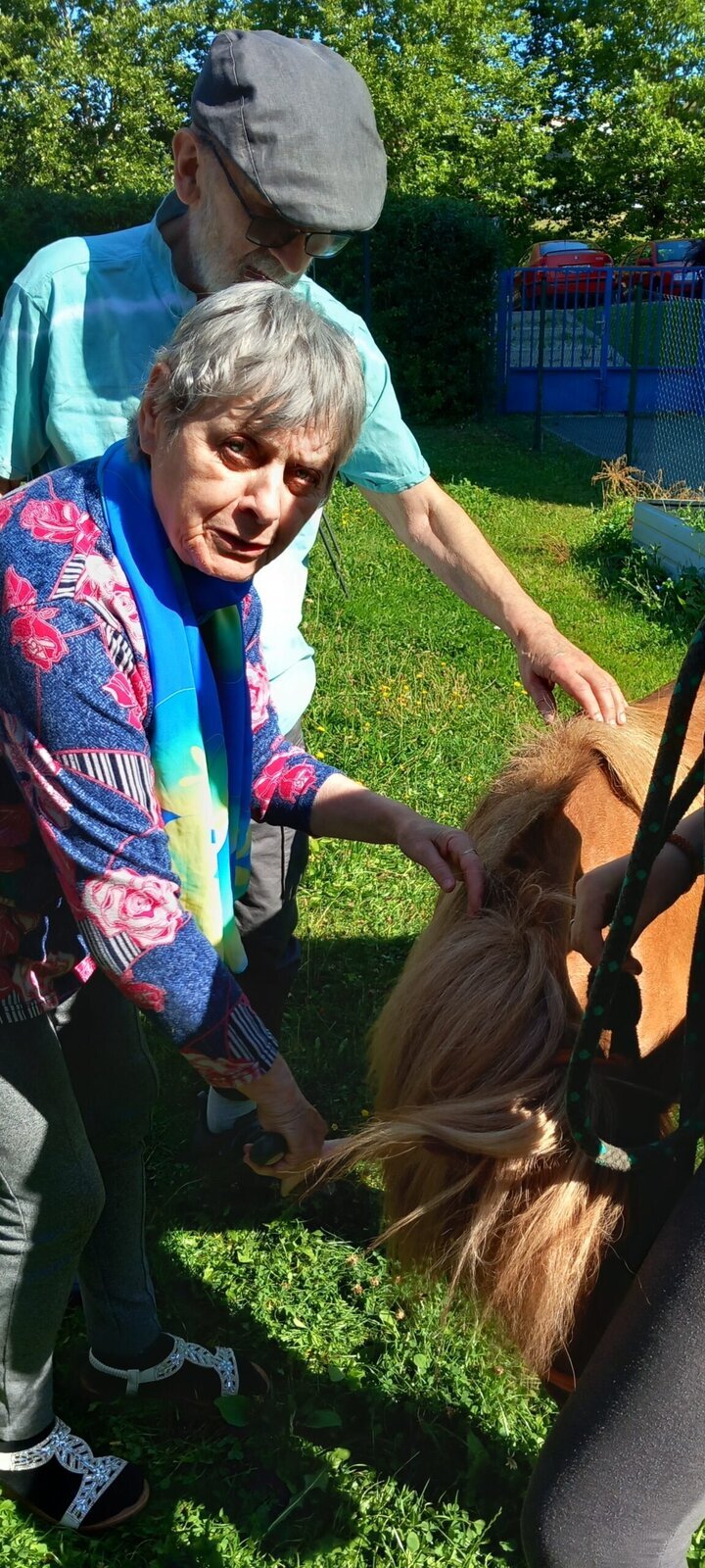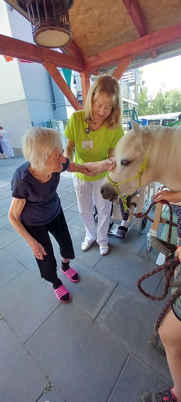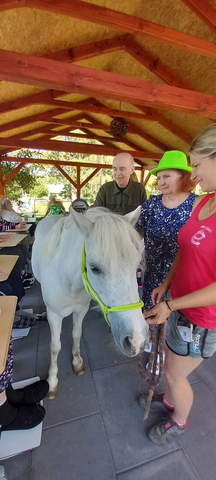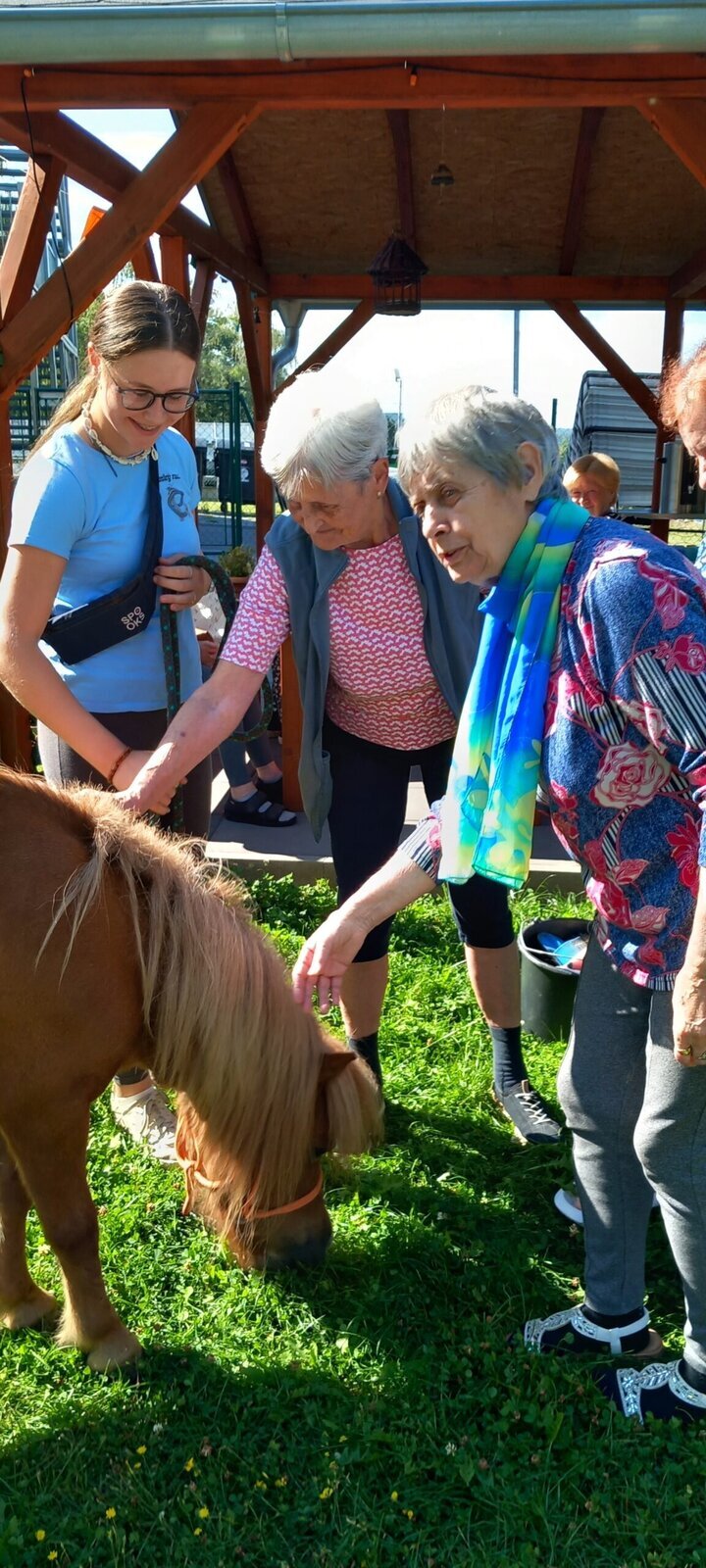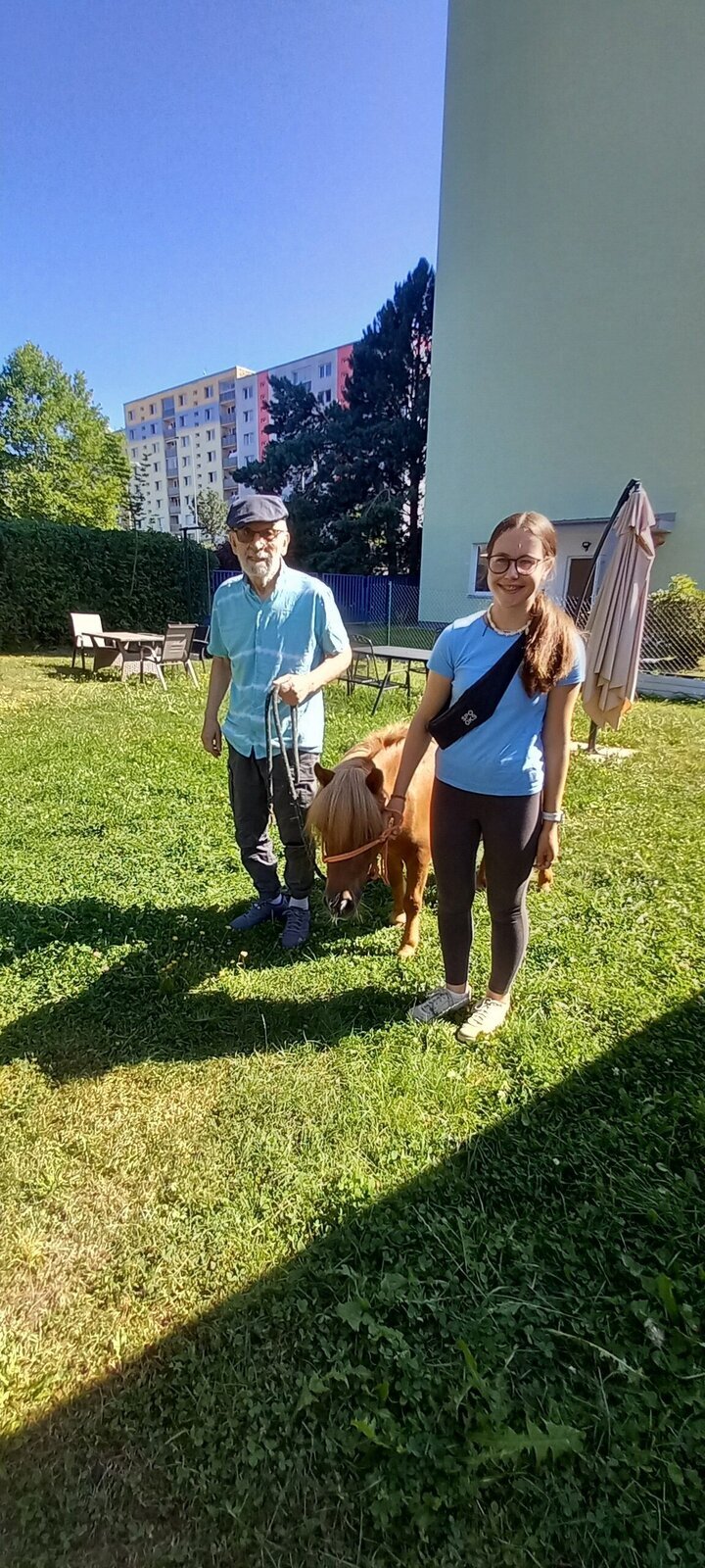 V dnešním horkém dni nám přijeli udělat radost poníci paní majitelky z Českého ranče ze Zákup. Nadšení našich klientů bylo velké. Koníky si mohli pohladit, ale také vyhřebelcovat a nebo se s nimi i projít.