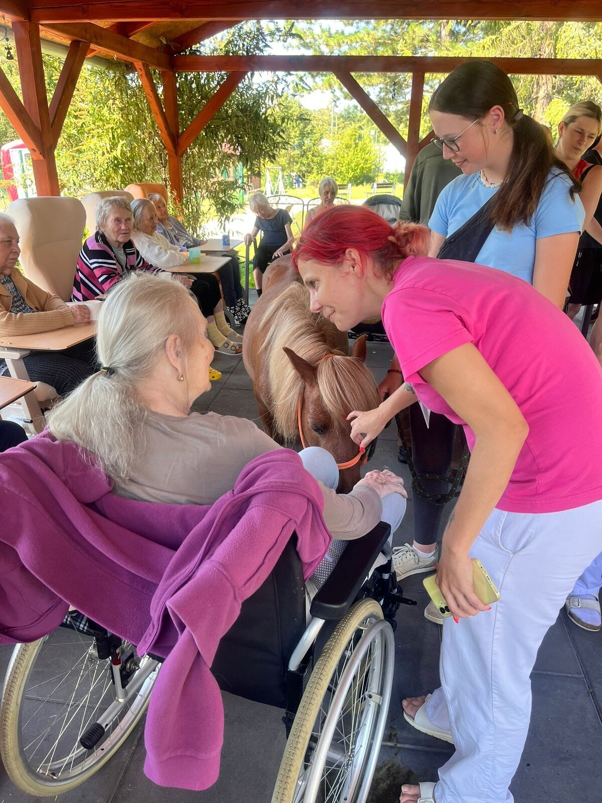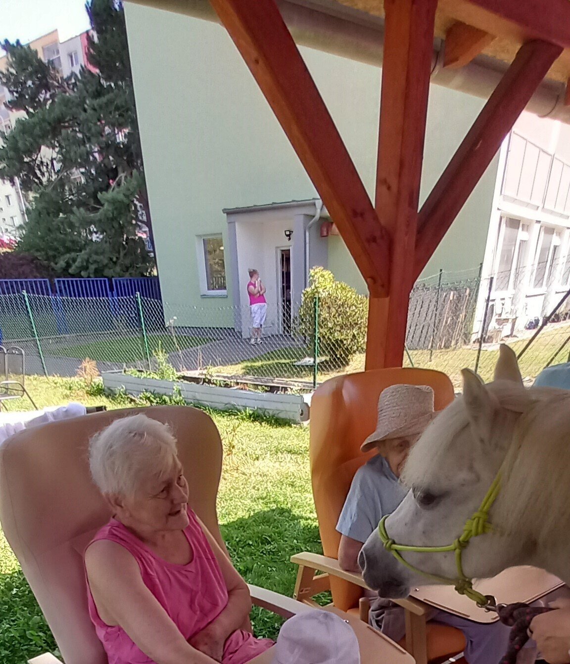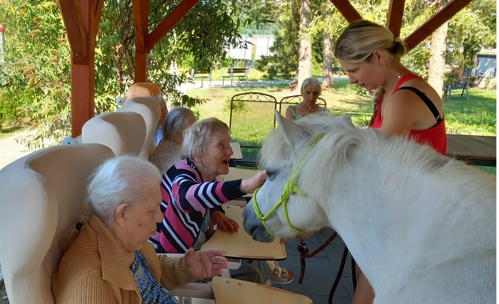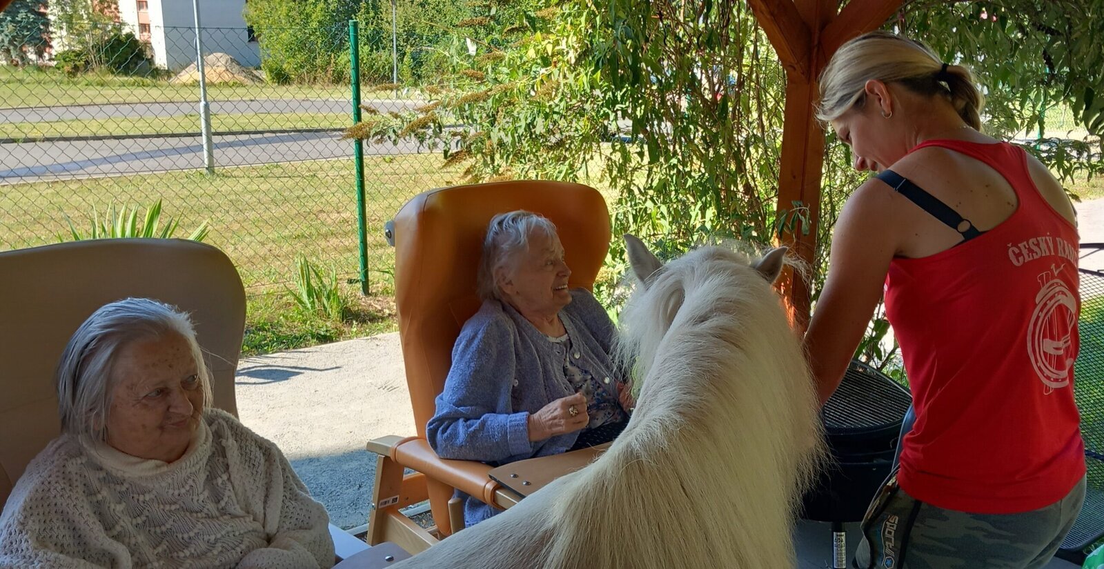 V dnešním horkém dni nám přijeli udělat radost poníci paní majitelky z Českého ranče ze Zákup. Nadšení našich klientů bylo velké. Koníky si mohli pohladit, ale také vyhřebelcovat a nebo se s nimi i projít.