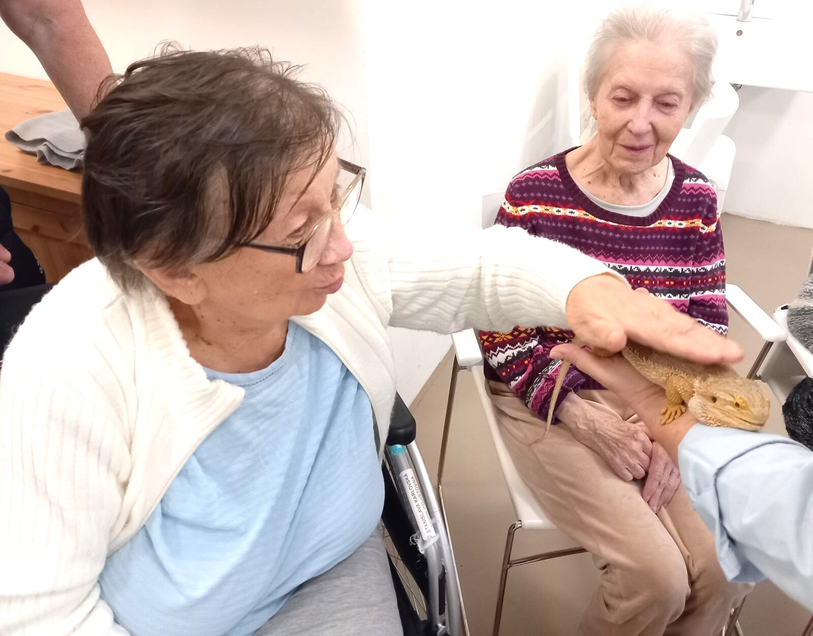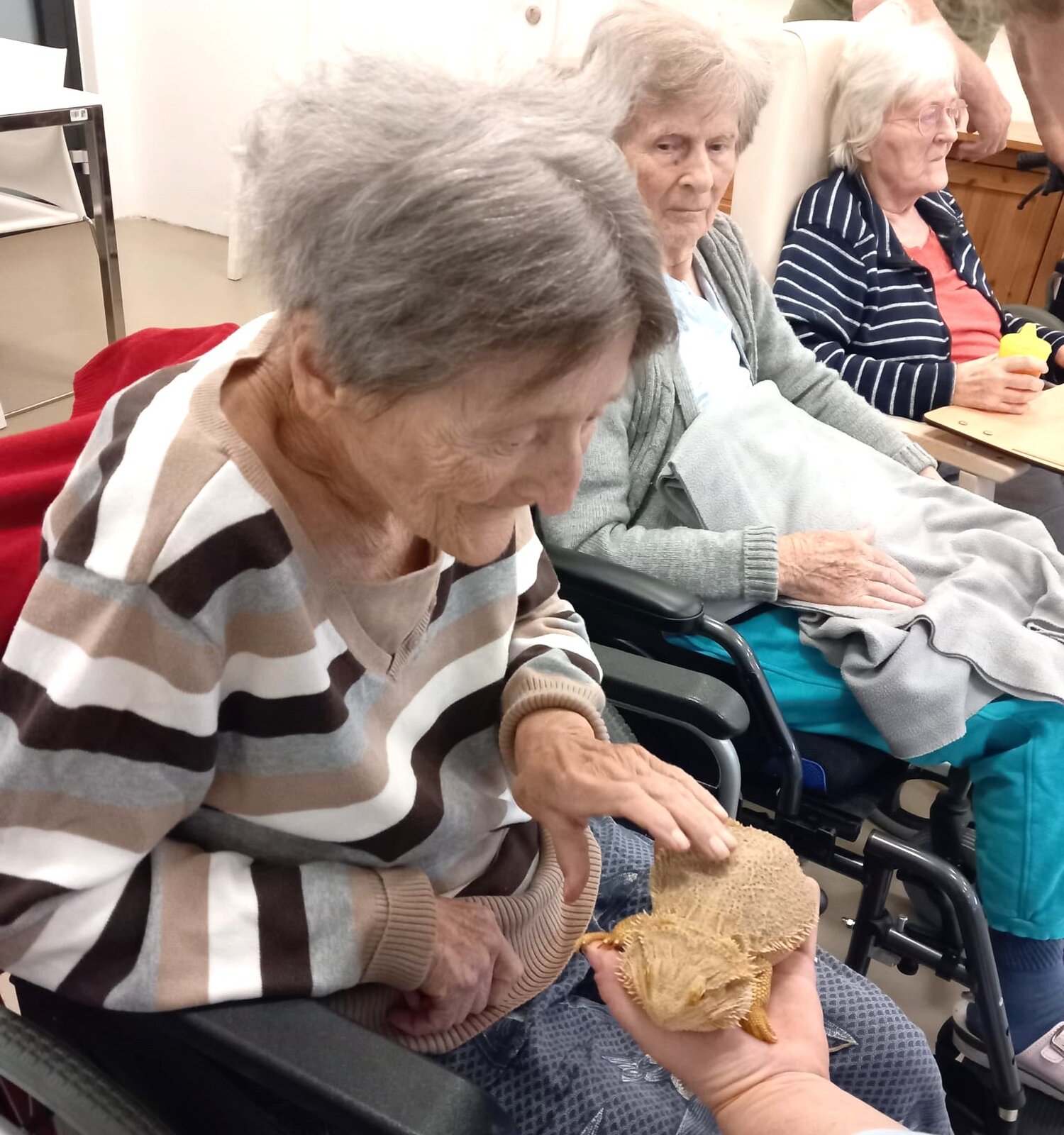 V Senevida Zátiší nás velmi potěšila návštěva paní Evy ze společnosti Therapy4U.cz, která přišla se zvířaty, jako jsou agamy, housenky, pavouci, vícenožky, cvrčci, štíři a papoušek Žako. Paní Eva nám vyprávěla, kde zvířata chová, jak je krmí a co všechno potřebují k životu. Byla to pro naše klienty nejen zajímavá, ale i poučná zkušenost, která přinesla radost i nové poznatky o různých druzích zvířat a jejich péči.