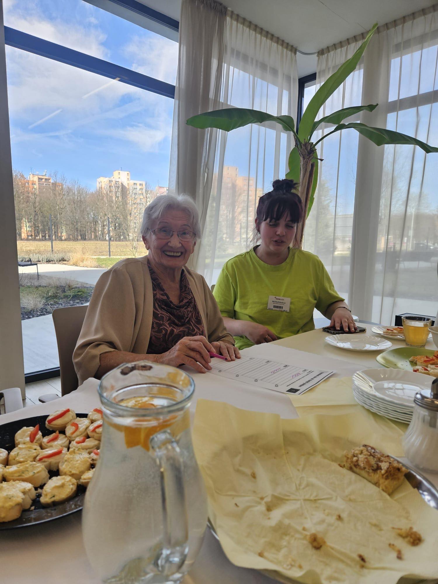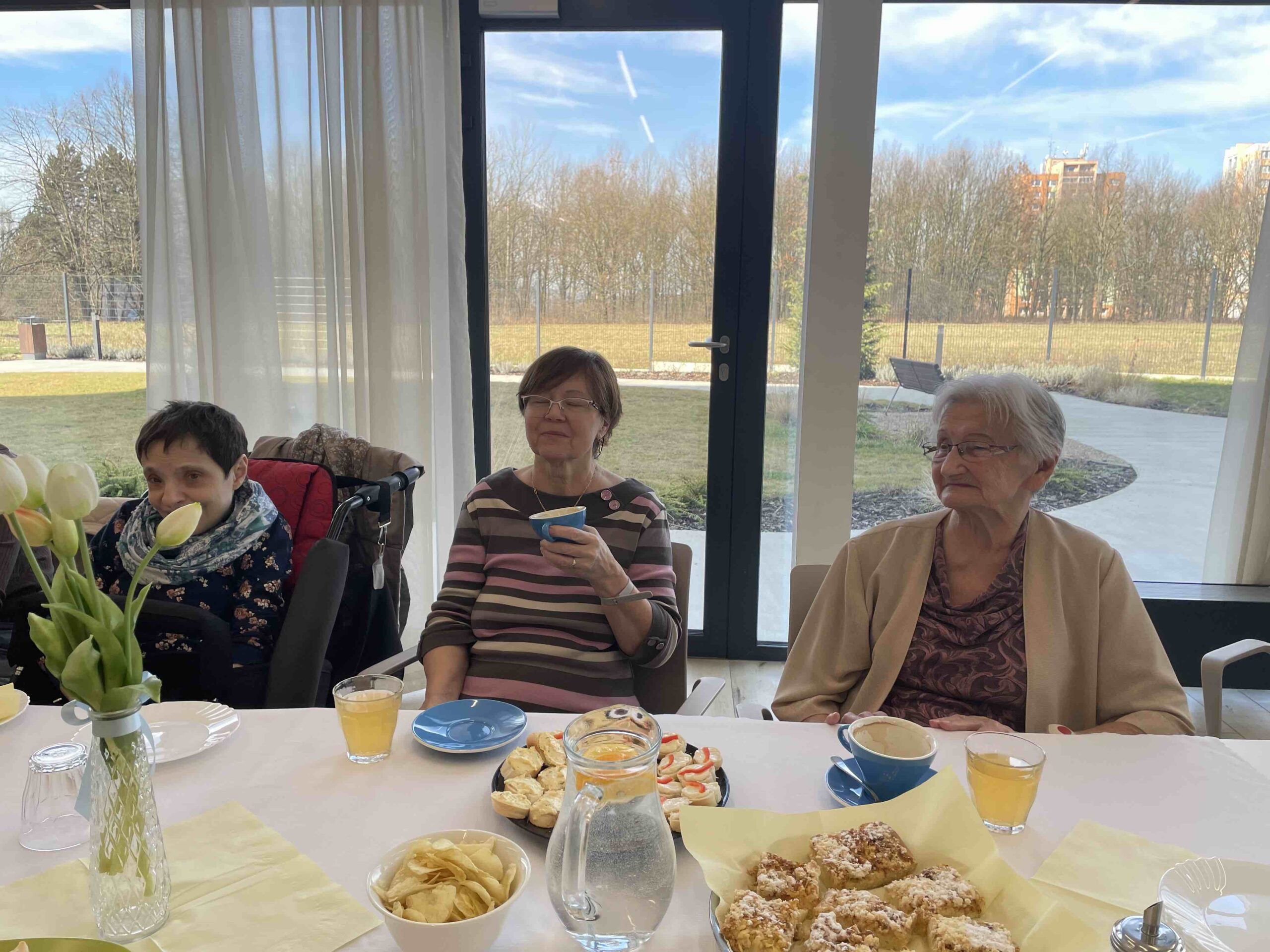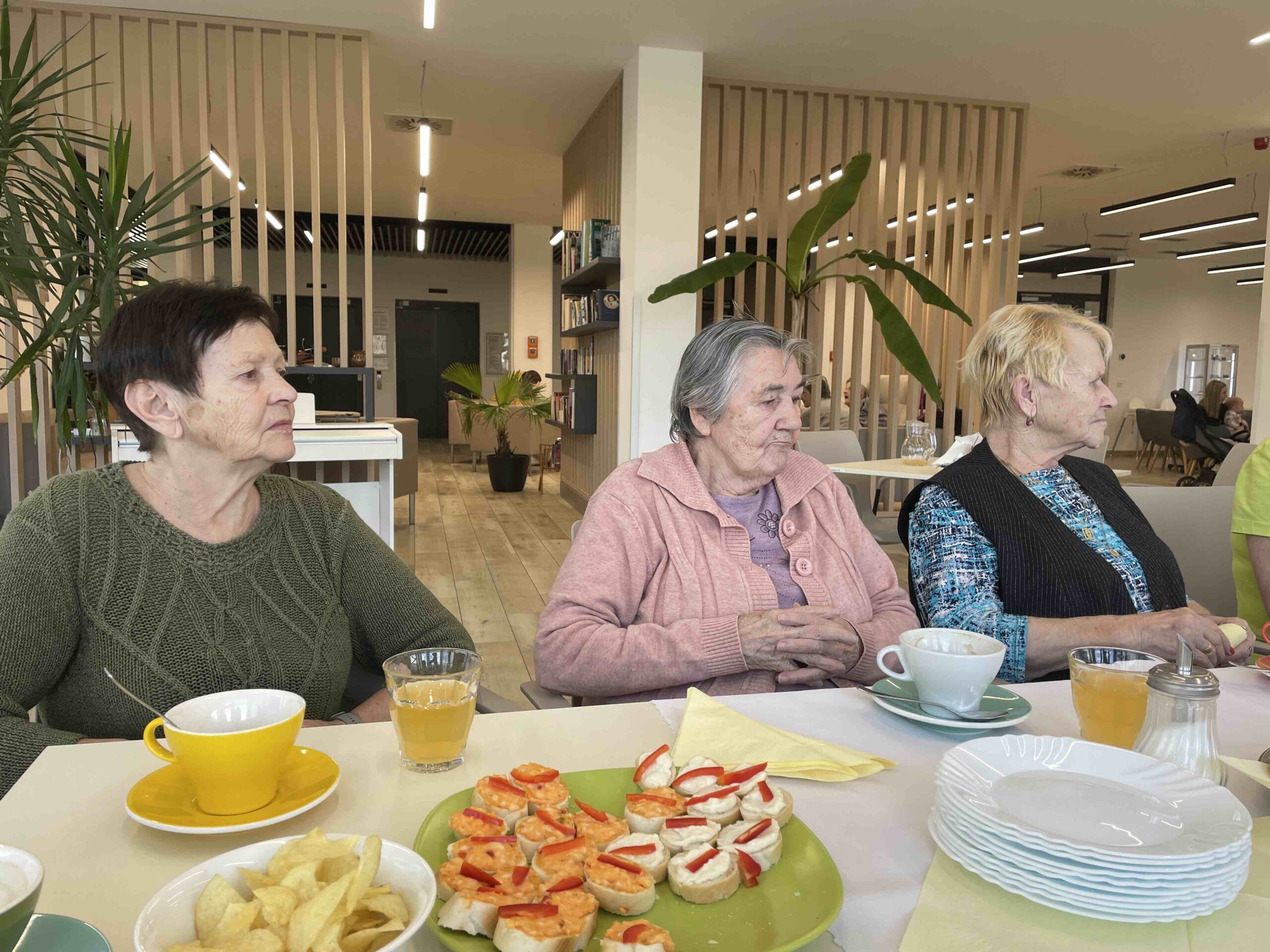 Naši senioři připravili pohoštění v podobě upečeného koláče a obložených jednohubek. Během povídání jsme si vypracovali připravené kvízy. Na závěr proběhla prohlídka našeho zařízení.