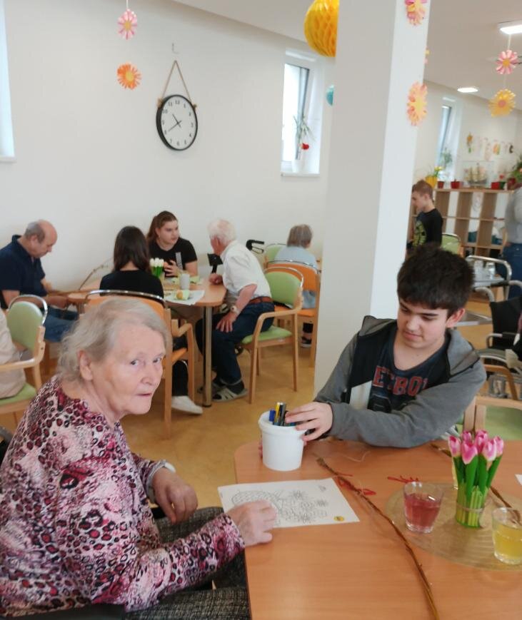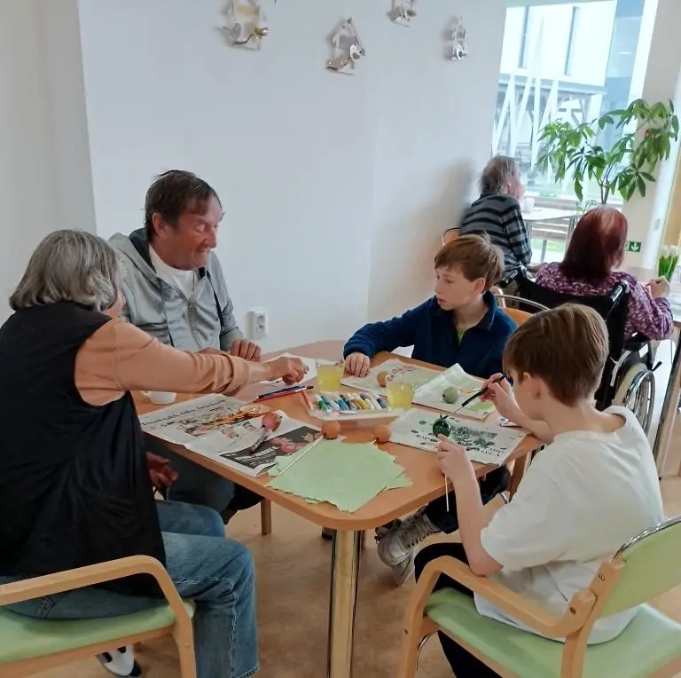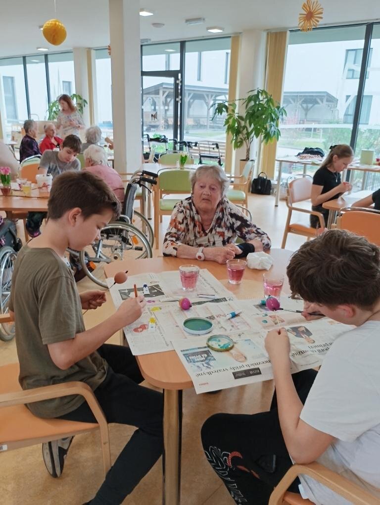Velikonoční nálada v našem Senevida Boskovice dostala další rozměr díky návštěvě žáků ze Základní školy v Boskovicích. Společně s našimi klienty se pustili do velikonočního tvoření – malovala se vajíčka, pletly pomlázky, malovaly velikonoční obrázky a hlavně se hodně povídalo a smálo. Děti i senioři si během setkání předávali nejen tvořivé nápady, ale i vzpomínky na tyto velikonoční svátky.