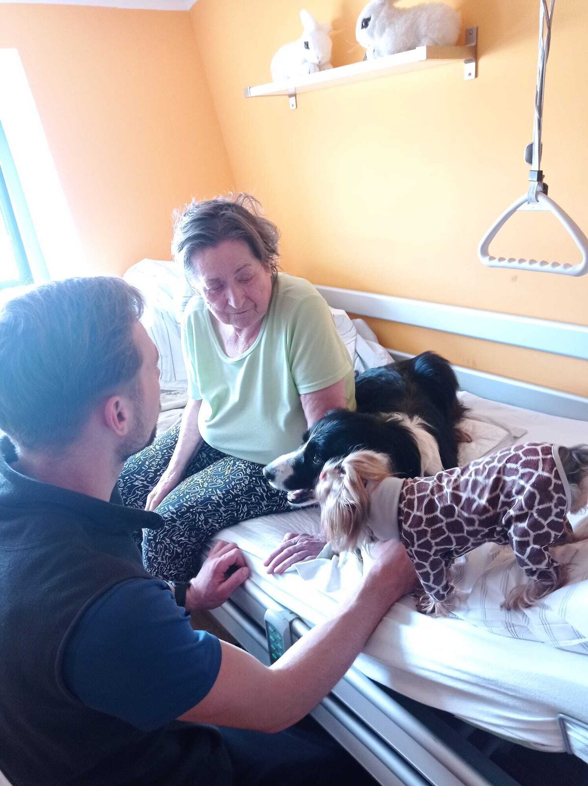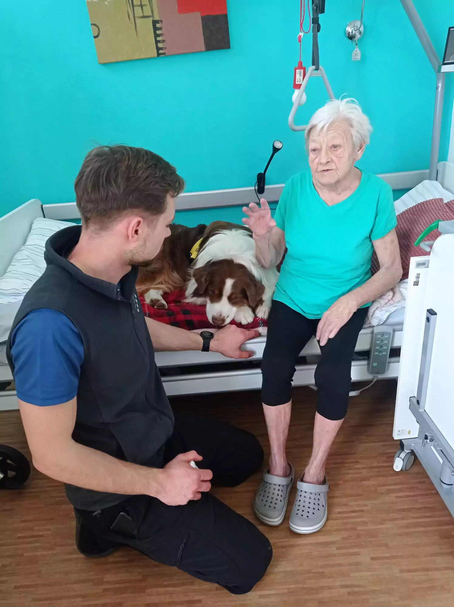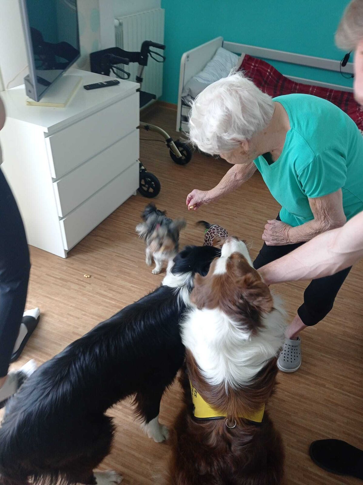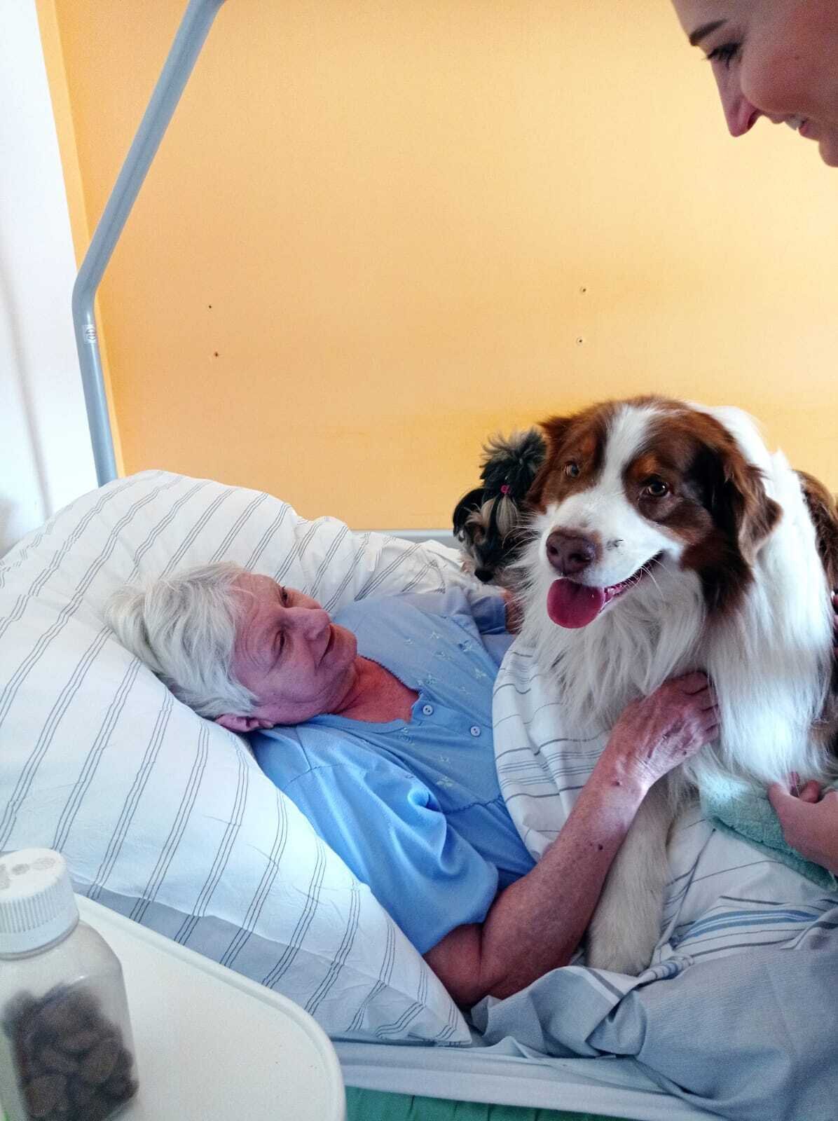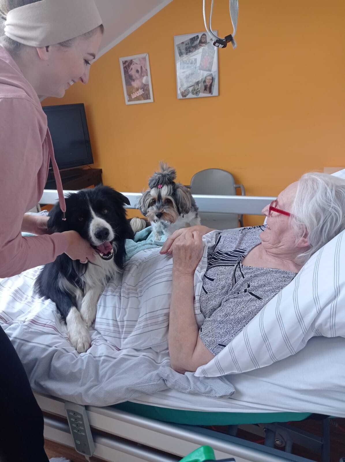 Neděle v psí společnosti patří mezi naše nejoblíbenější. 😊💙 Tentokrát probíhala canisterapie individuálně na pokojích klientů. Po delší době se klienti s pejsky pořádně přivítali a potulili a kromě toho procvičovali motoriku rukou pomocí nabídnutí pamlsků, česání psů, hlazení atd. 🐶💙